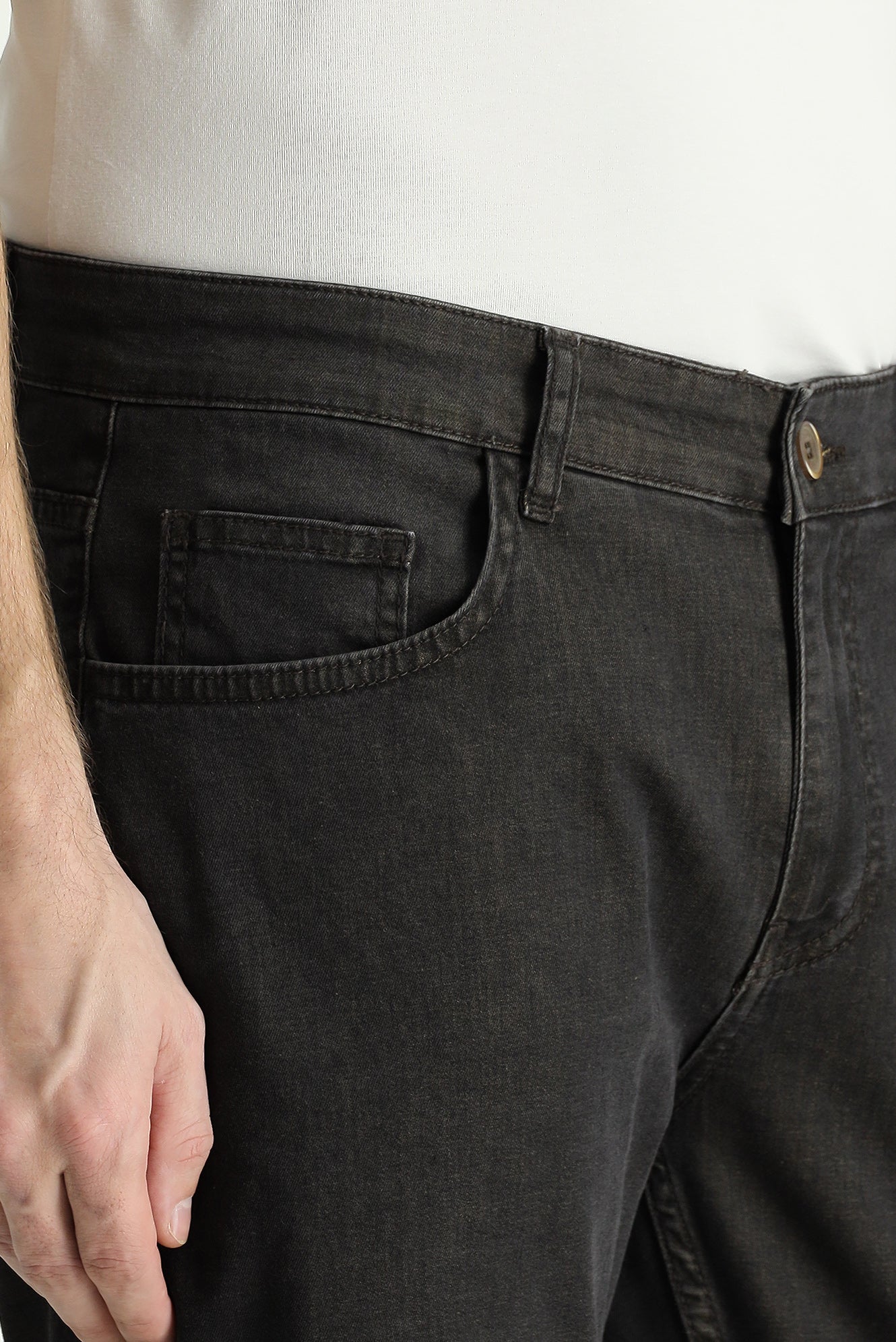 Koyu Füme 6 Drop Regular Fit Standart Kesim Likralı Denim Look Pantolon