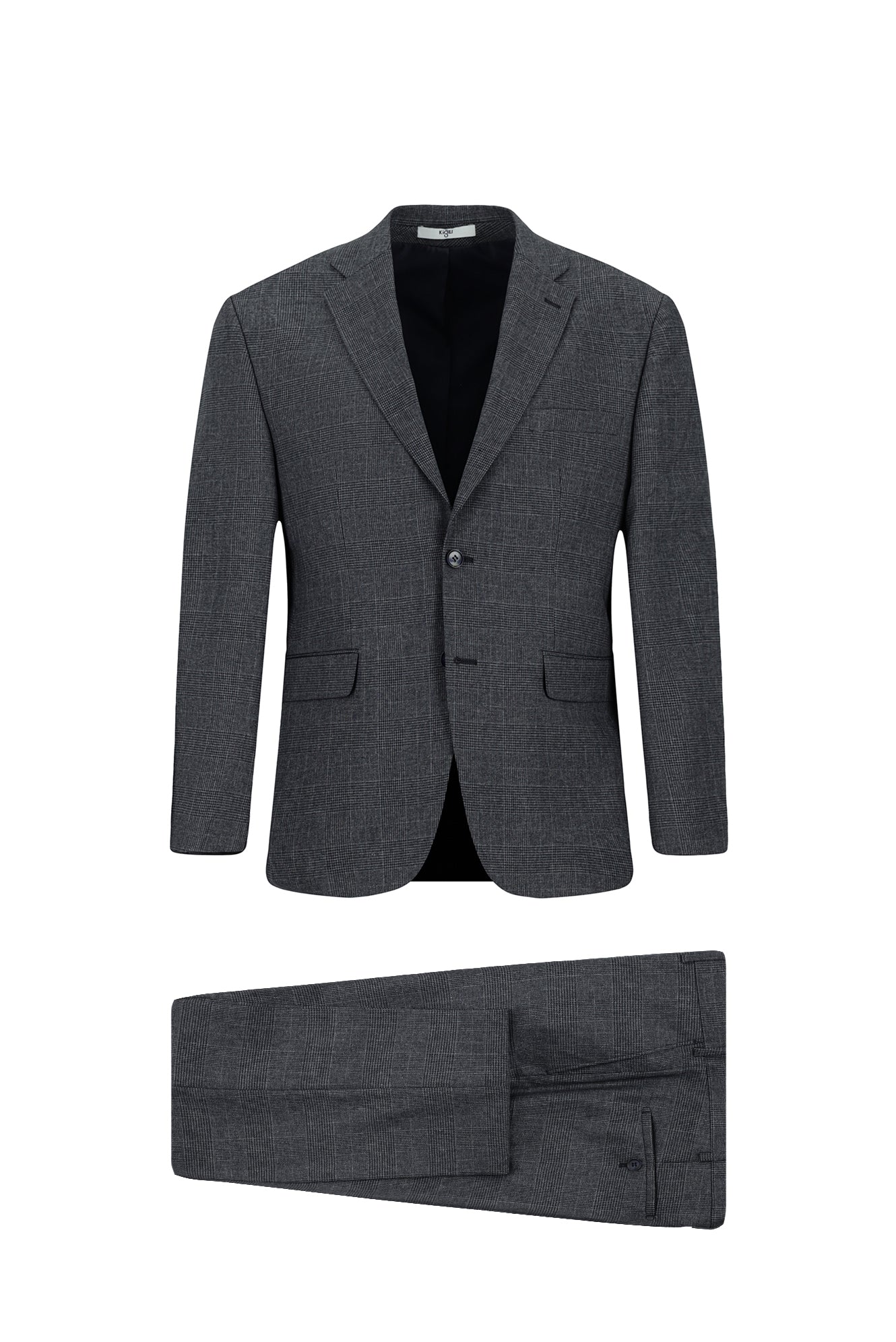 Koyu Füme Relaxed Fit Rahat Kesim Ekose Klasik Takım Elbise