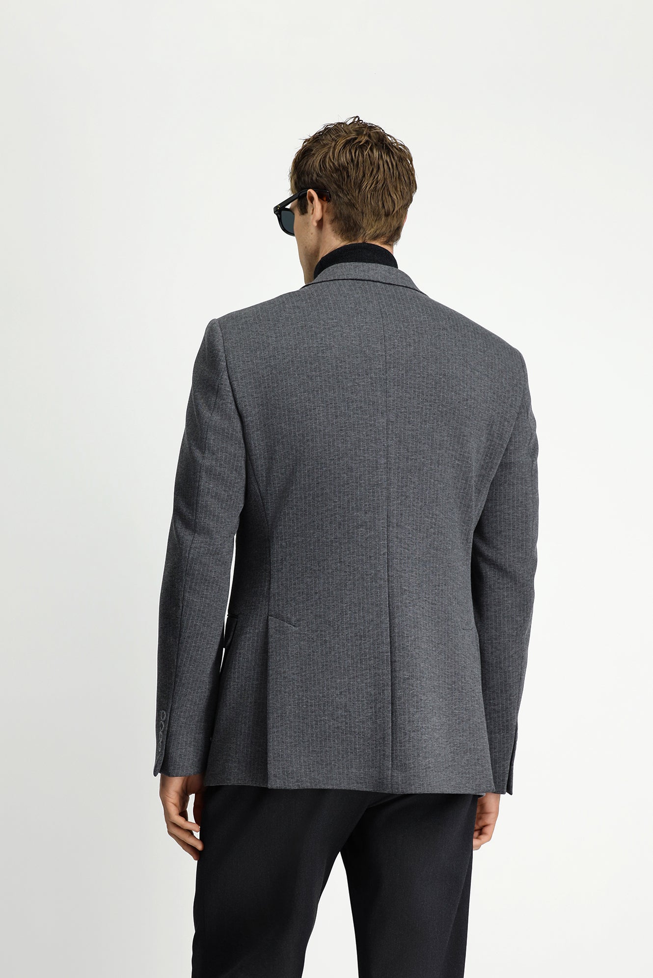 Koyu Füme Super Slim Fit Ekstra Dar Kesim Örme Klasik Çizgili Ceket