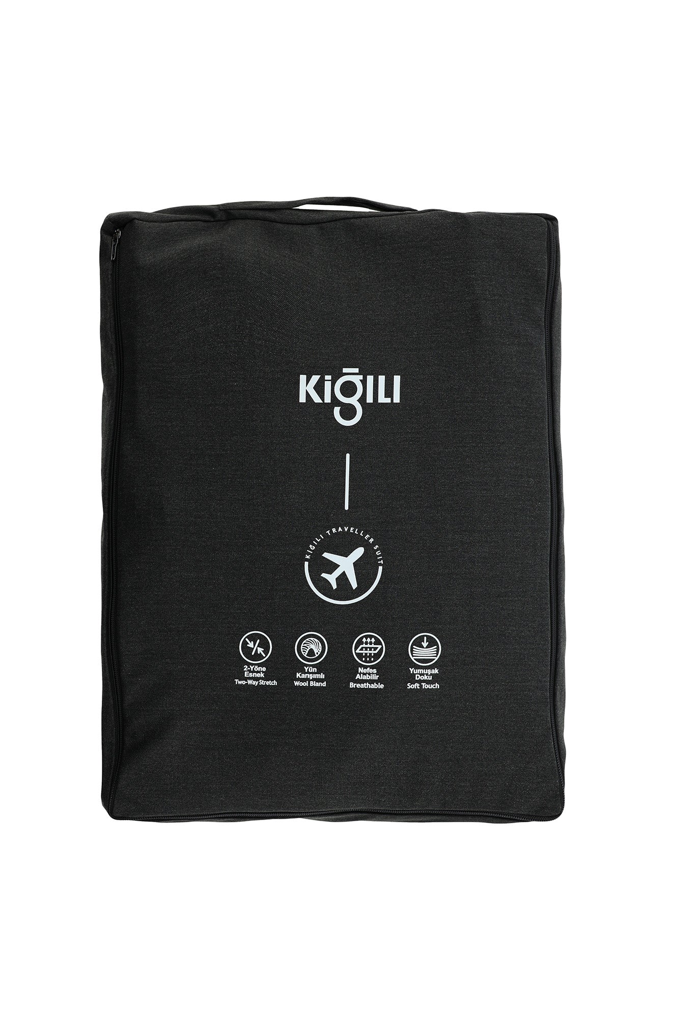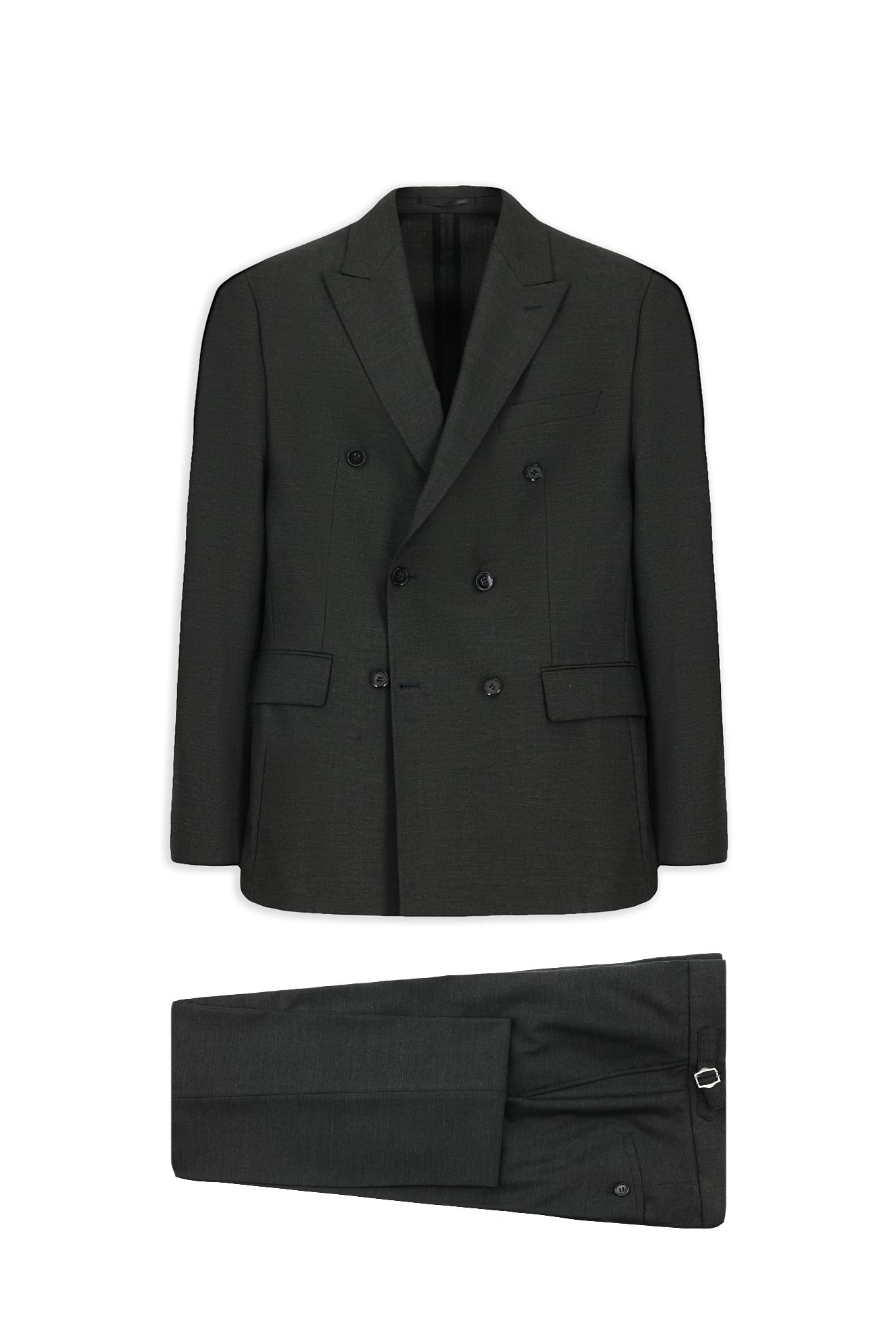 Koyu Füme Regular Fit Yünlü Kruvaze Beli Tokalı Çantalı Takım Elbise