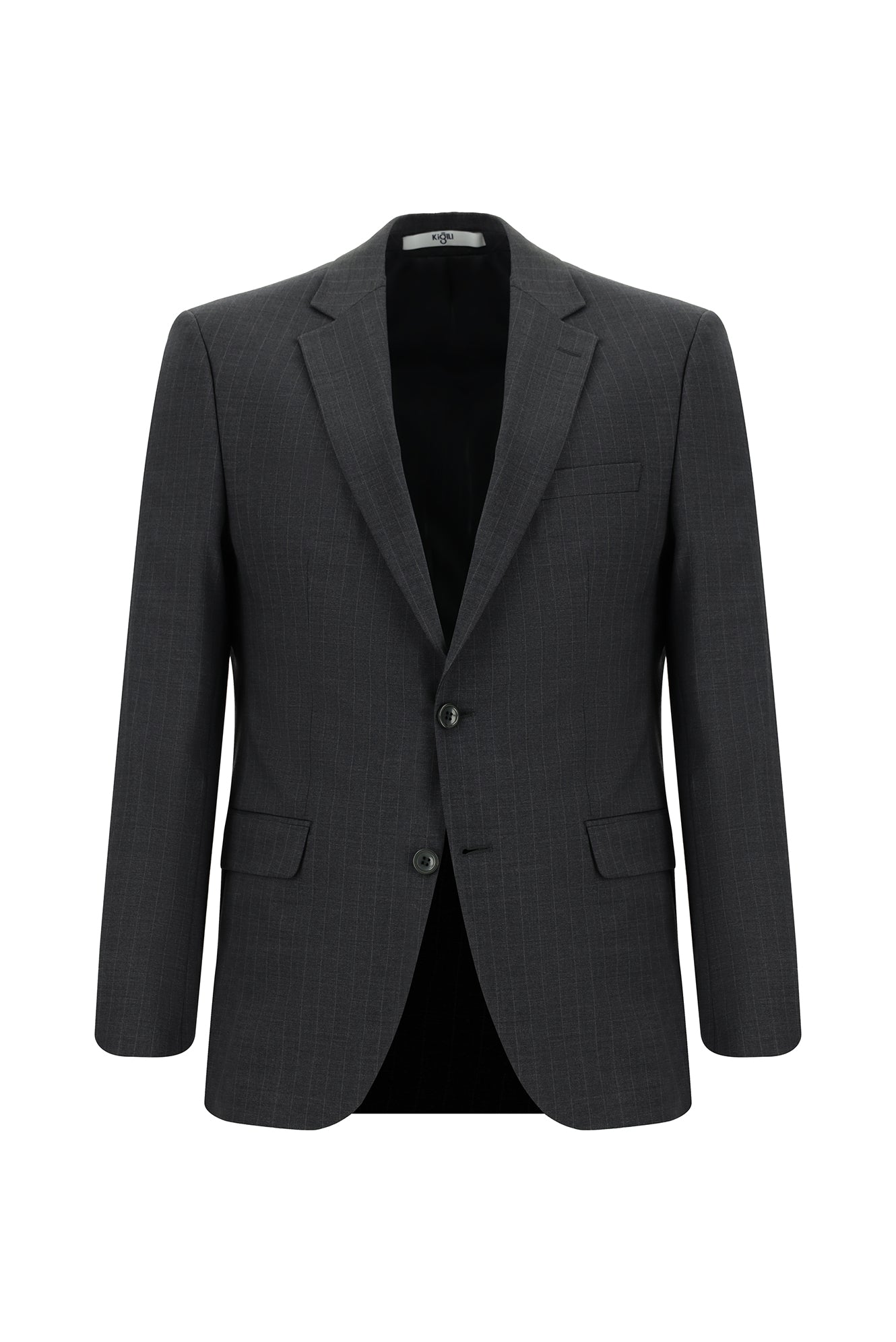 Koyu Füme 6 Drop Regular Fit Standart Kesim Yünlü Çizgili Klasik Takım Elbise
