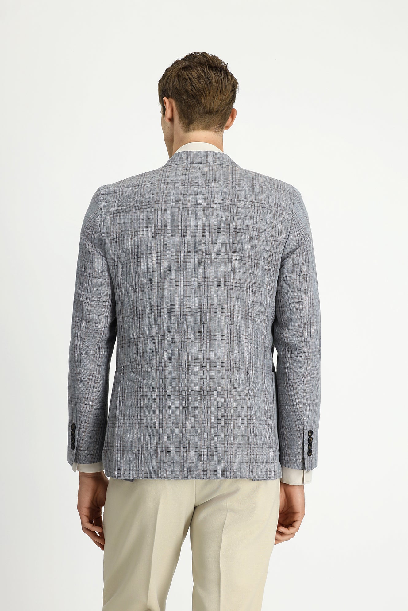 Koyu Füme Regular Fit Yünlü Keten Karışımlı Ekose Spor Ceket