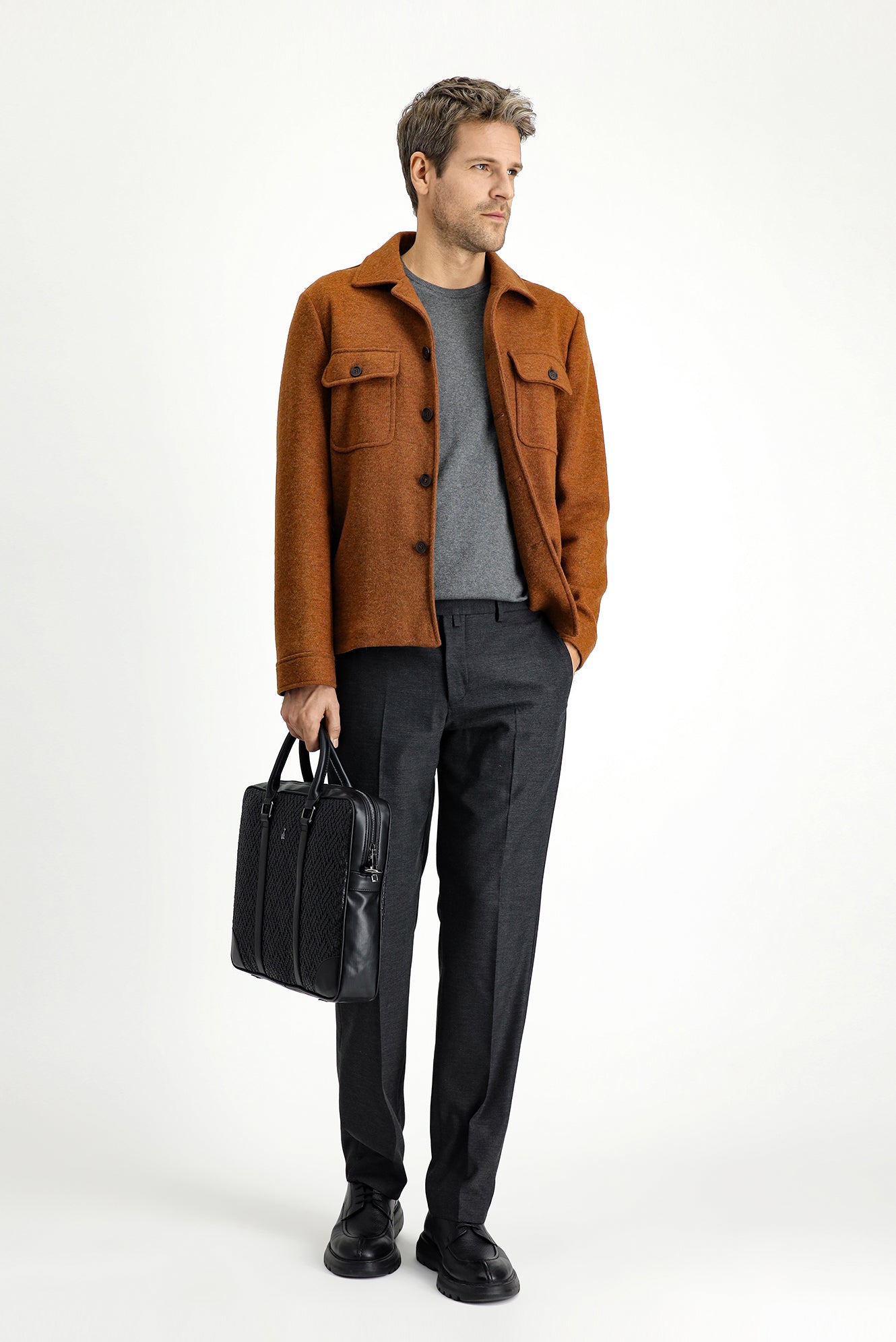 Koyu Füme Relaxed Fit Rahat Kesim Yünlü Klasik Kumaş Pantolon
