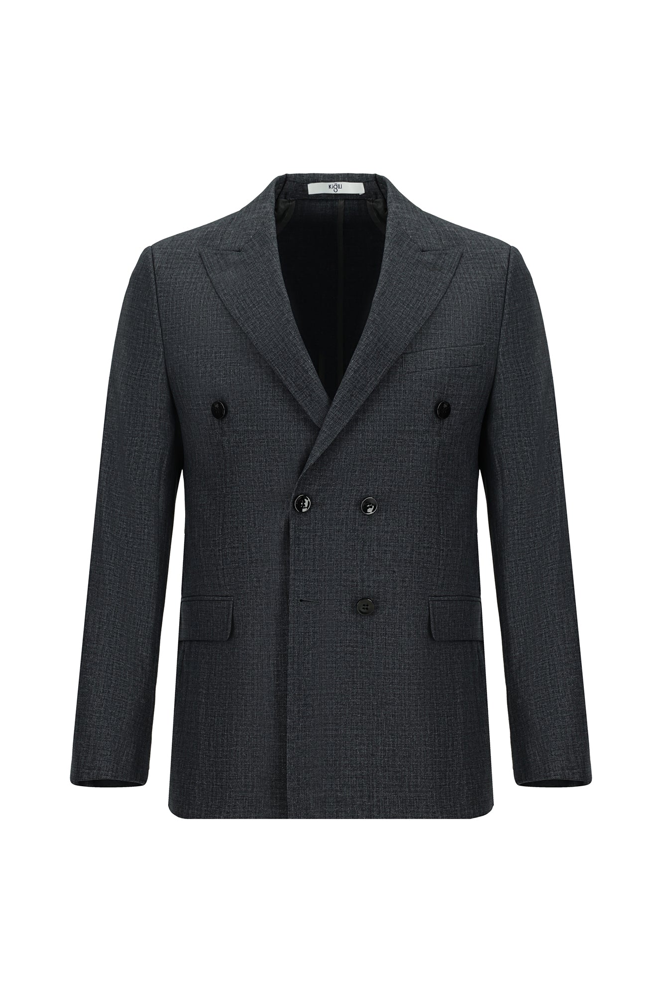 Koyu Füme Slim Fit Dar Kesim Desenli Kruvaze Takım Elbise