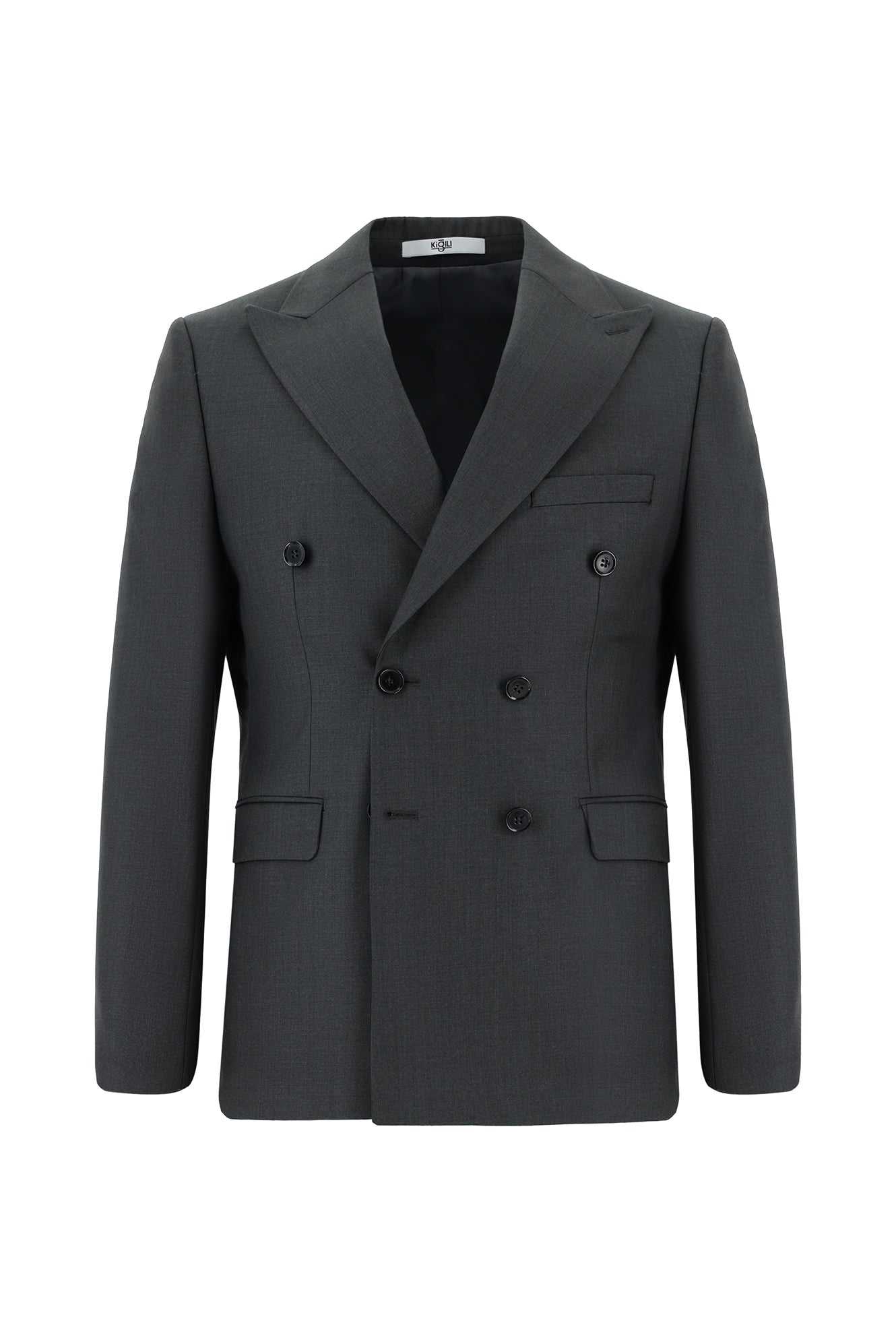 Koyu Füme Slim Fit Dar Kesim Kruvaze Takım Elbise