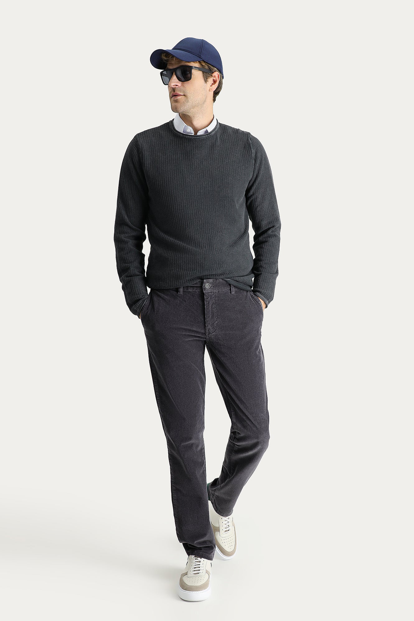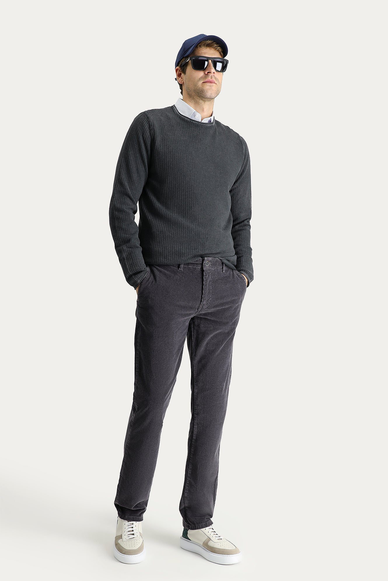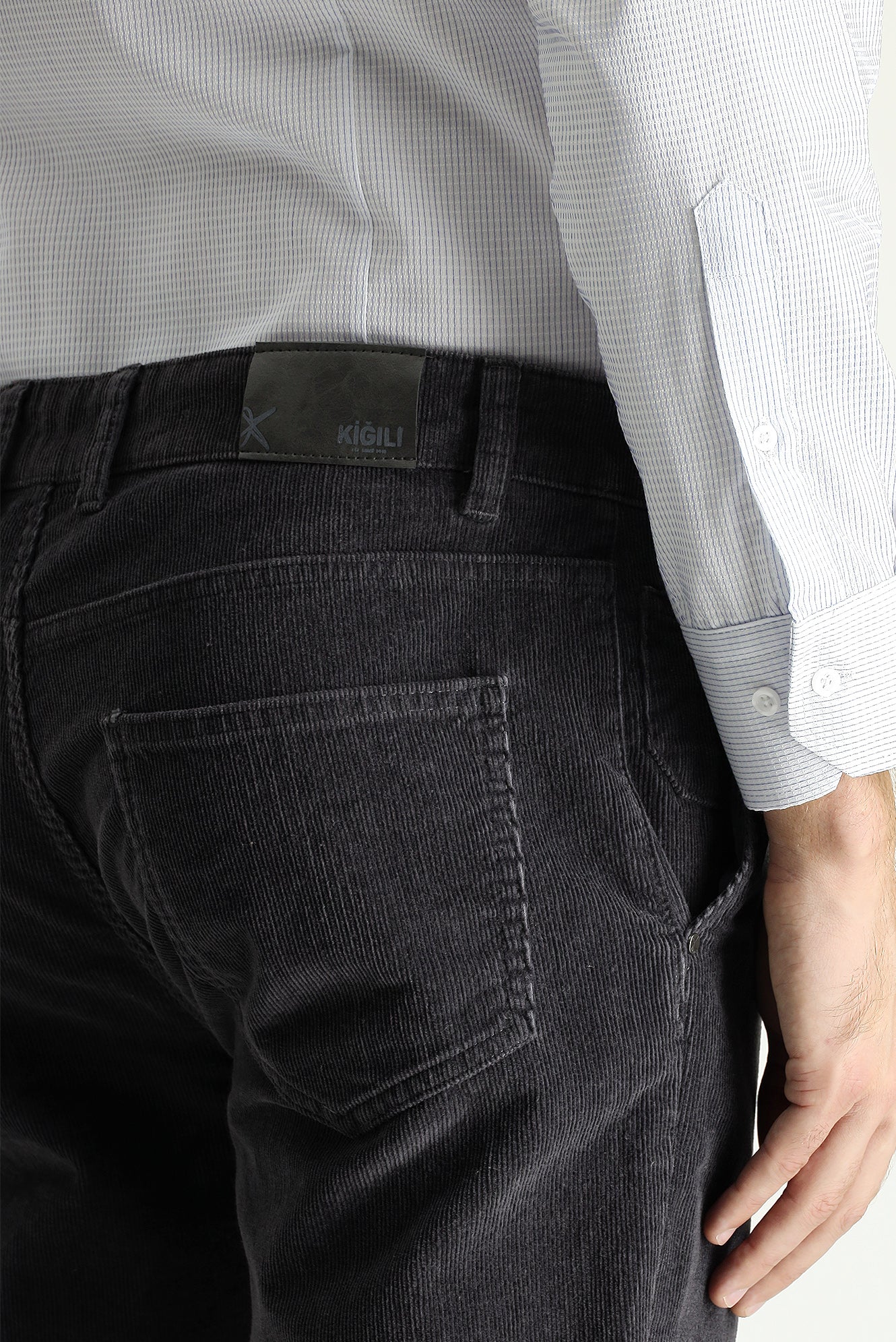 Koyu Füme Slim Fit Dar Kesim Likralı Kadife Pantolon