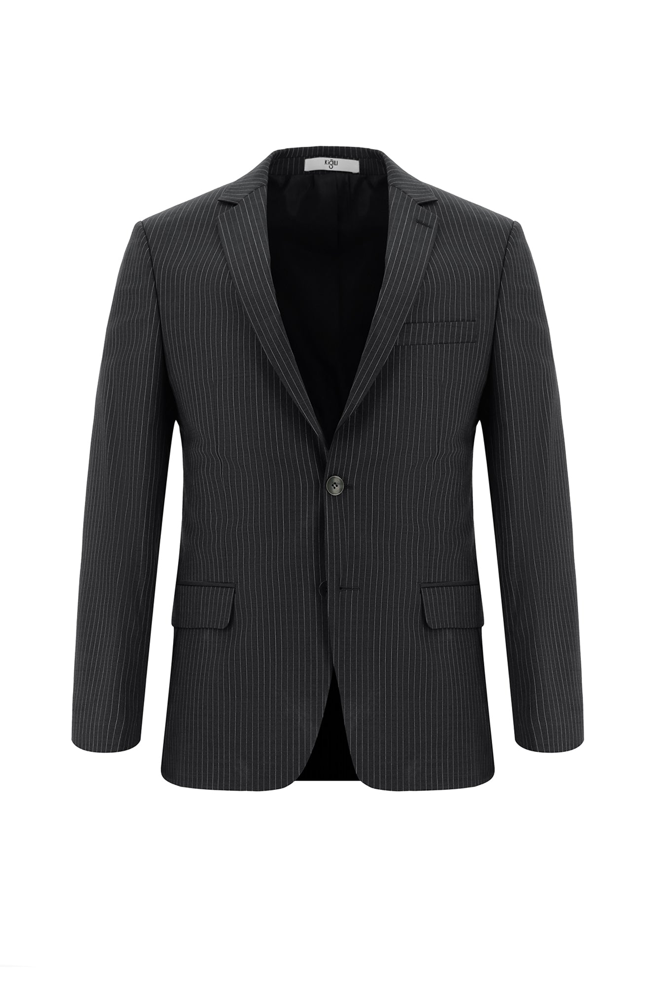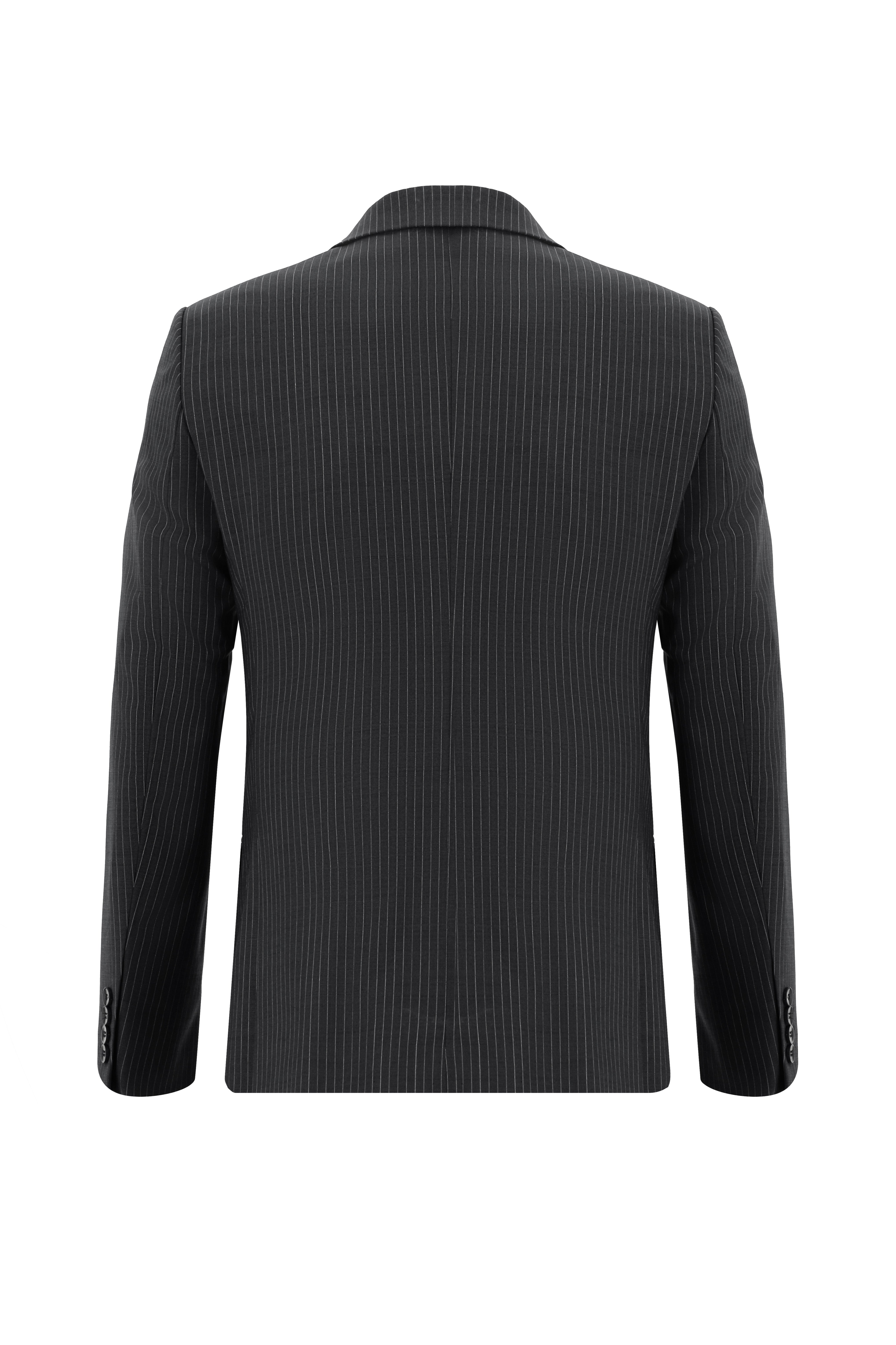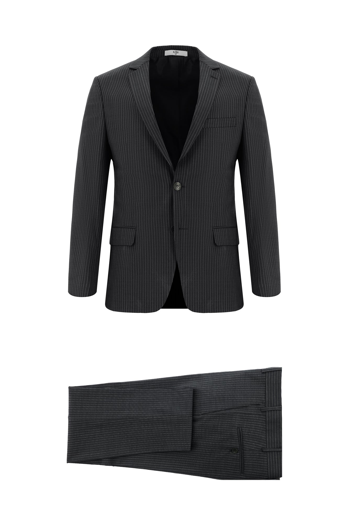 Koyu Füme Slim Fit Dar Kesim Yünlü Klasik Çizgili Takım Elbise
