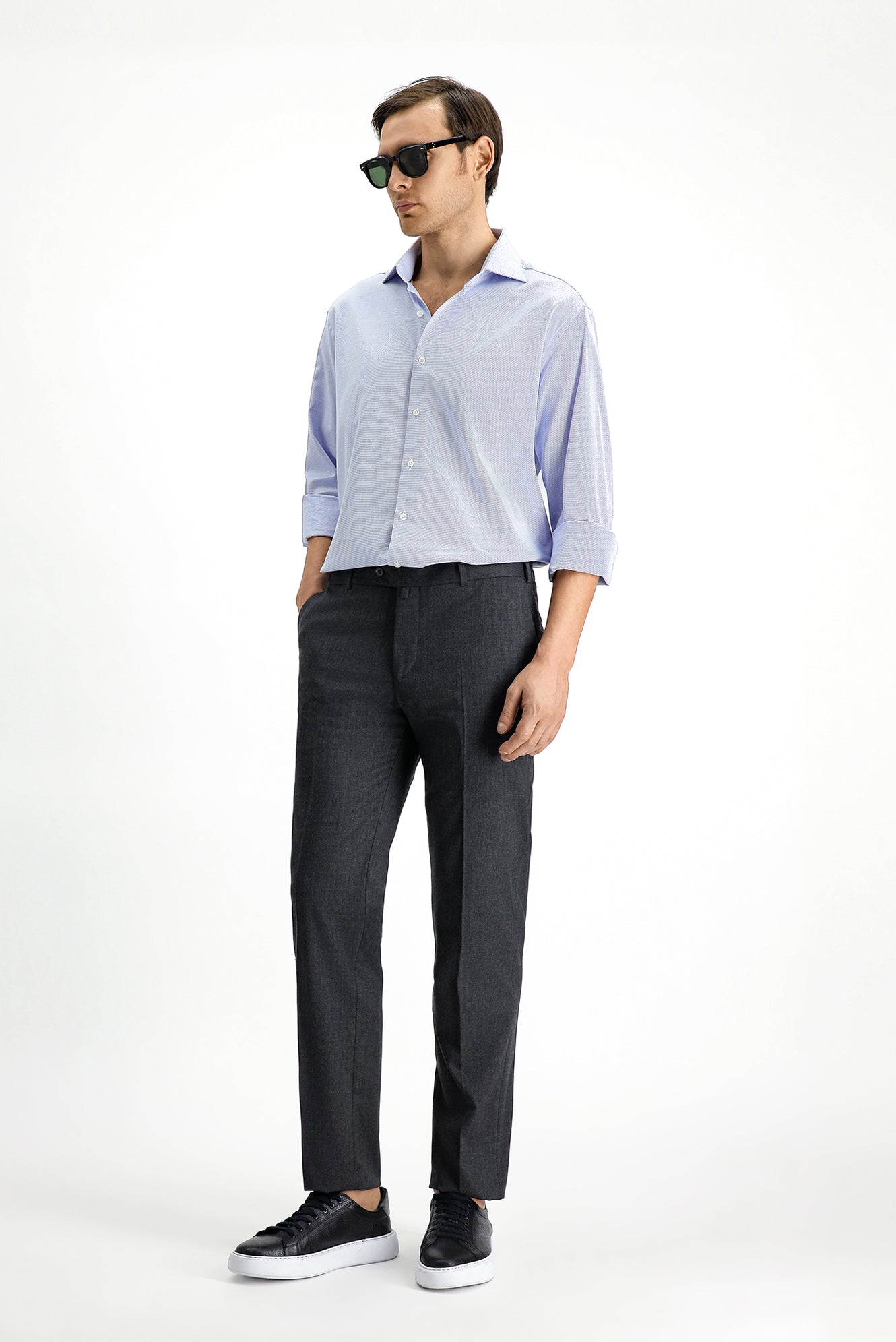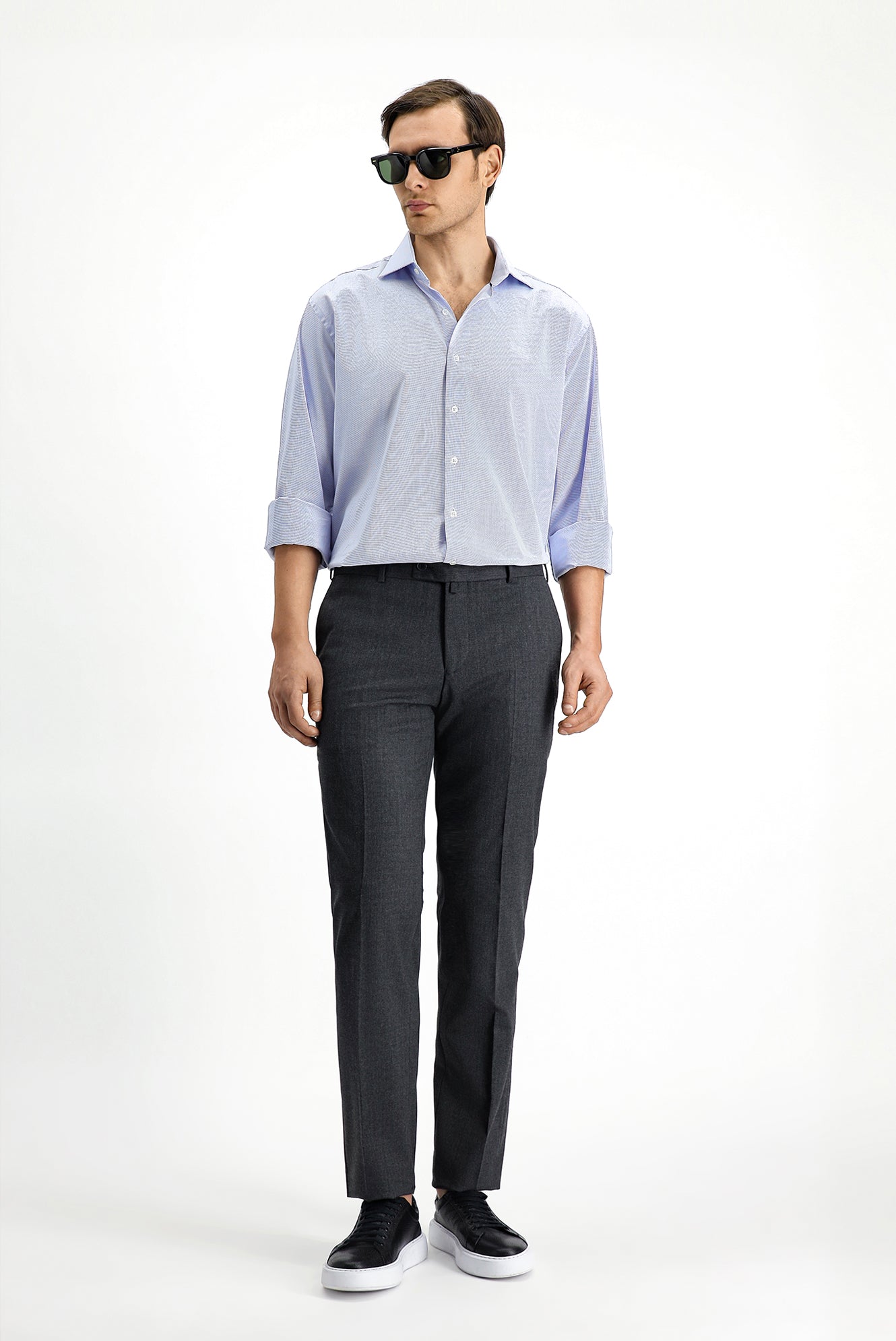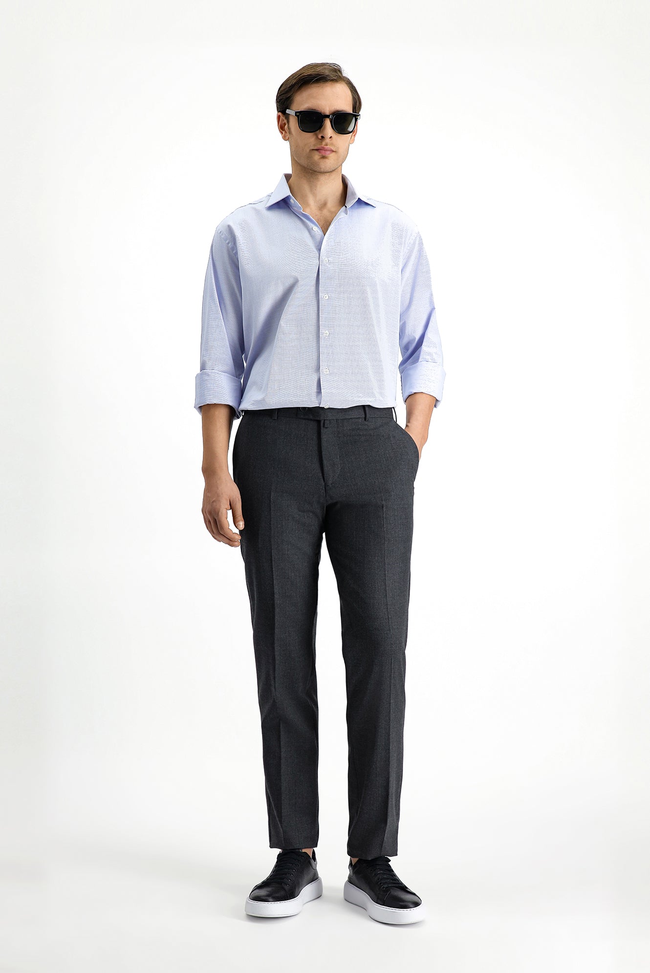Koyu Füme Slim Fit Dar Kesim Yünlü Klasik Kumaş Pantolon