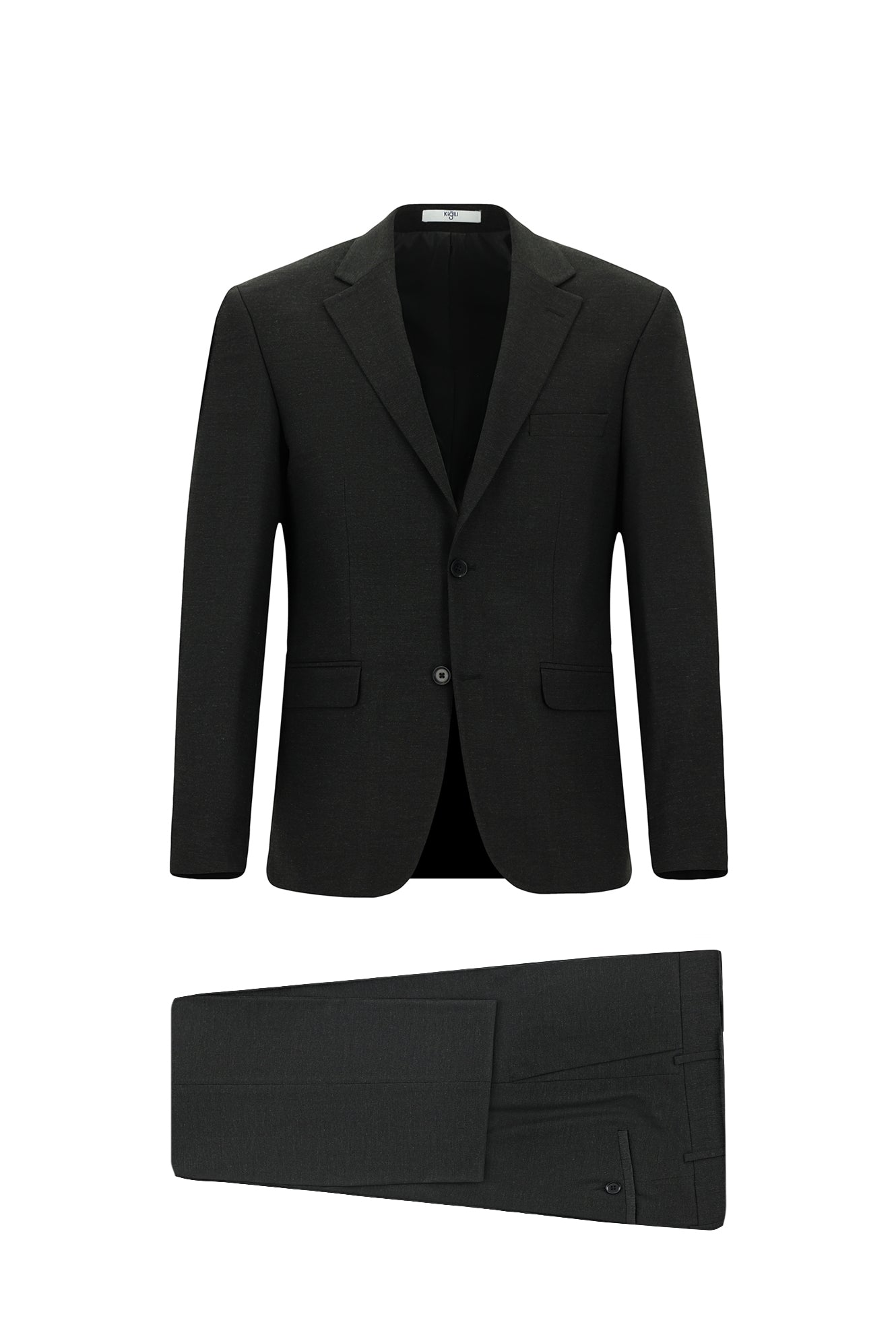 Koyu Füme Slim Fit Dar Kesim Yünlü Klasik Takım Elbise