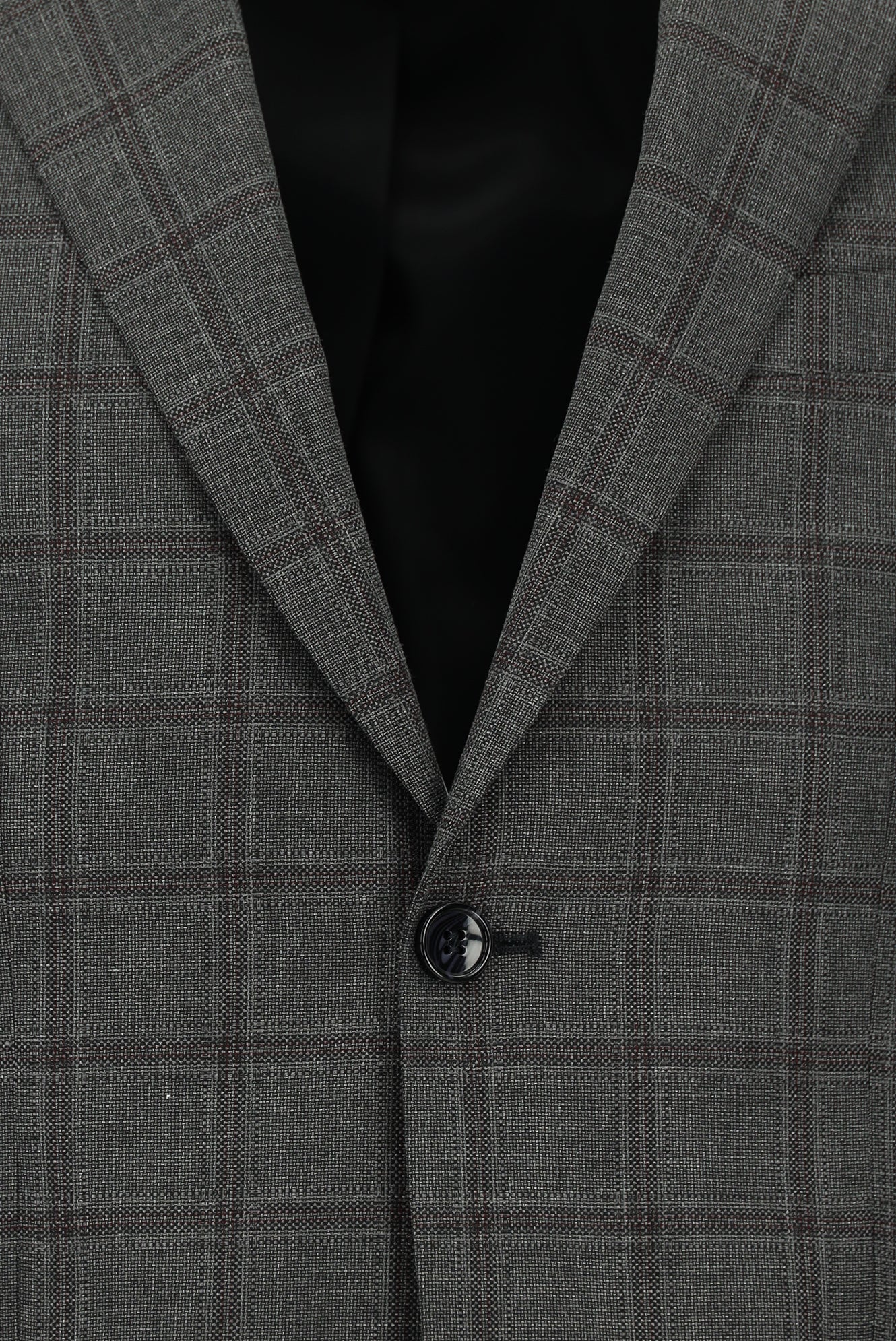 Koyu Füme 7 Drop Slim Fit Dar Kesim Kareli Takım Elbise