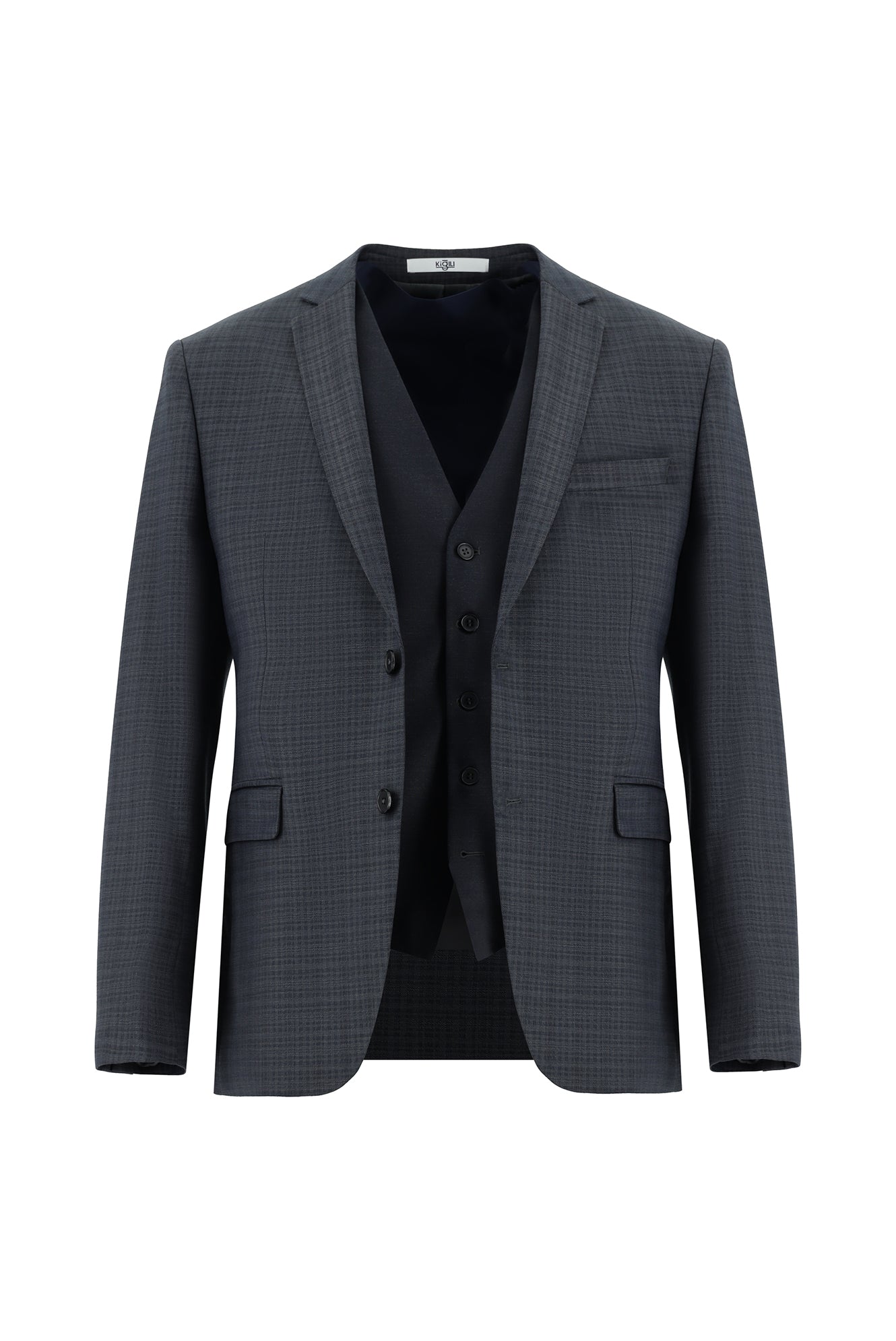 Koyu Füme Super Slim Fit Ekstra Dar Kesim Kombinli Yelekli Takım Elbise