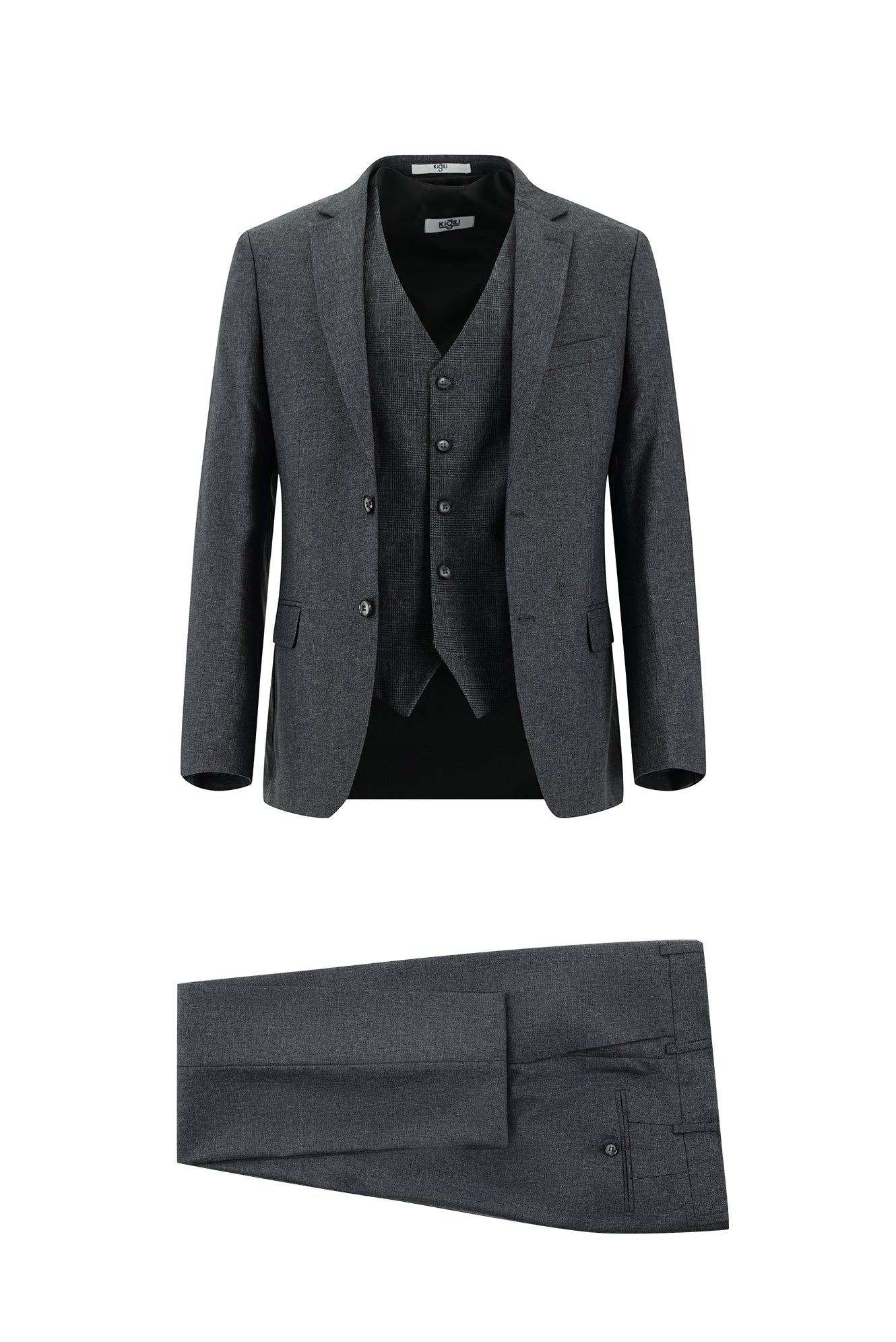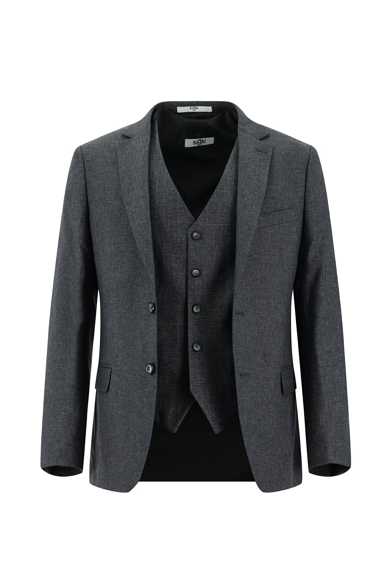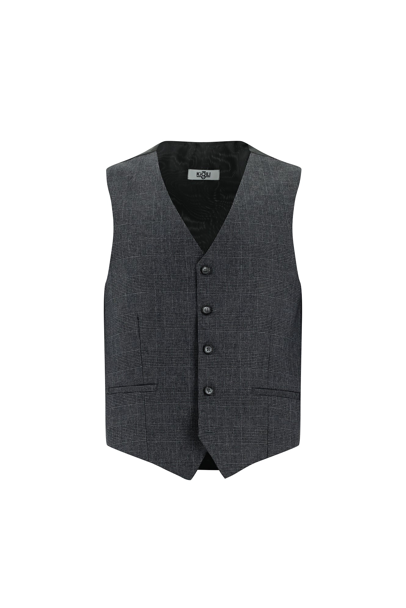 Koyu Füme Super Slim Fit Ekstra Dar Kesim Yelekli Kombinli Takım Elbise