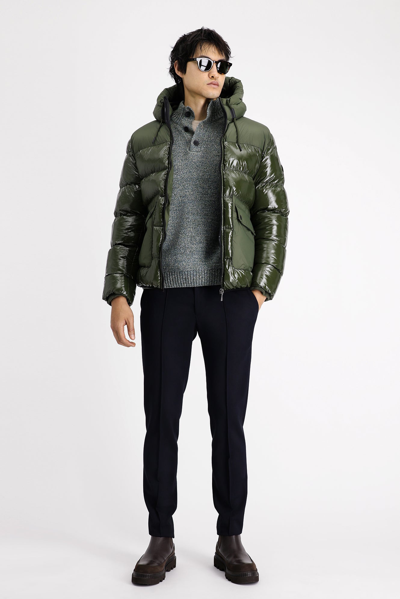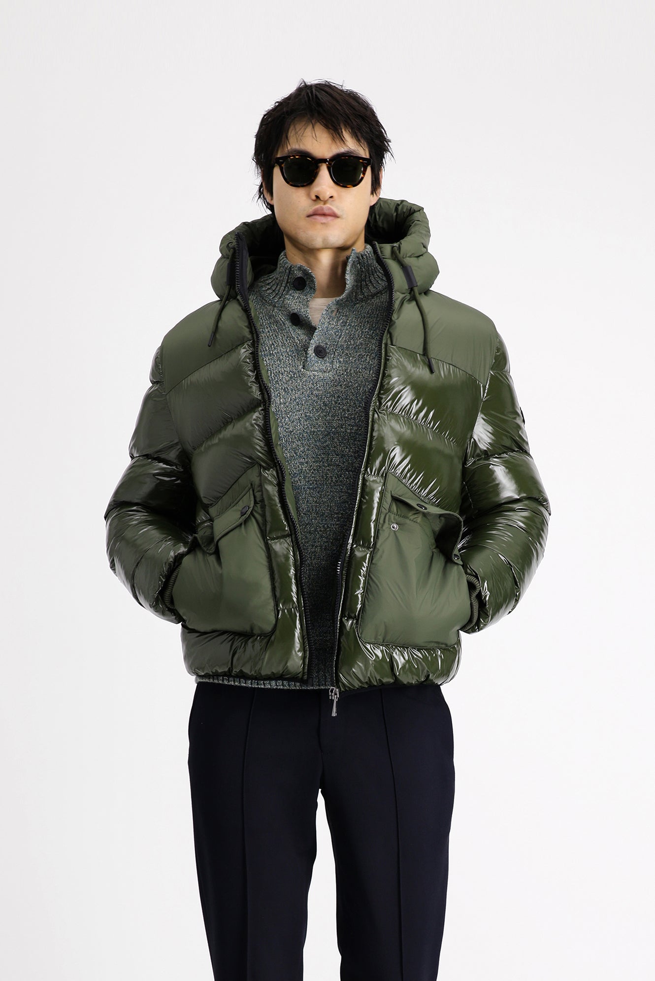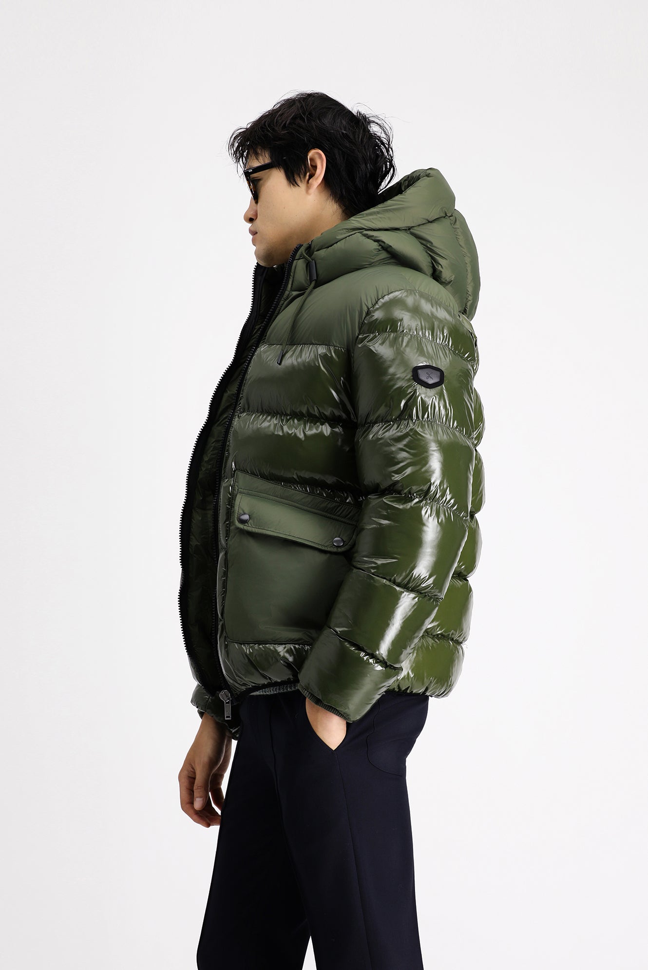 Koyu Haki Kapüşonlu Kapitone Spor Şişme Mont