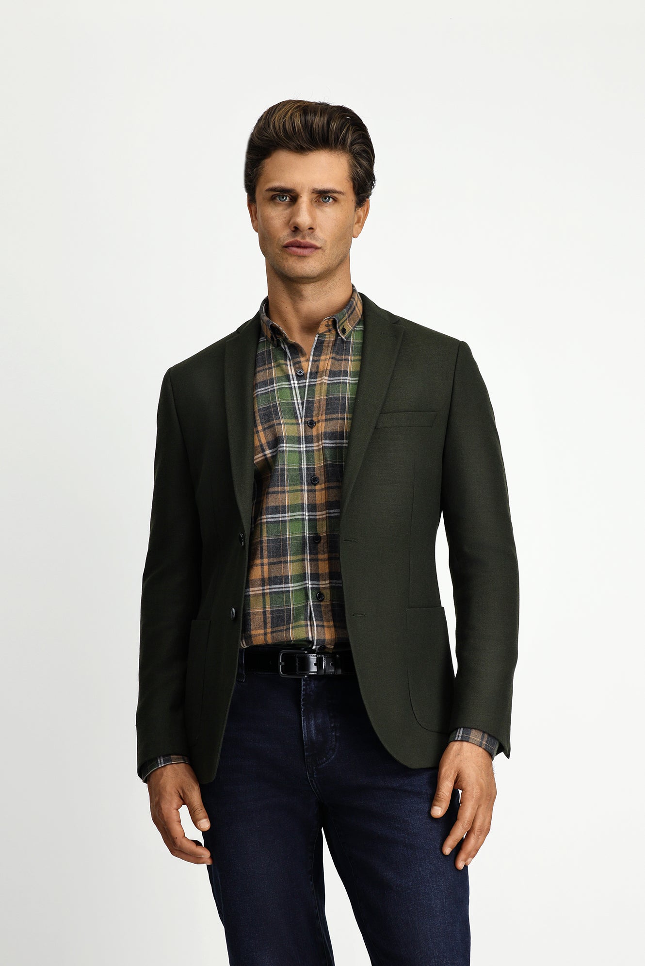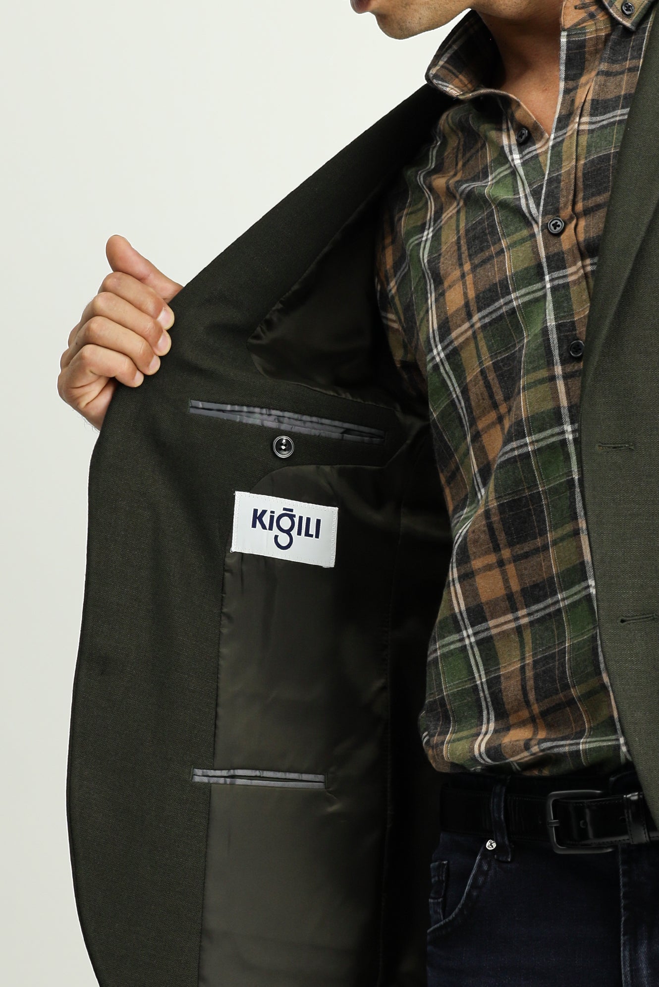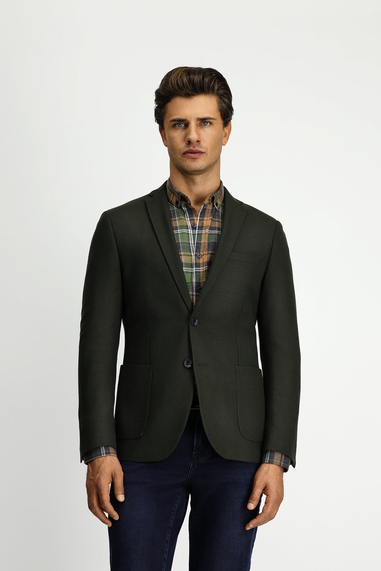 Koyu Haki Super Slim Fit Ekstra Dar Kesim Klasik Ceket
