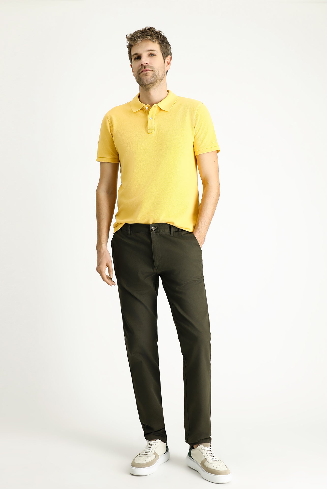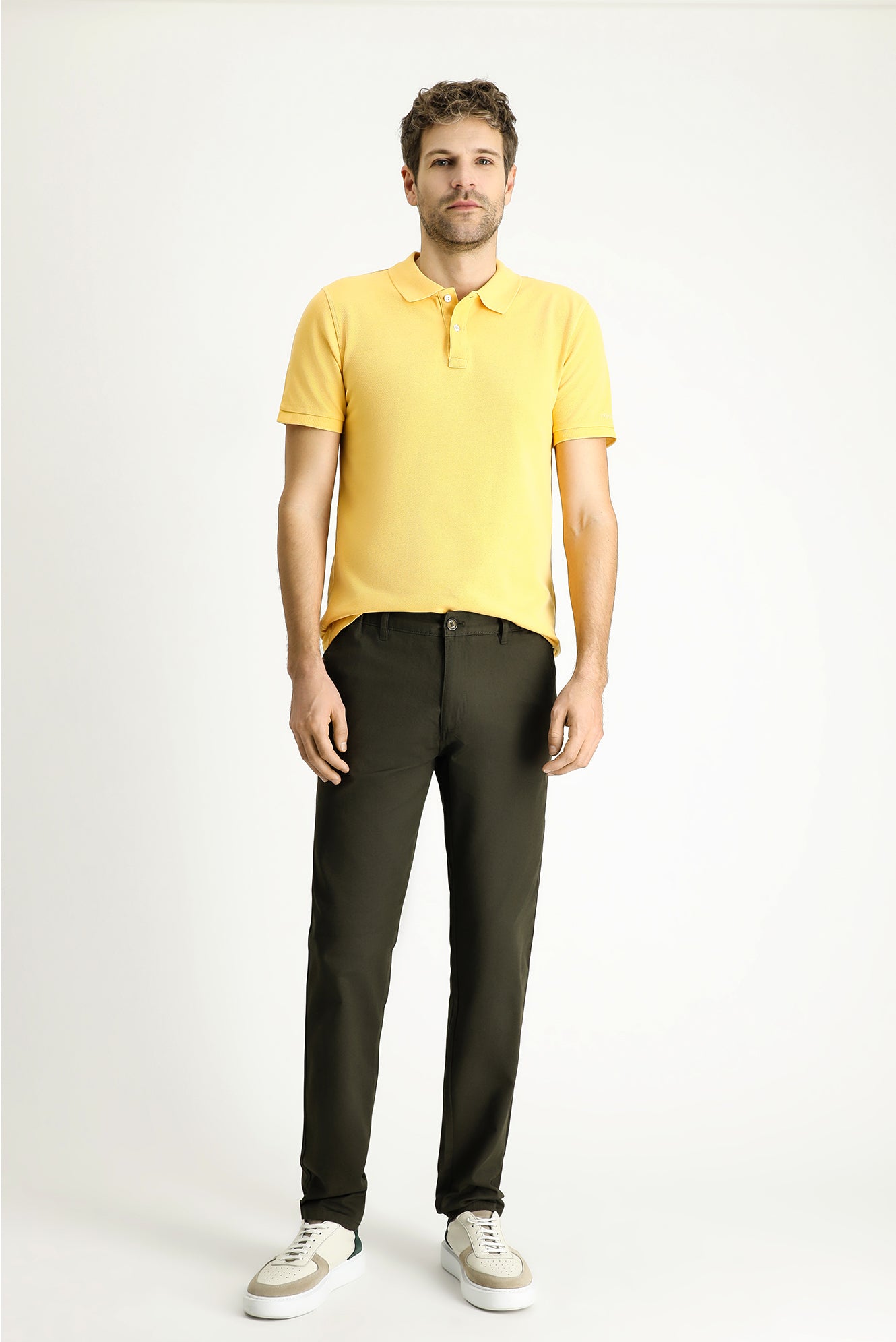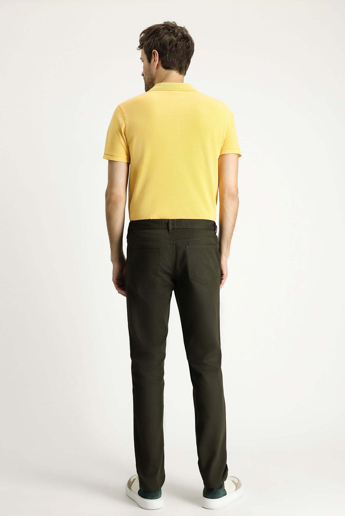 Koyu Haki Regular Fit Beli Lastikli Likralı Chino/Kanvas Pantolon