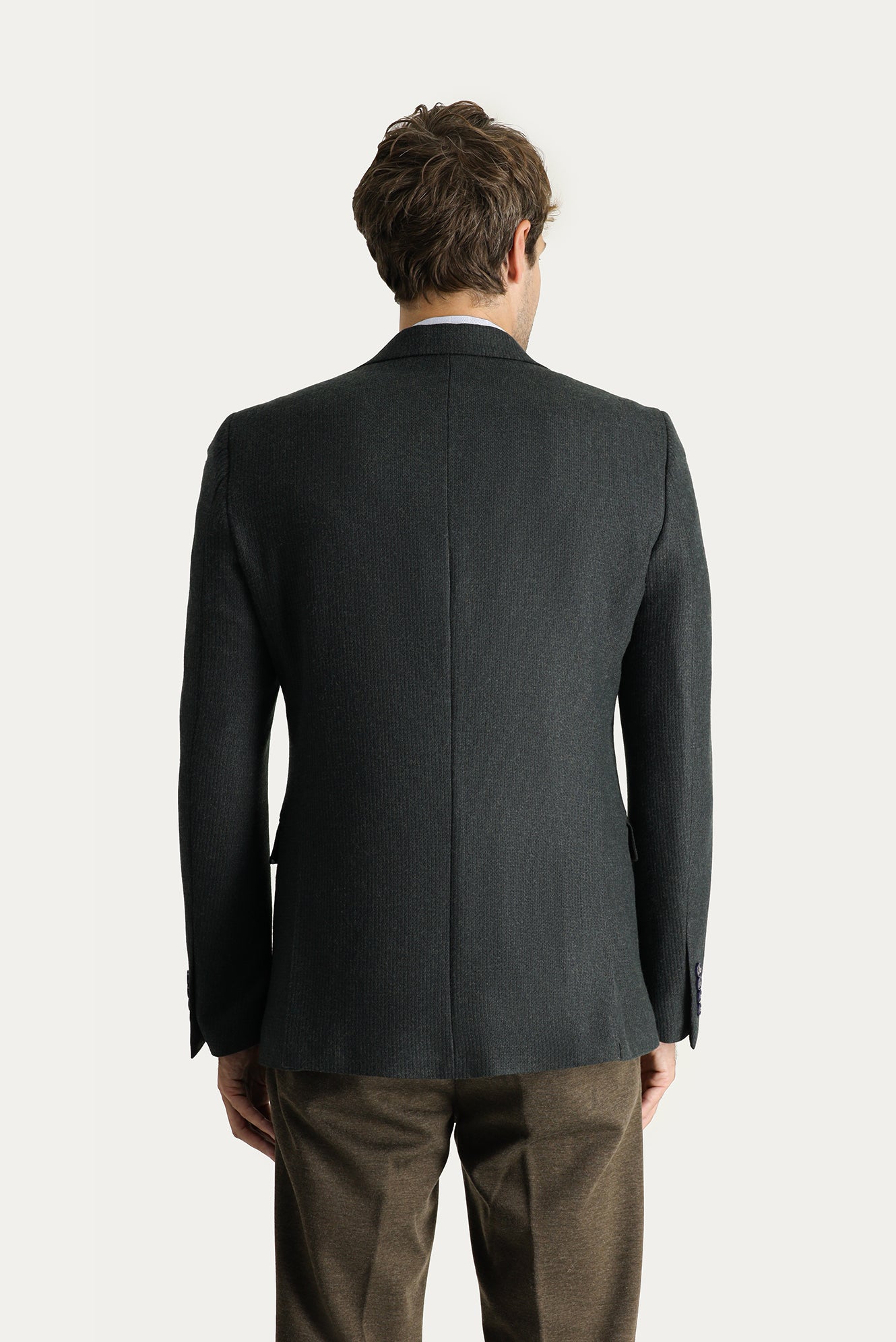 Koyu Haki Relaxed Fit Rahat Kesim Yünlü Desenli Klasik Ceket