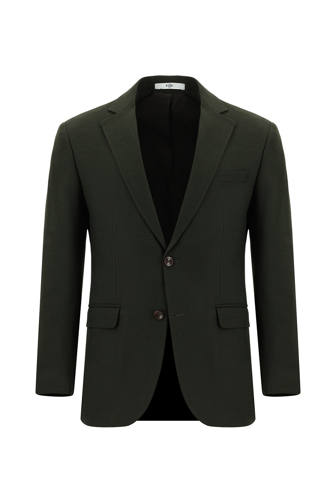 Koyu Haki 7 Drop Slim Fit Dar Kesim Desenli Takım Elbise