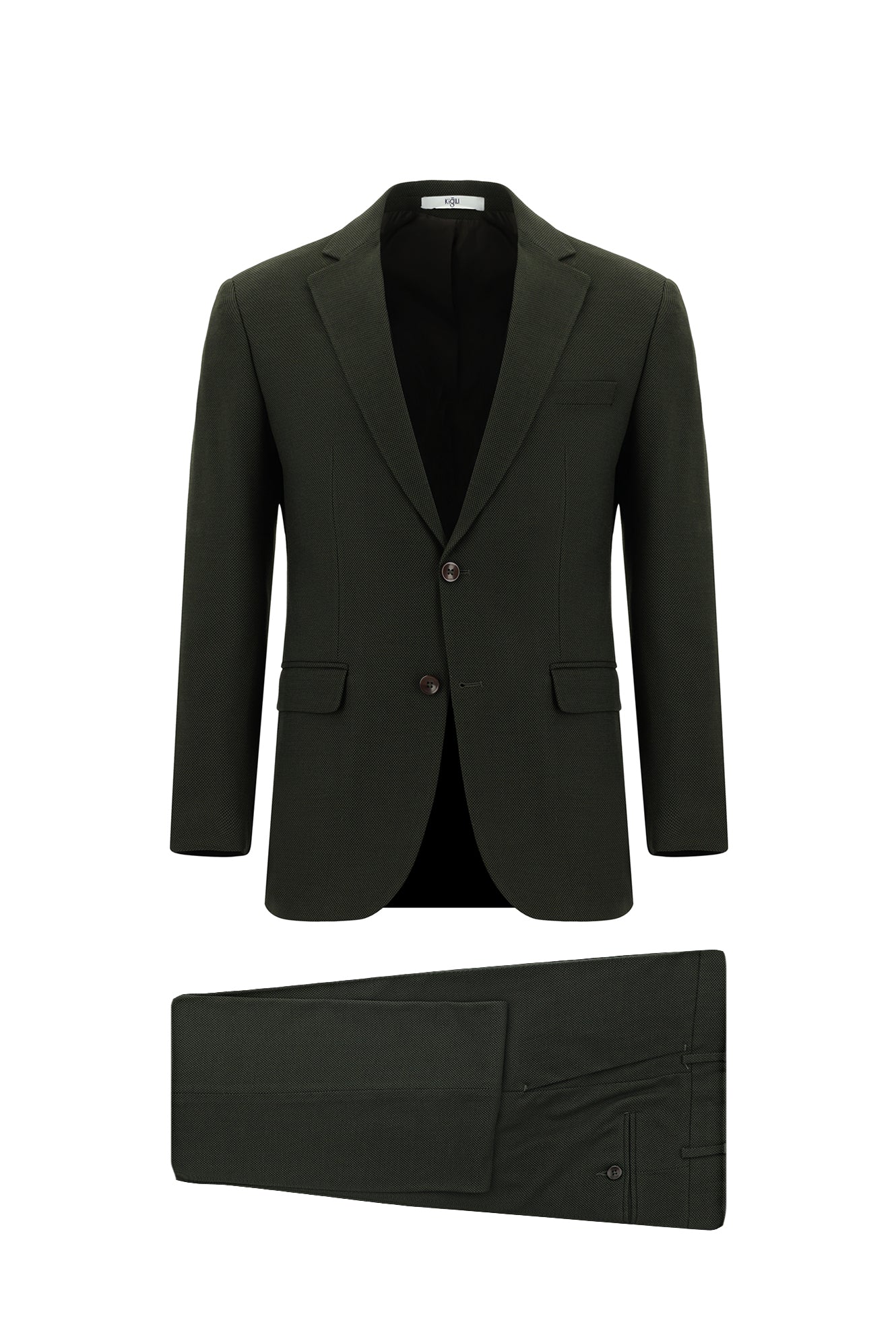 Koyu Haki 7 Drop Super Slim Fit Eksra Dar Kesim Desenli Takım Elbise