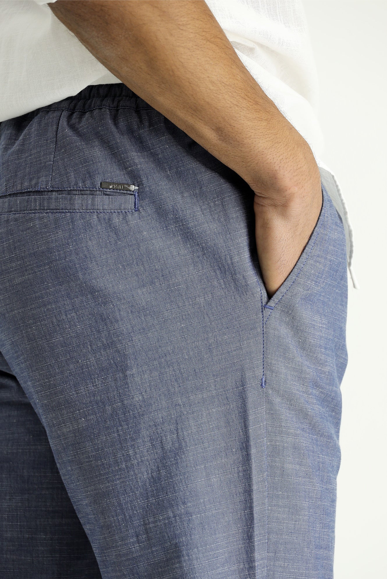 Koyu Havacı Relaxed Fit Rahat Kesim Beli Lastikli İpli Desenli Likralı Pantolon