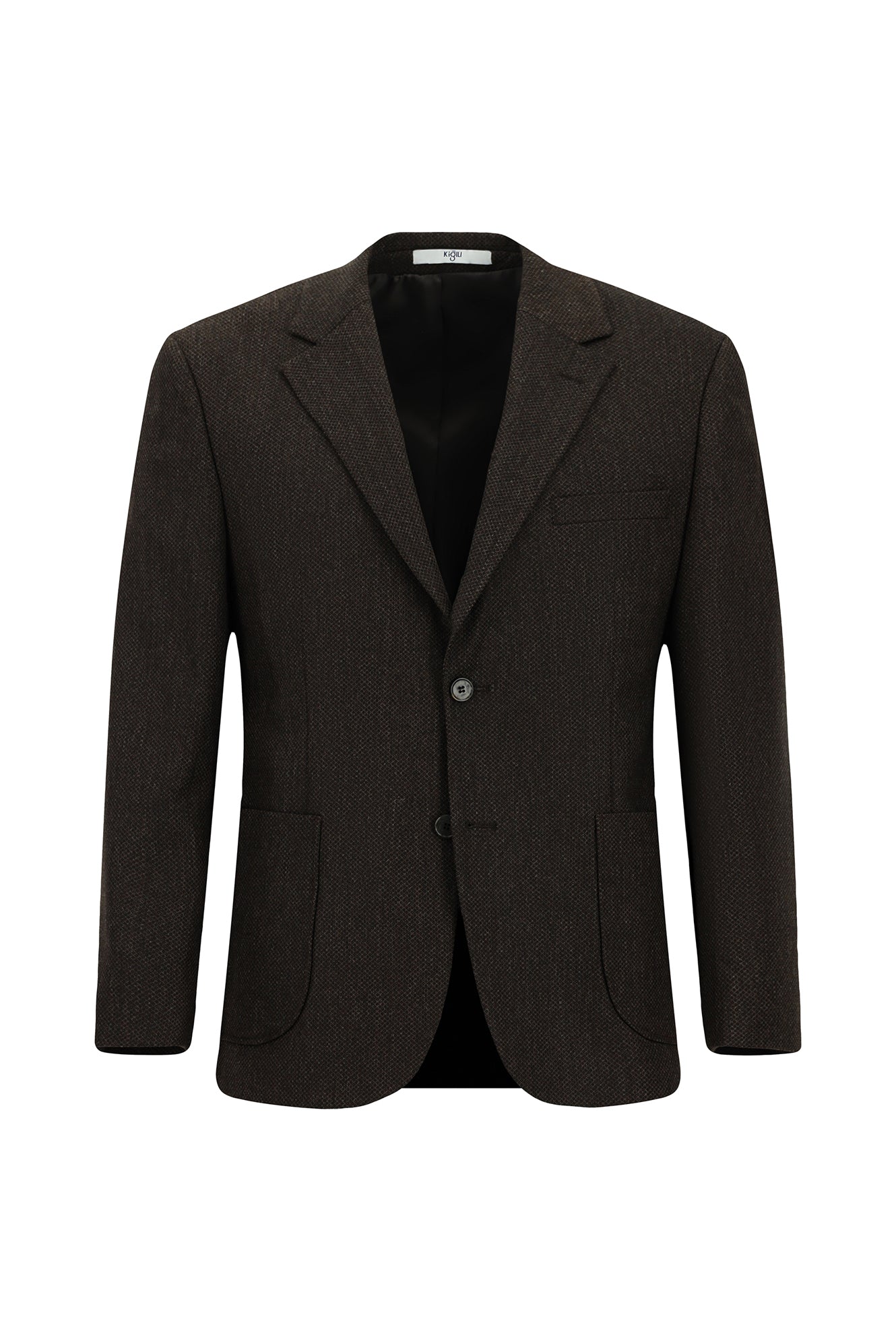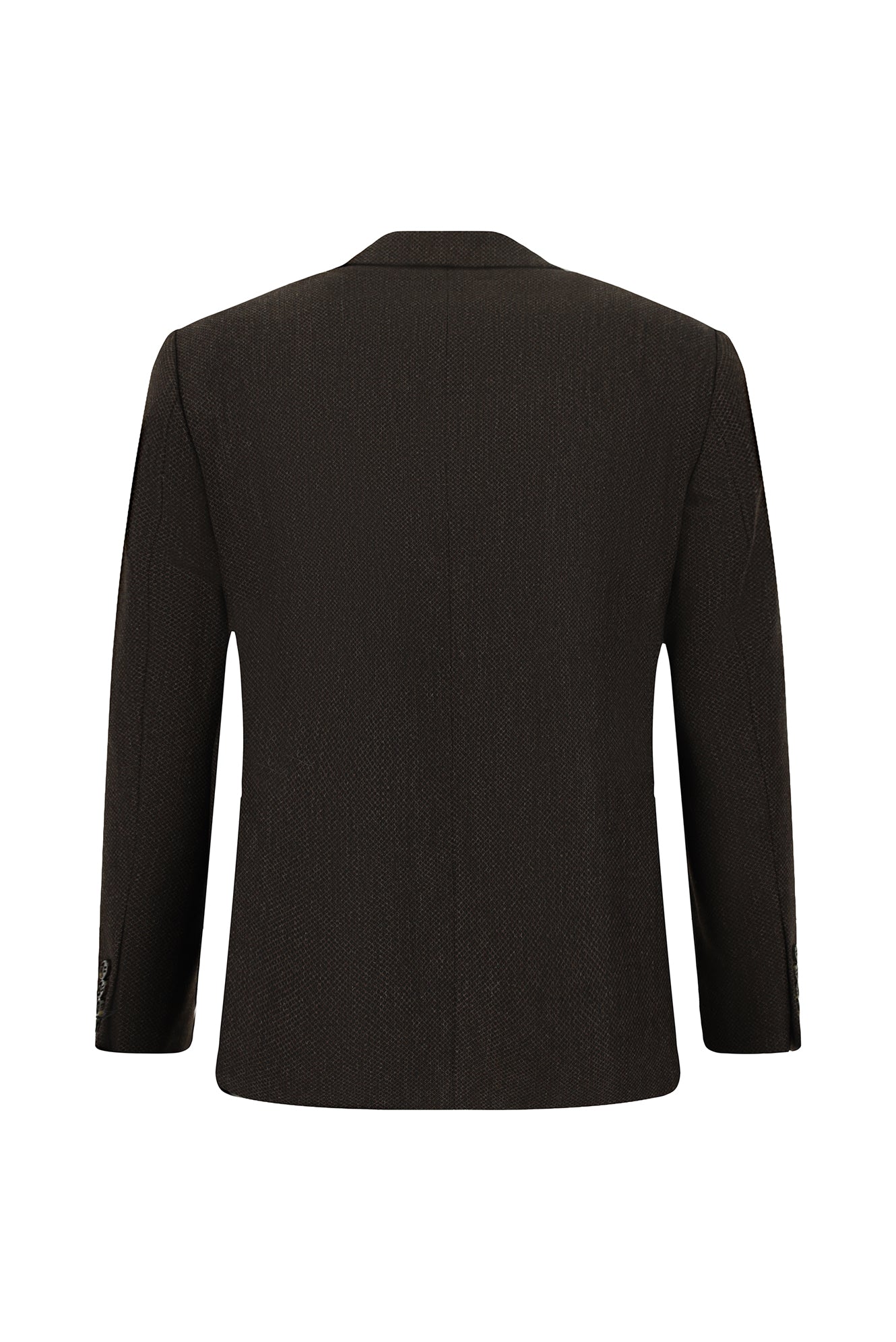 Koyu Kahve Relaxed Fit Rahat Kesim Desenli Yünlü Ceket