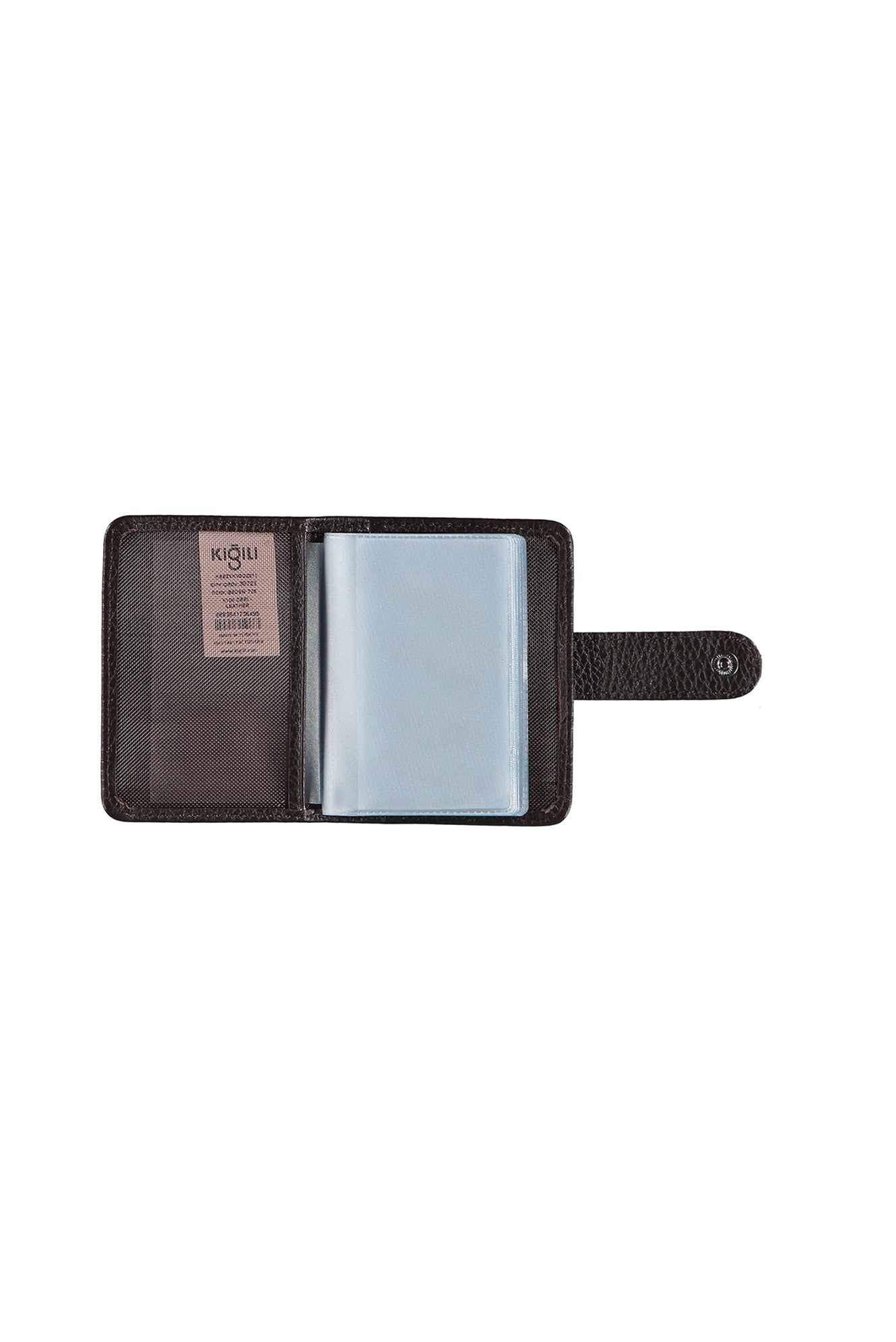 Koyu Kahve Desenli Çıtçıtlı Şeffaf Deri Kartlık
