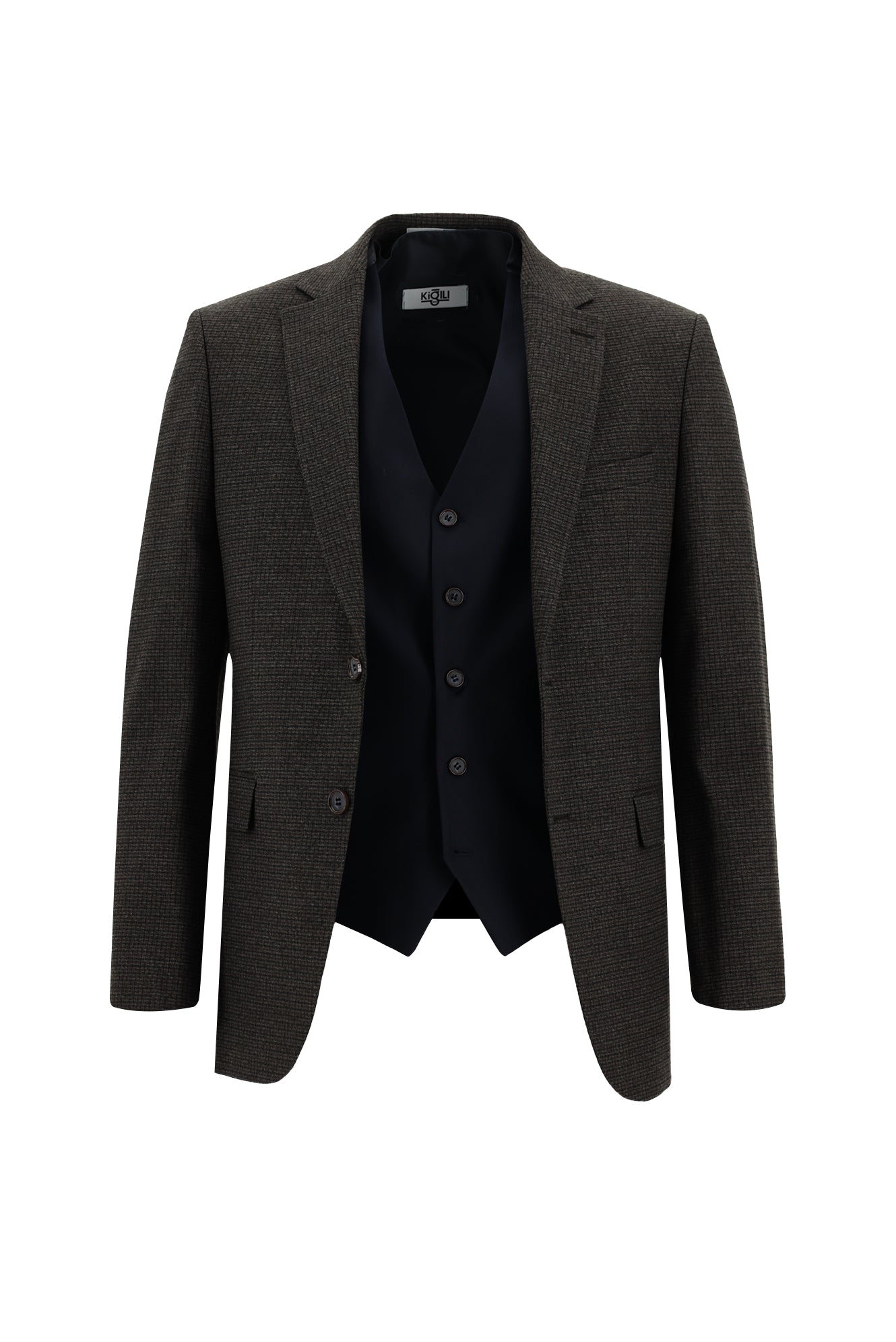 Koyu Kahve Slim Fit Dar Kesim Kombinli Yelekli Takım Elbise