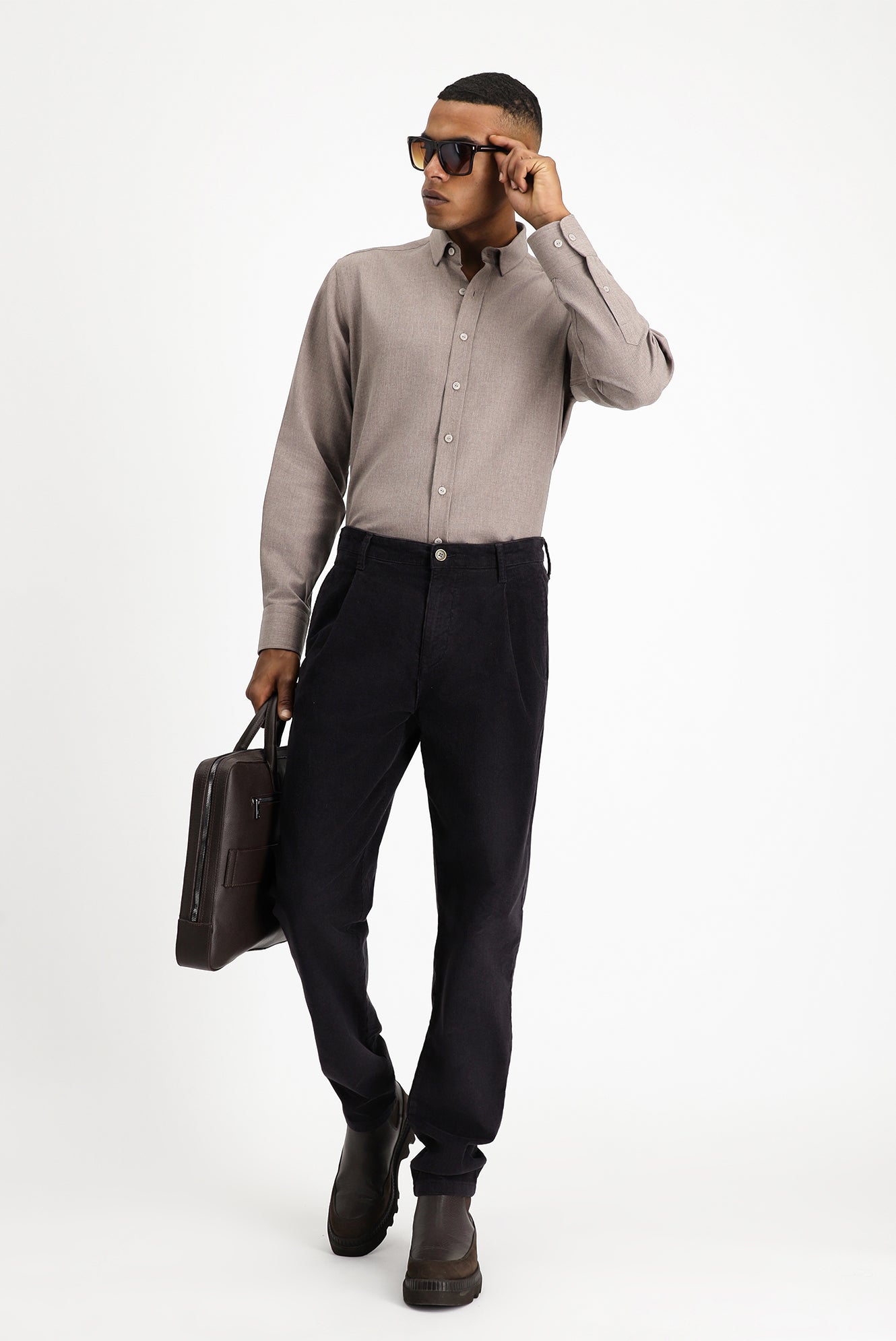 Koyu Kahve Uzun Kol Regular Fit Spor Pamuklu Kolay Ütülenebilir Gömlek