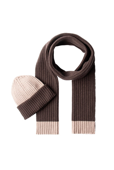 Koyu Kahve Yünlü Desenli Atkı & Bere Takımı
