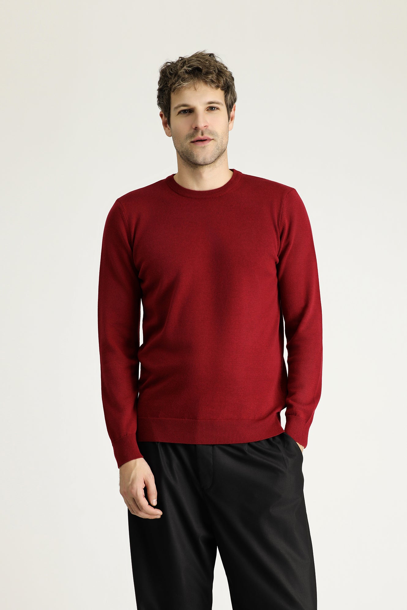 Koyu Kırmızı Bisiklet Yaka Regular Fit Pamuklu Triko Kazak