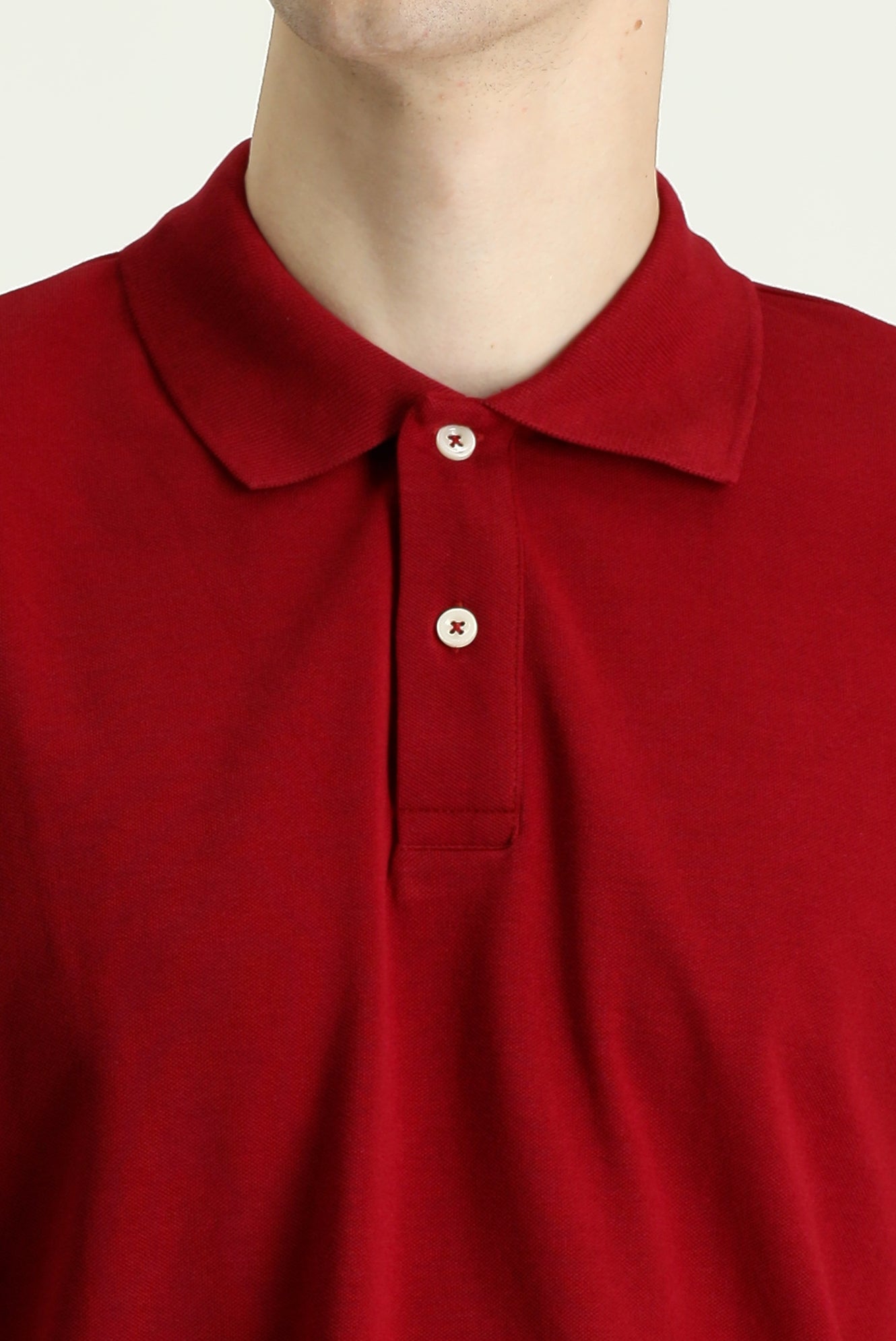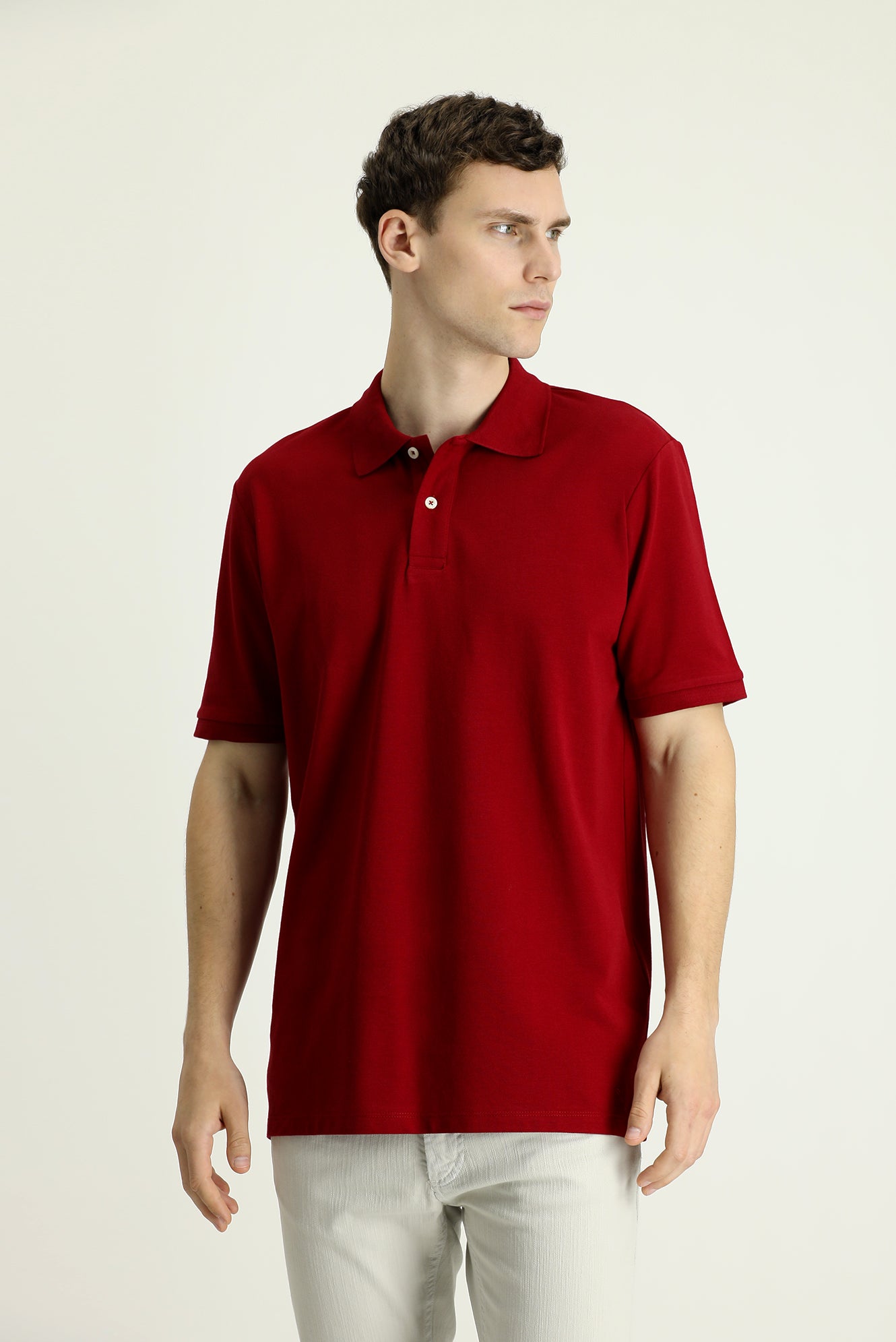 Koyu Kırmızı Polo Yaka Regular Fit Nakışlı Pamuk Tişört