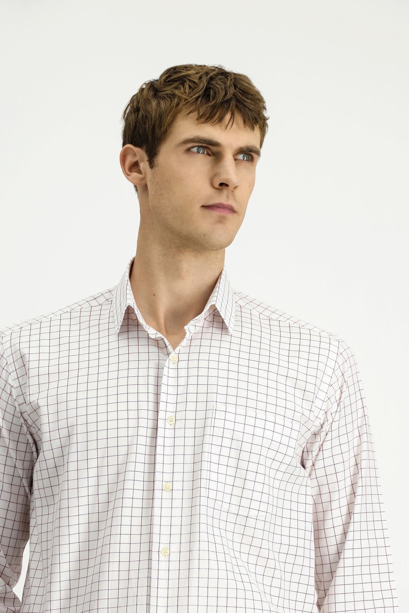 Koyu Kırmızı Uzun Kol Klasik Cepli Ekose Pamuk Gömlek