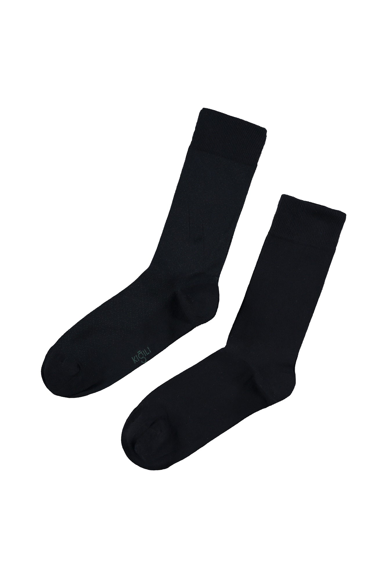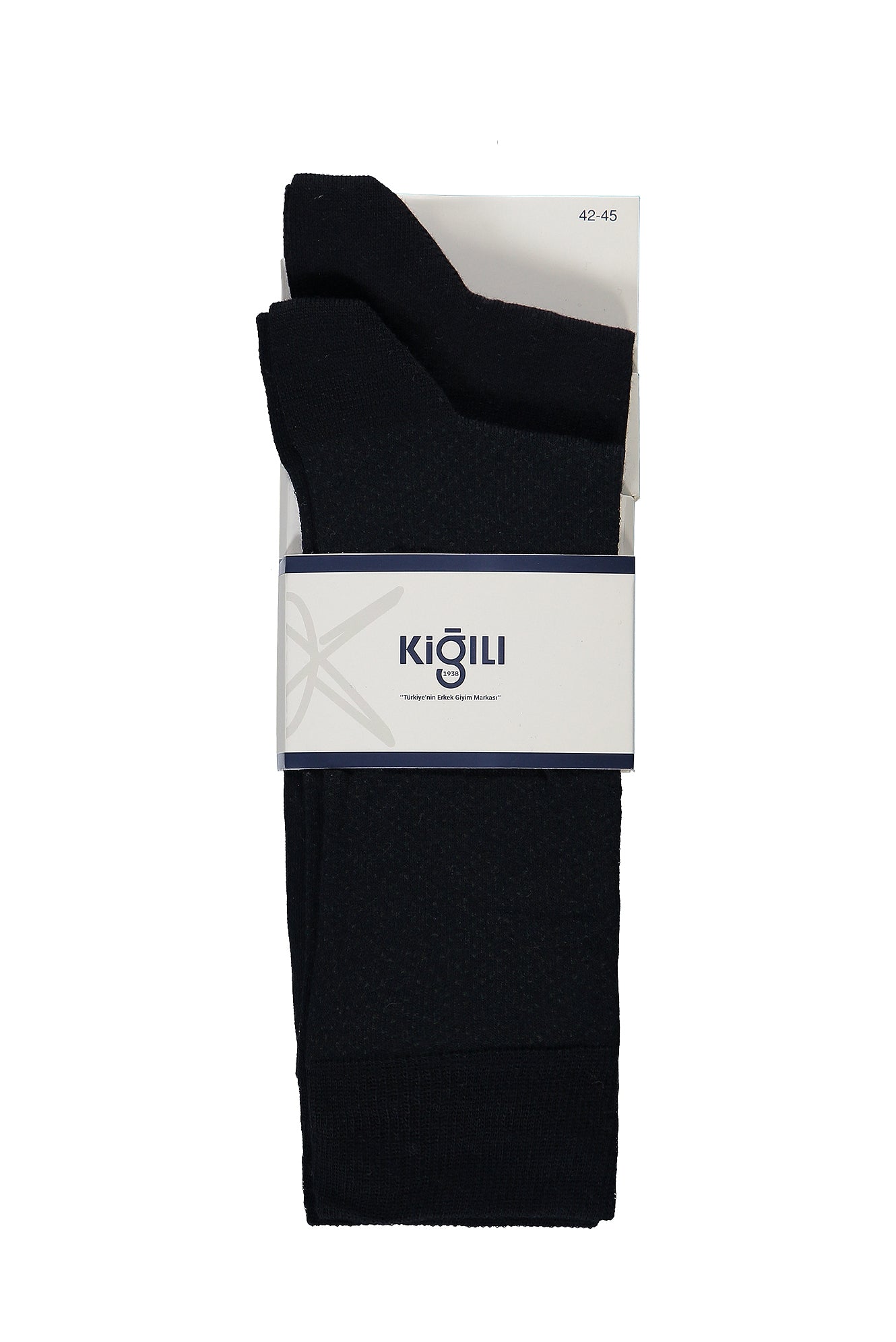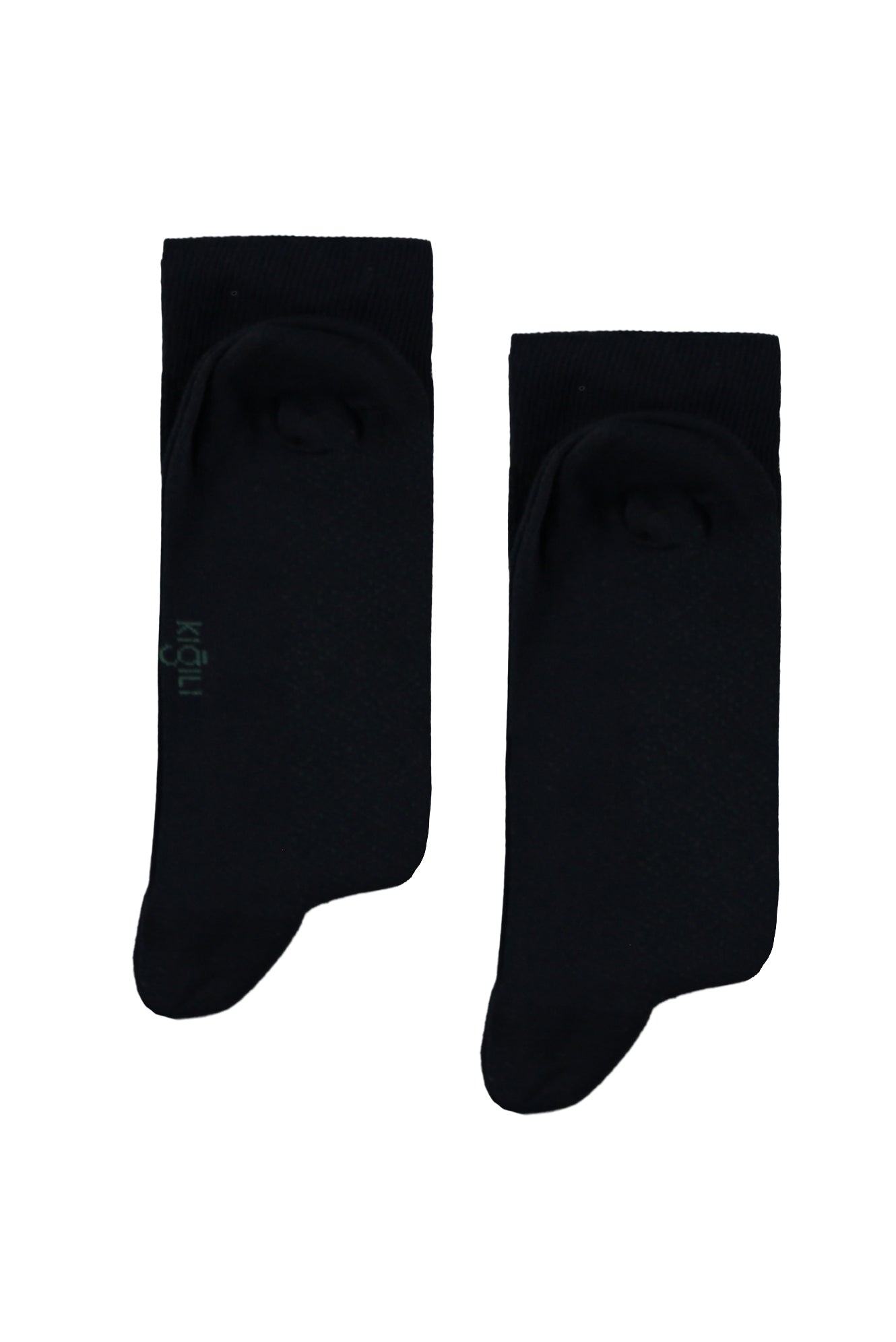Koyu Lacivert 2'li Pamuklu Likralı Rahat Esnek Desenli Çorap Seti