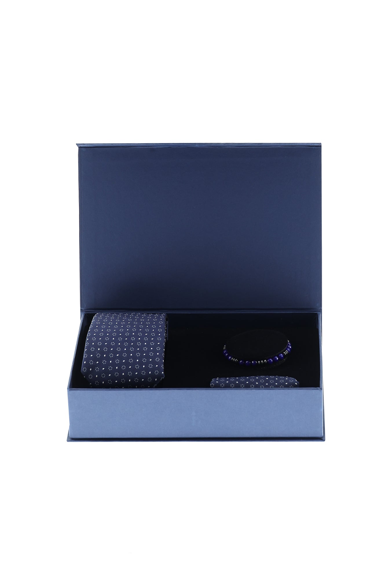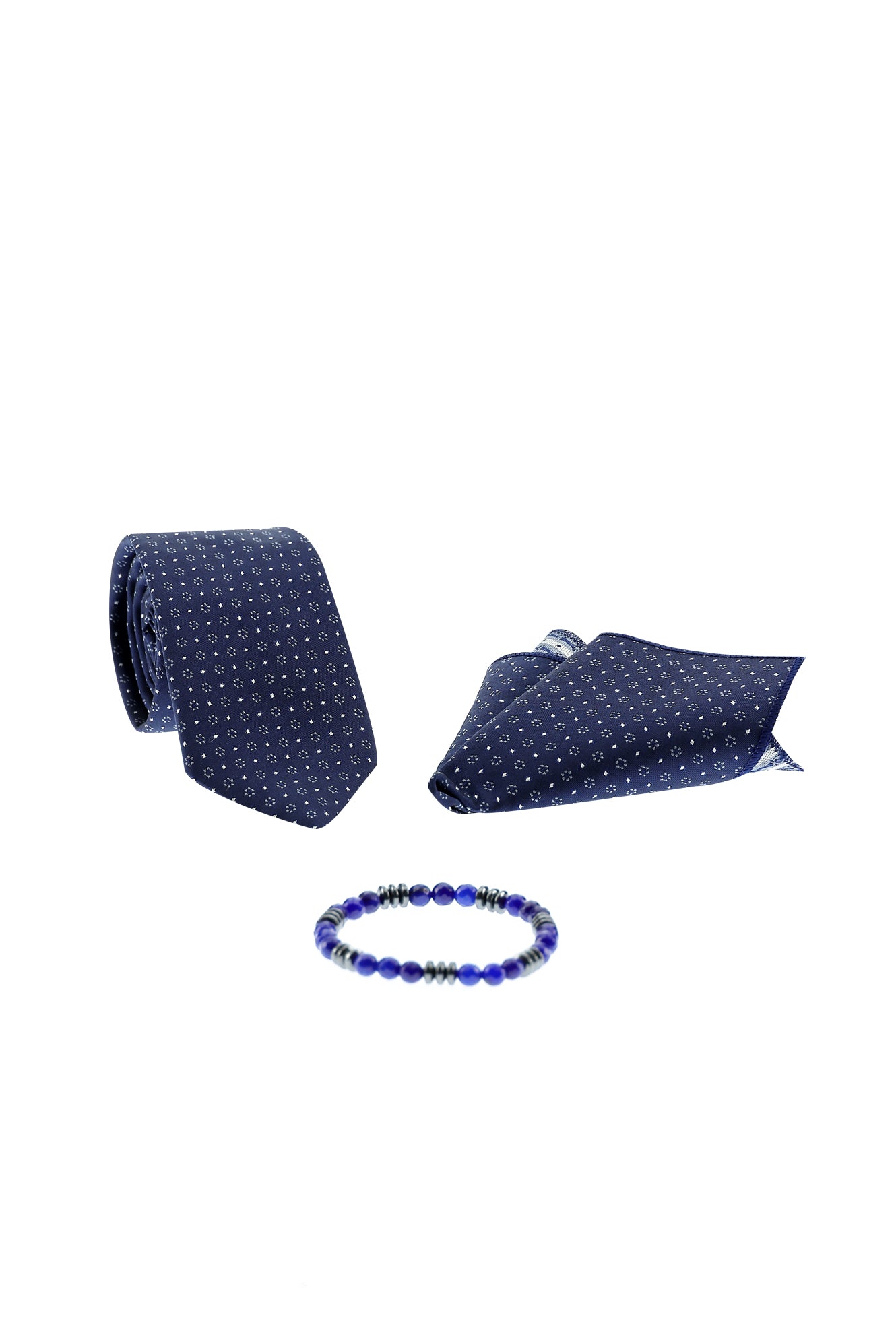 Koyu Lacivert 3'lü Kravat Mendil Bileklik Set