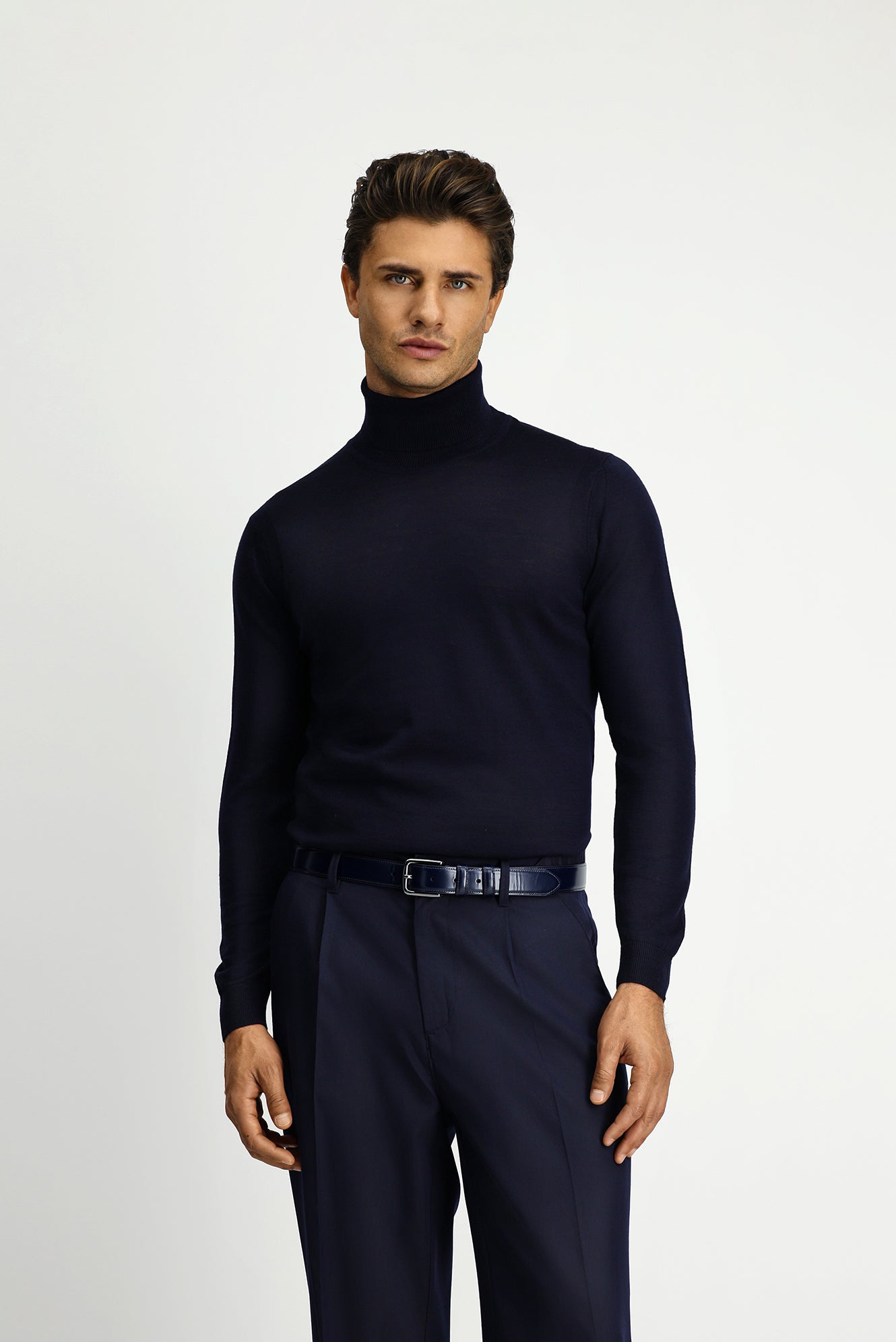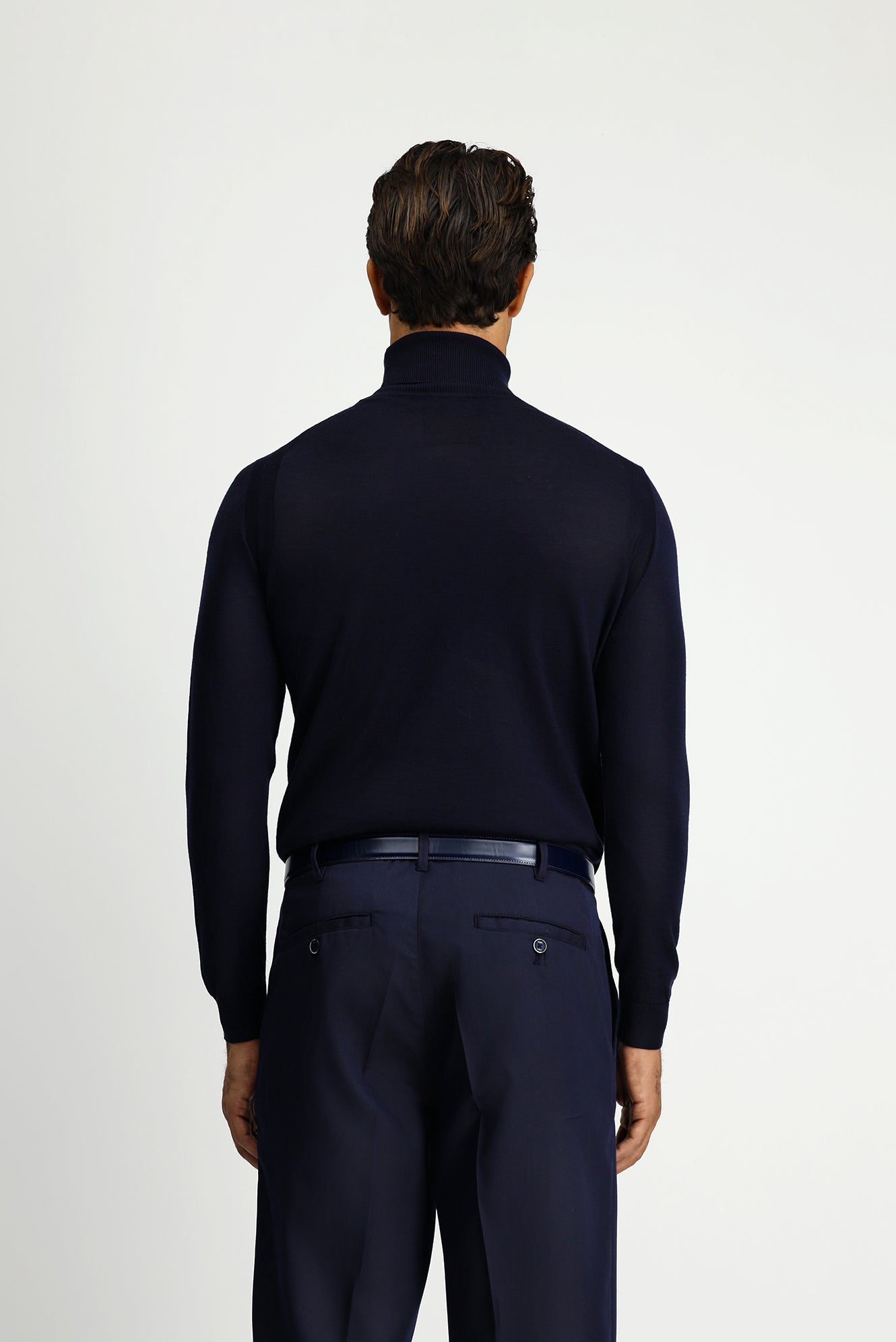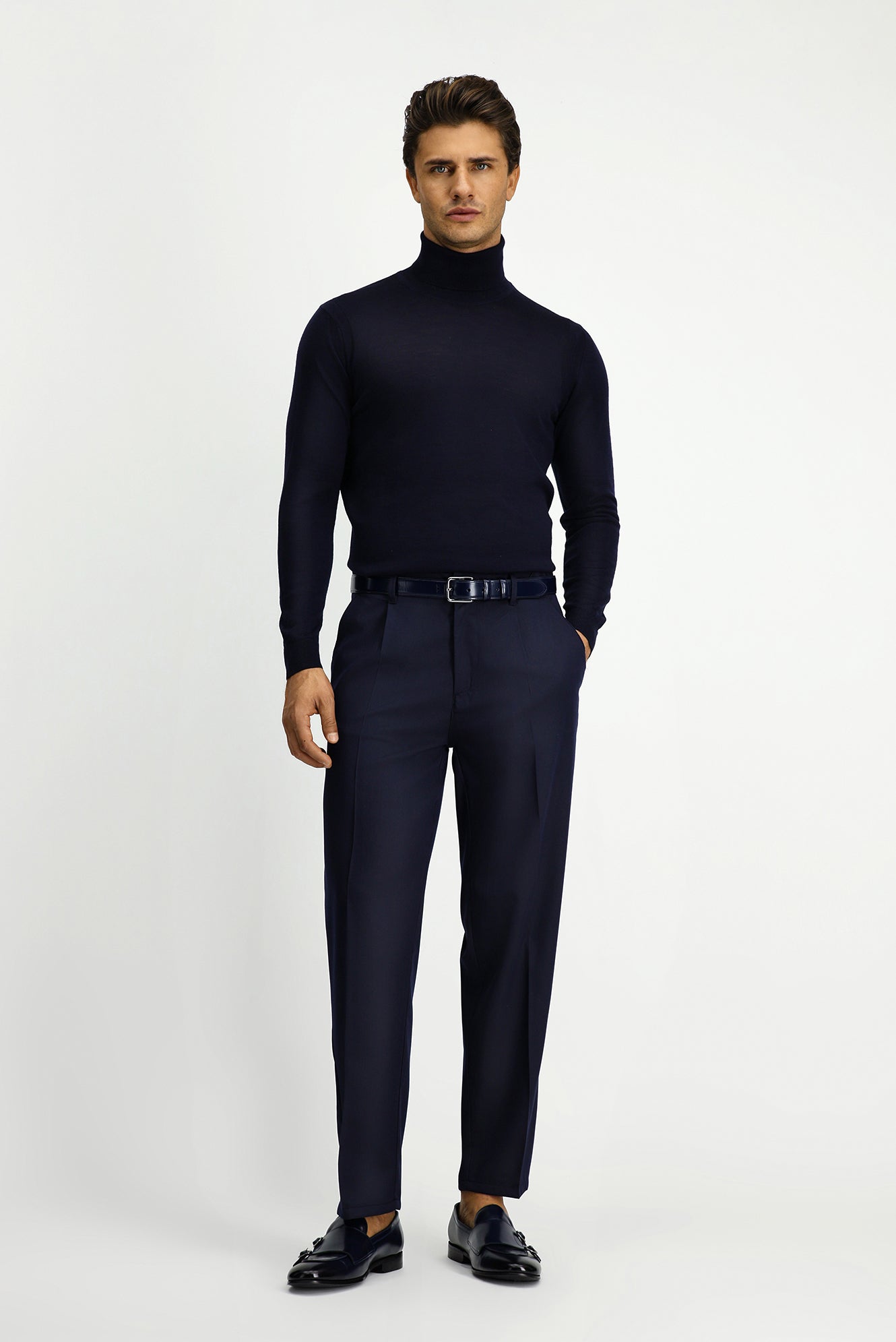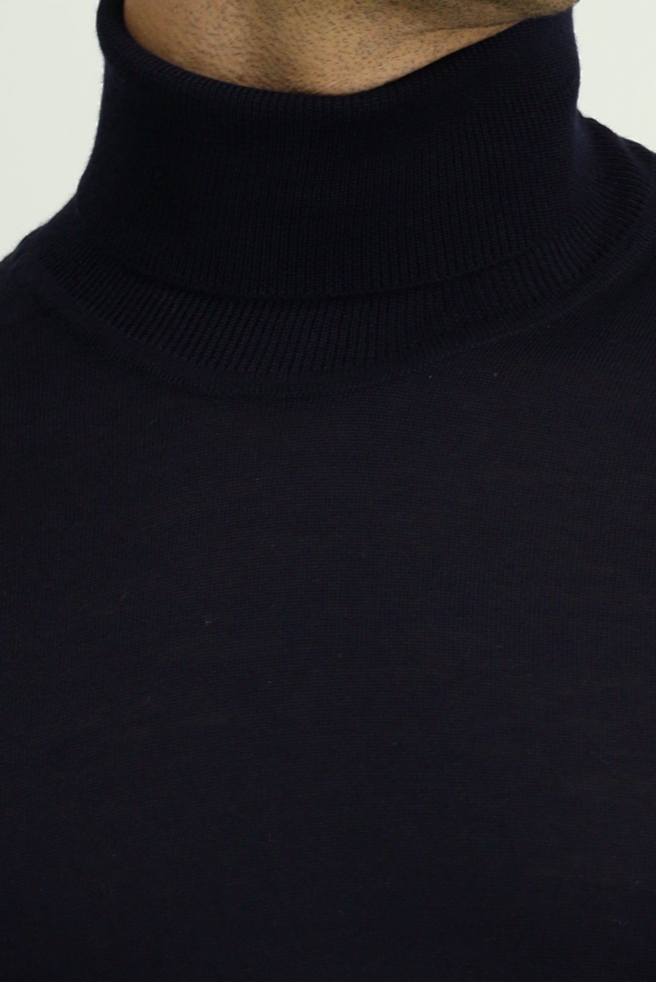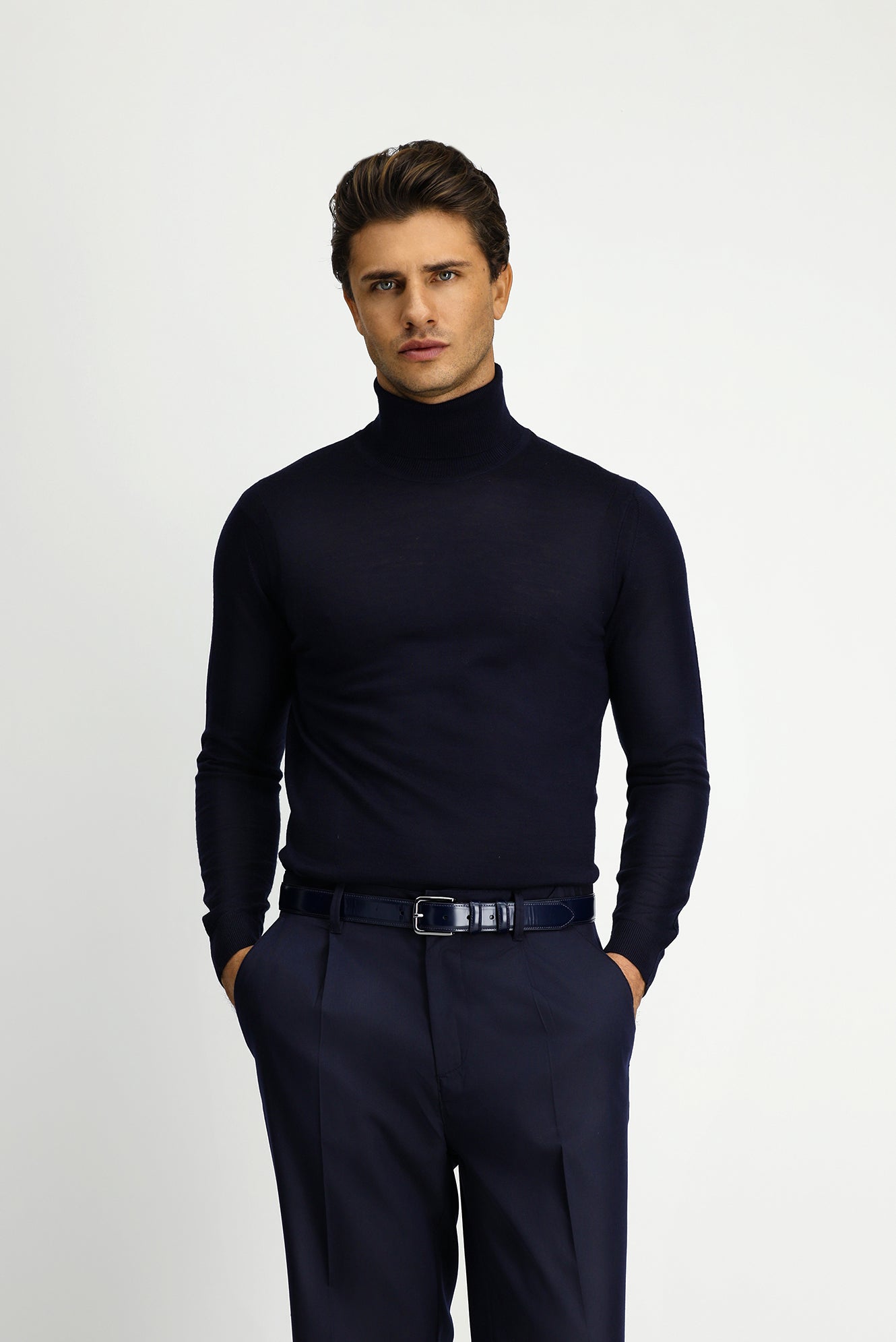 Koyu Lacivert Balıkçı Yaka Regular Fit Yünlü Triko Kazak