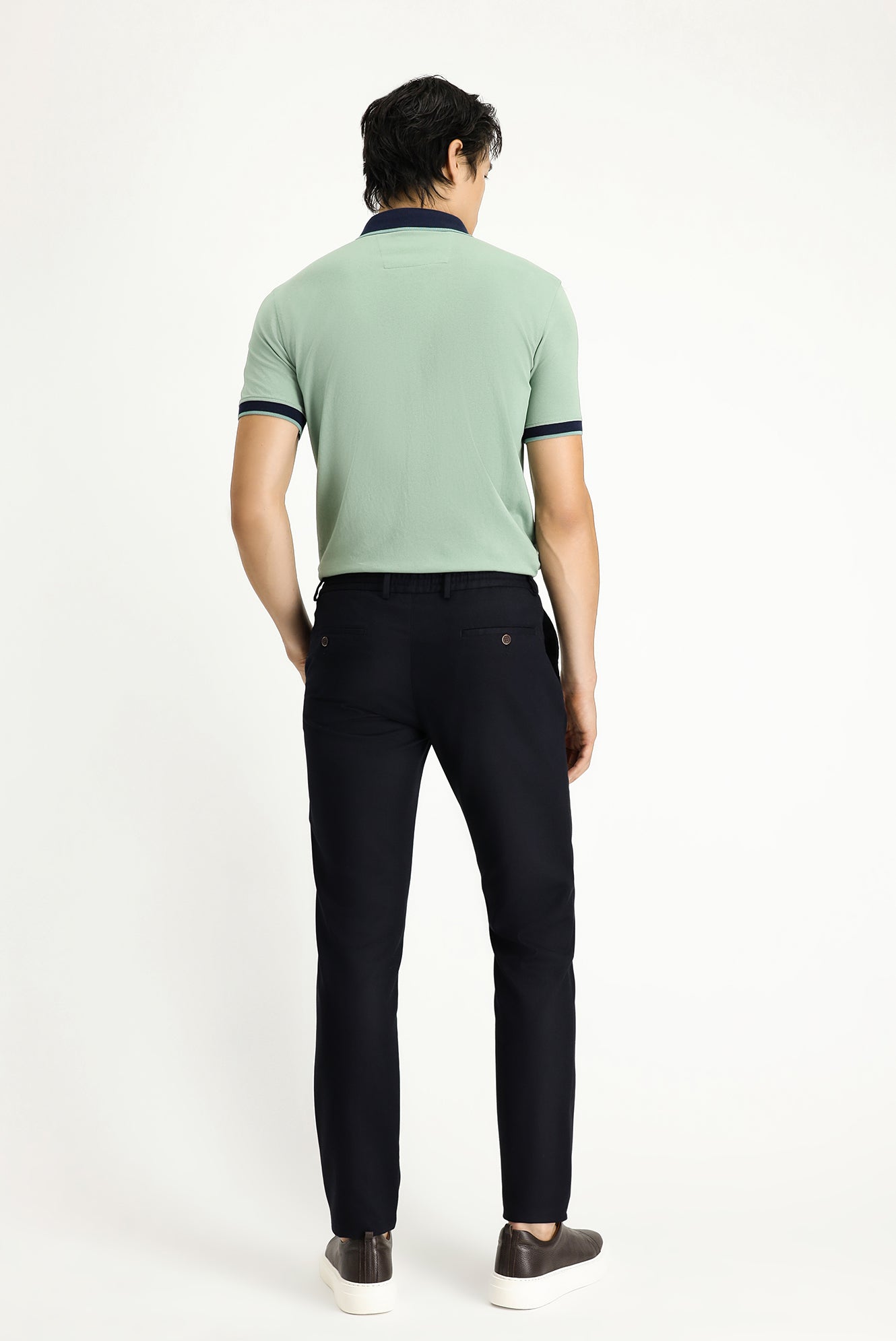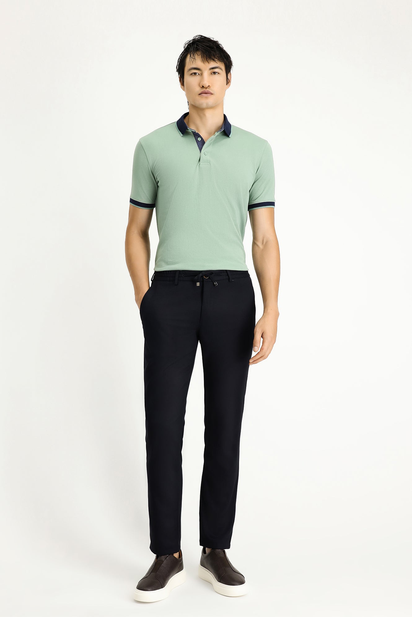 Koyu Lacivert 7 Drop Slim Fit Dar Kesim Beli Bağcıklı Lastikli Pantolon