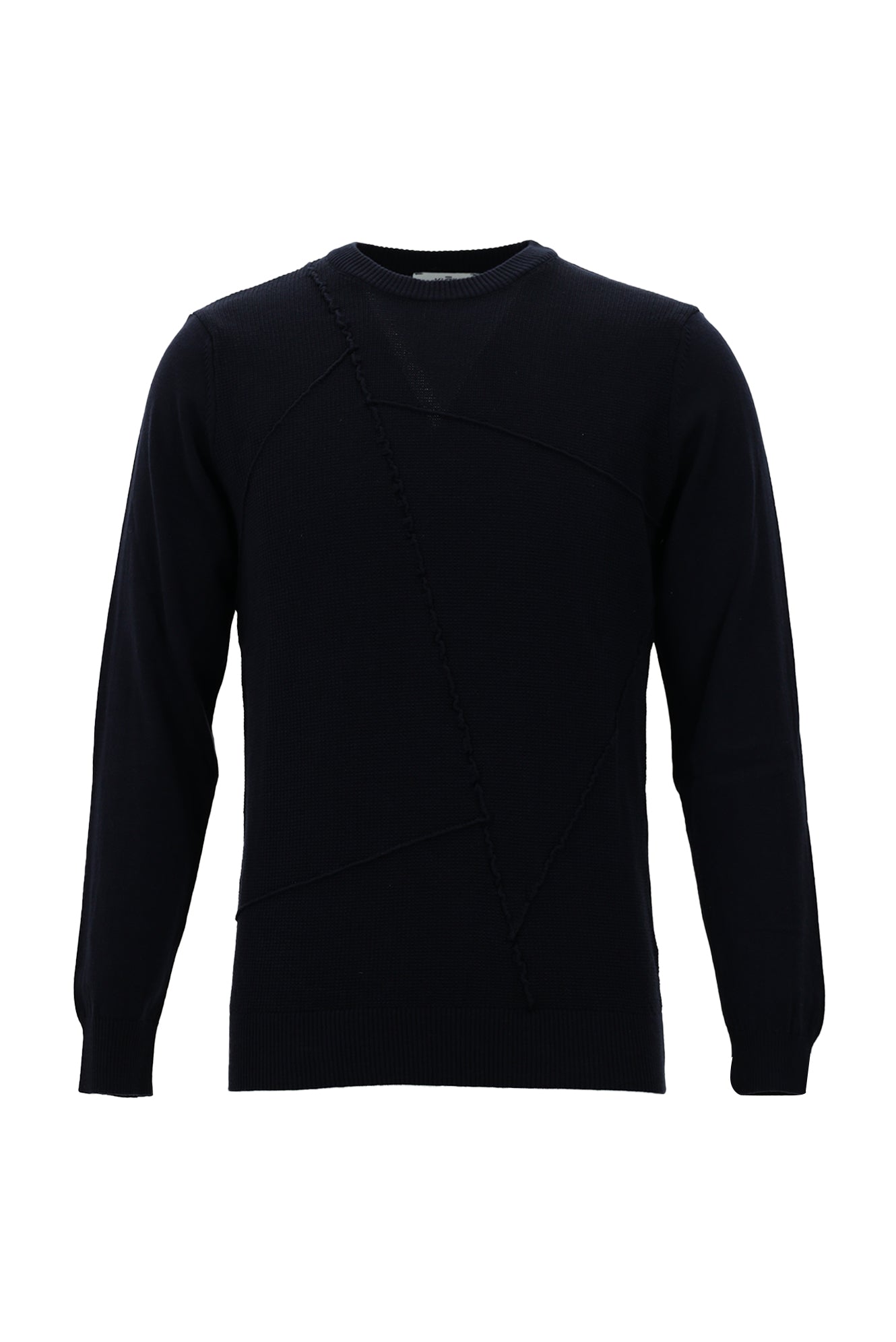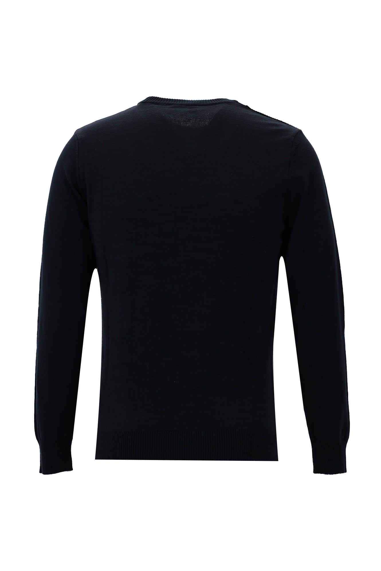 Koyu Lacivert Bisiklet Yaka Desenli Triko Kazak