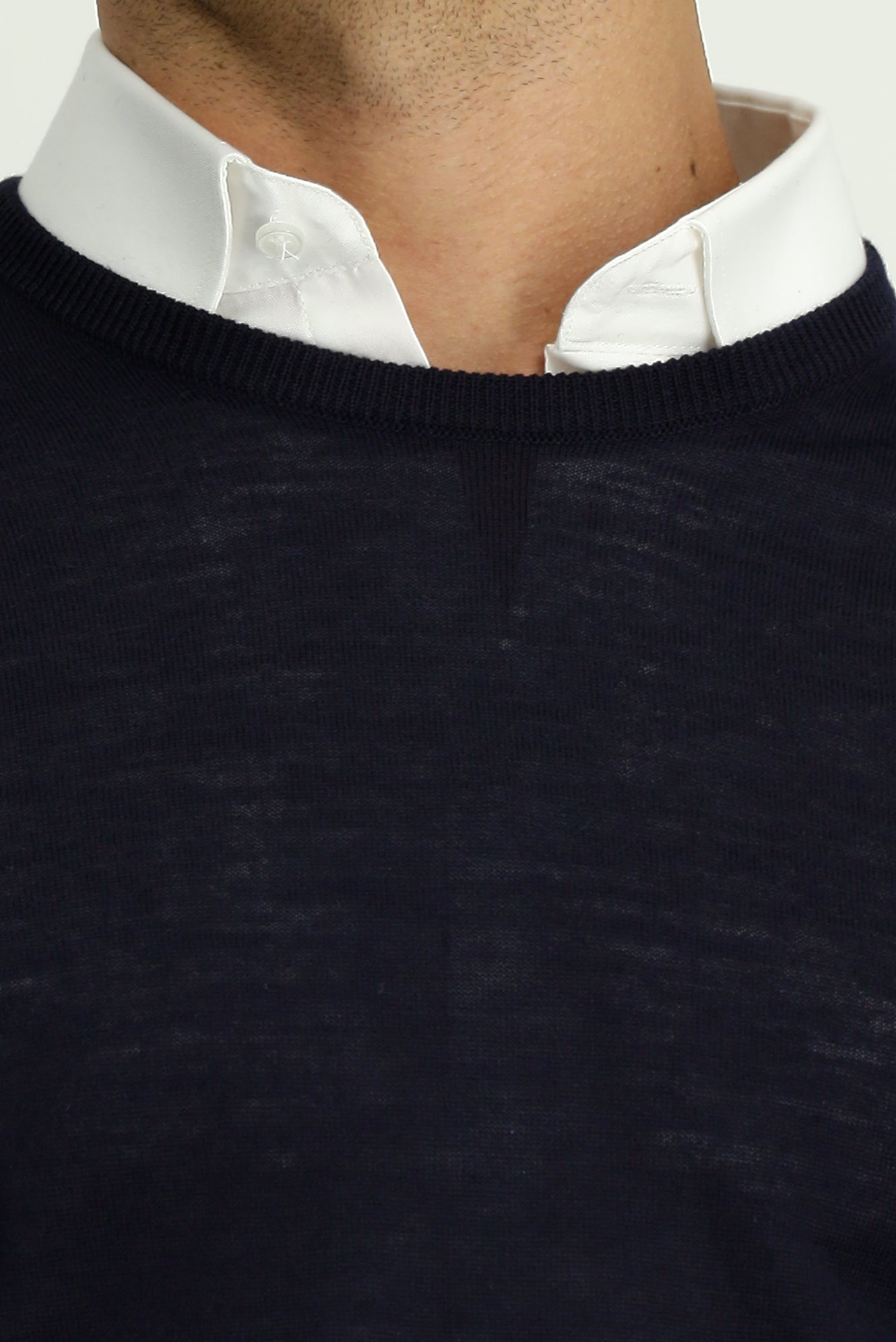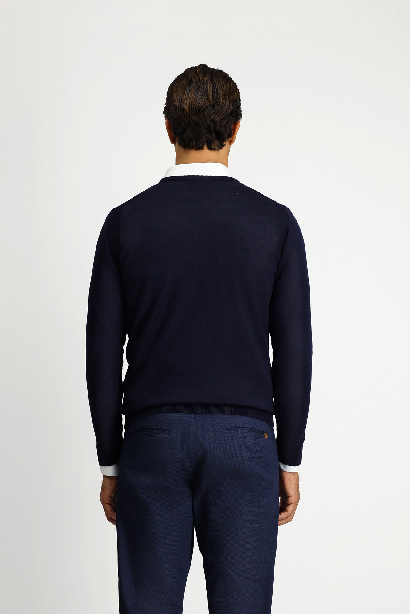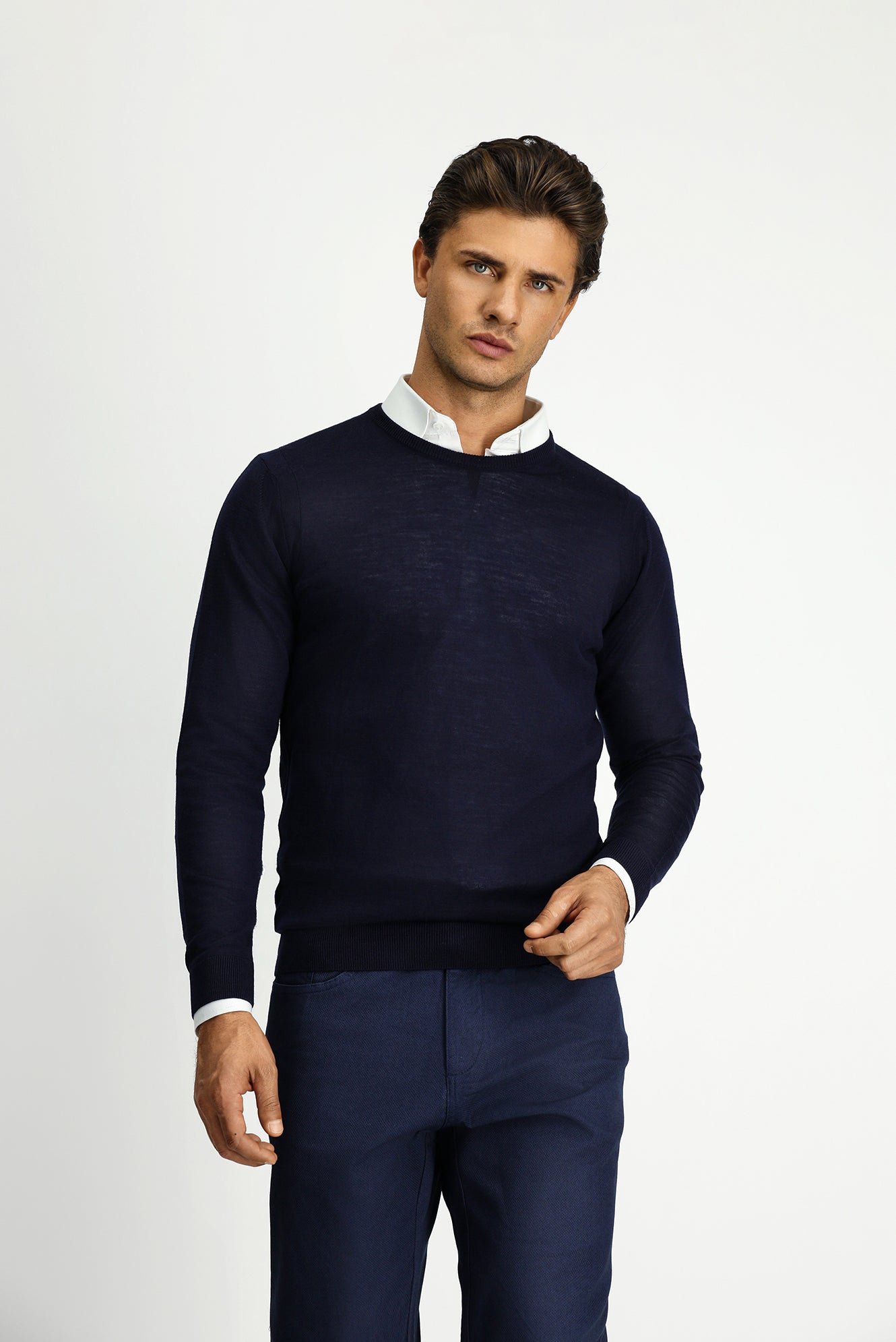 Koyu Lacivert Bisiklet Yaka Regular Fit Yünlü Triko Kazak