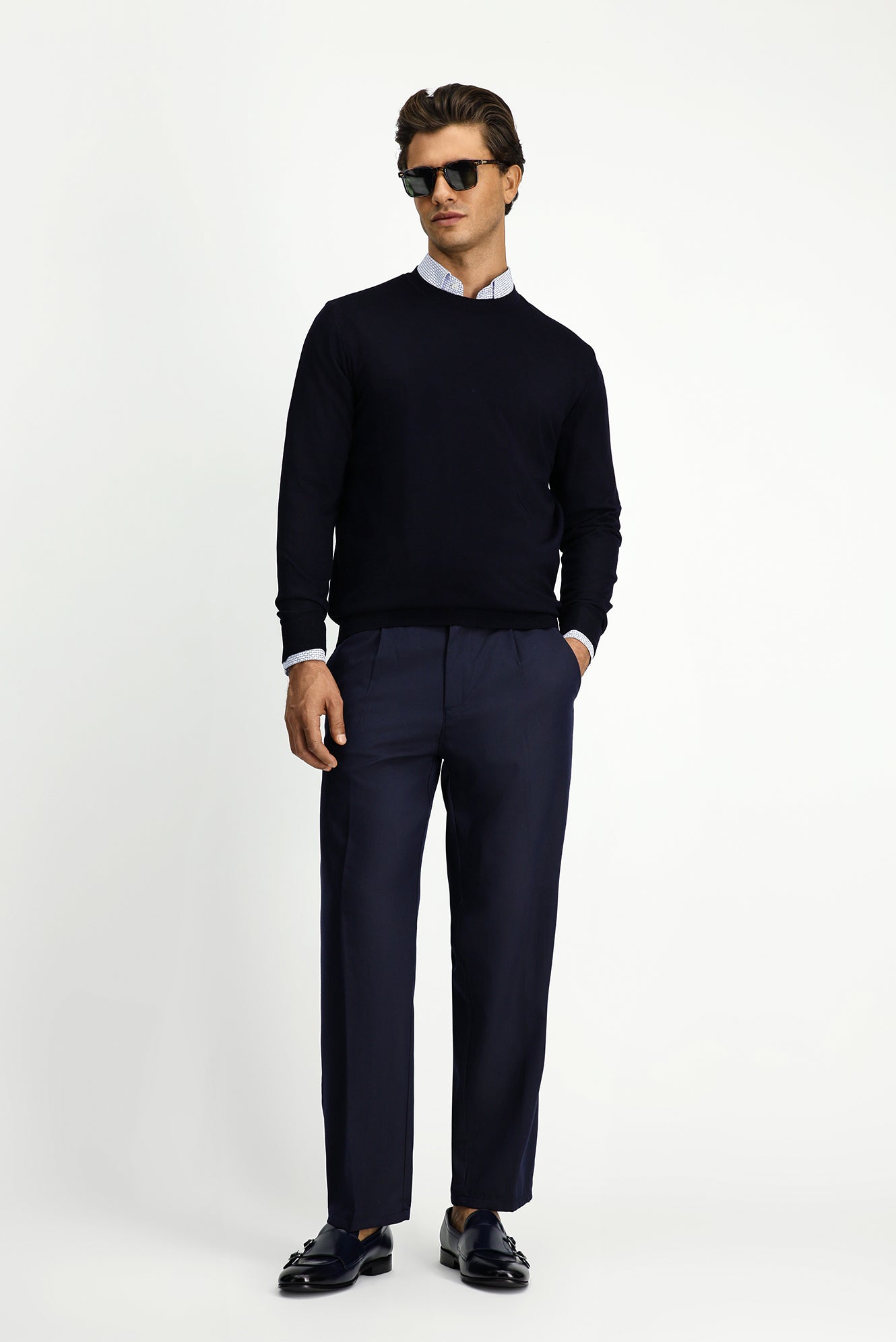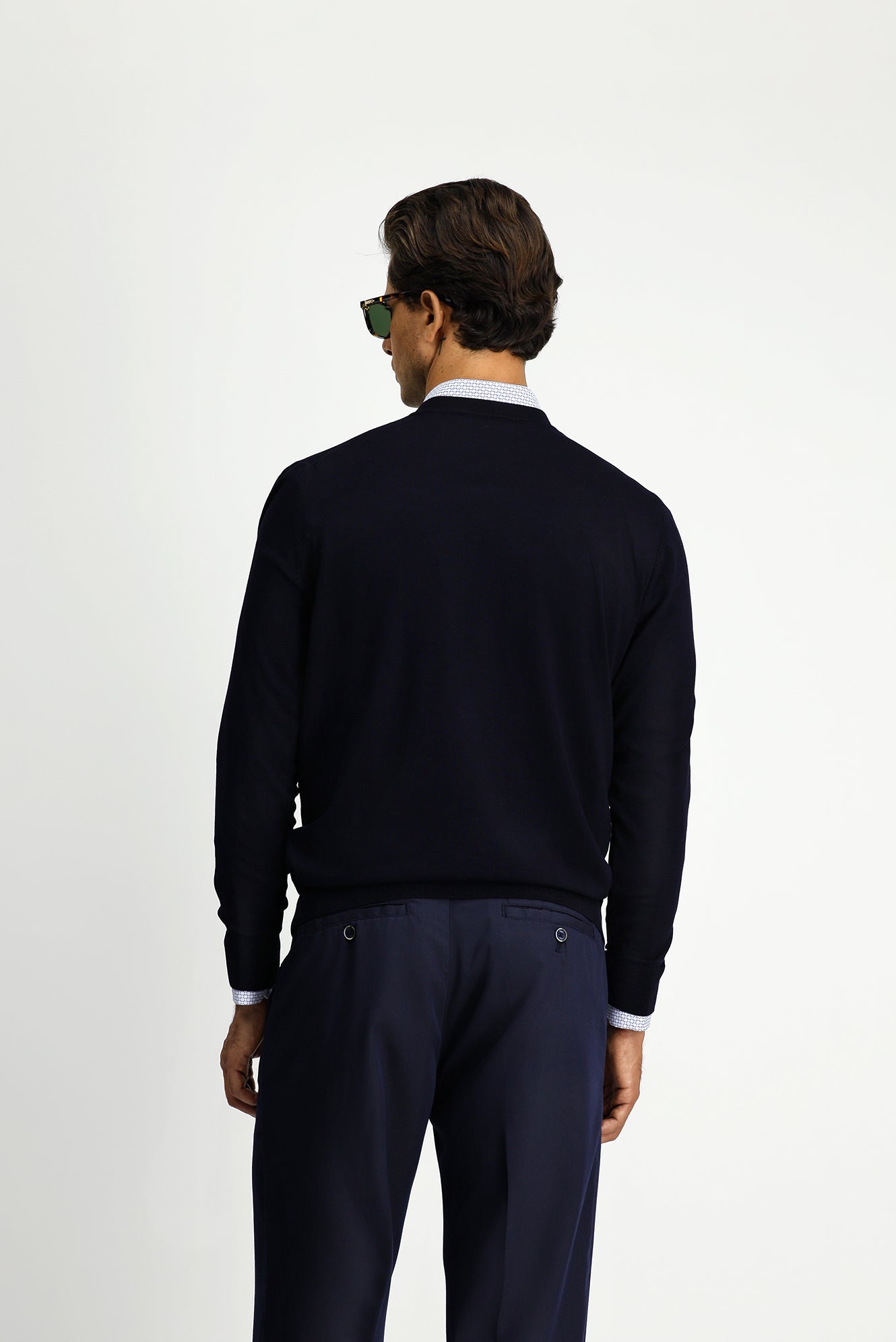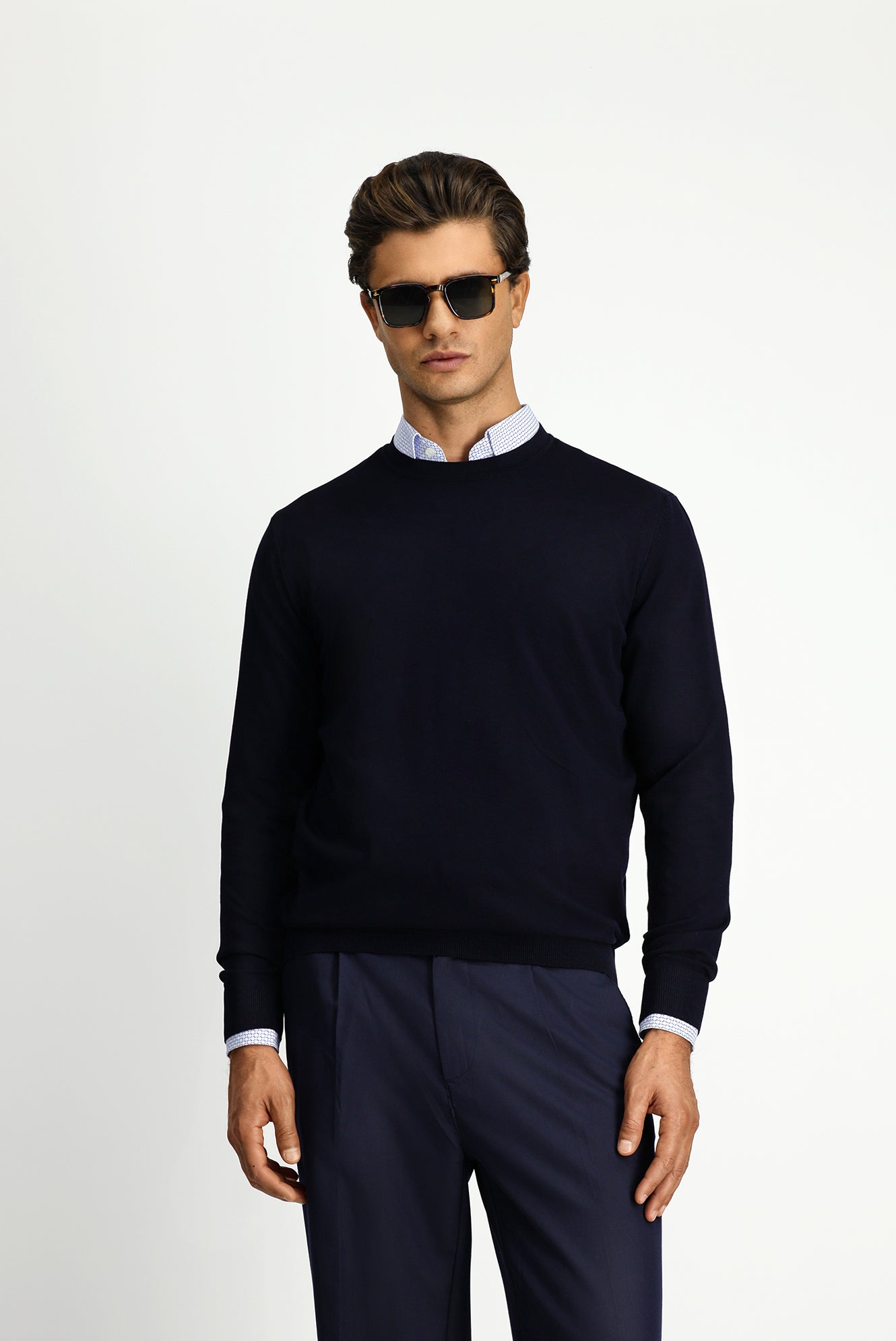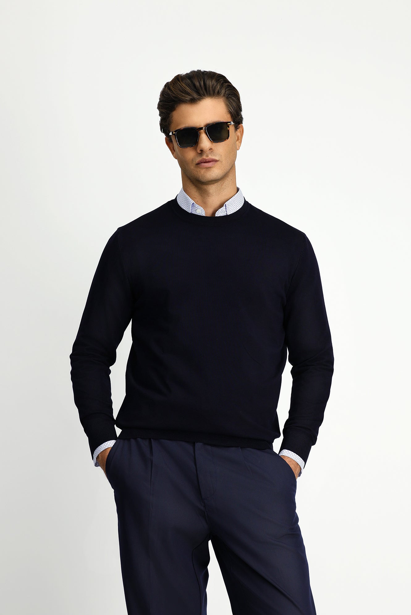 Koyu Lacivert Bisiklet Yaka Regular Fit Triko Kazak