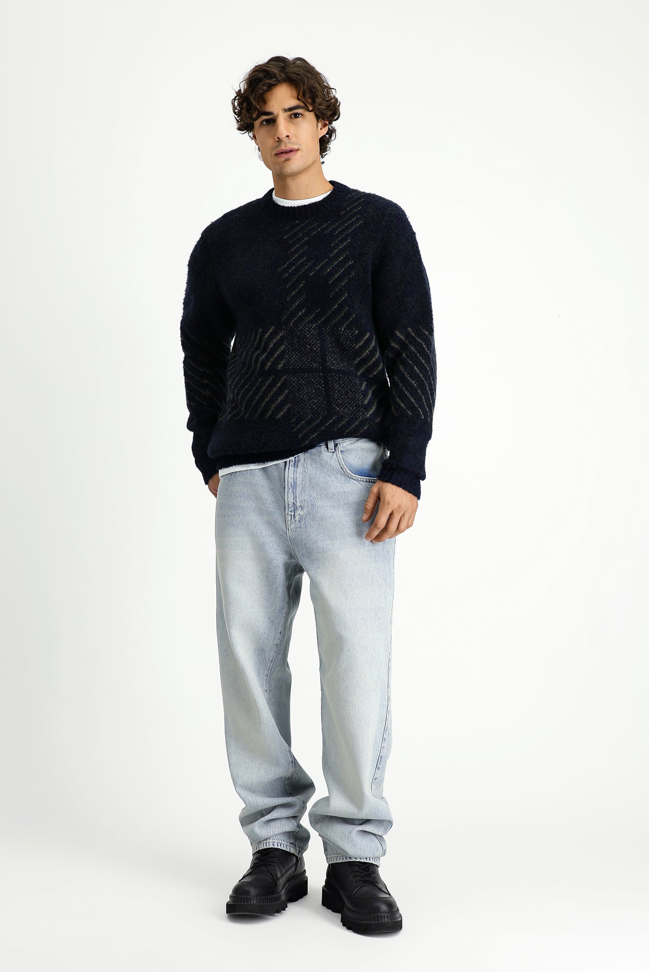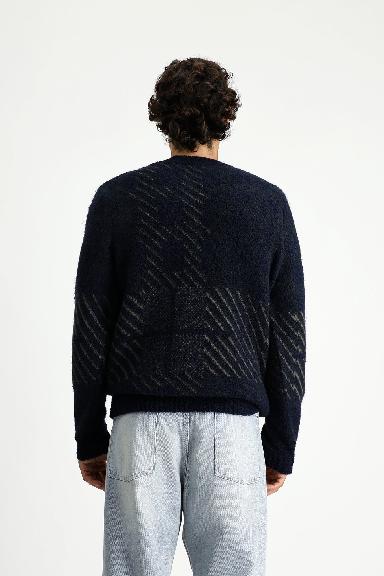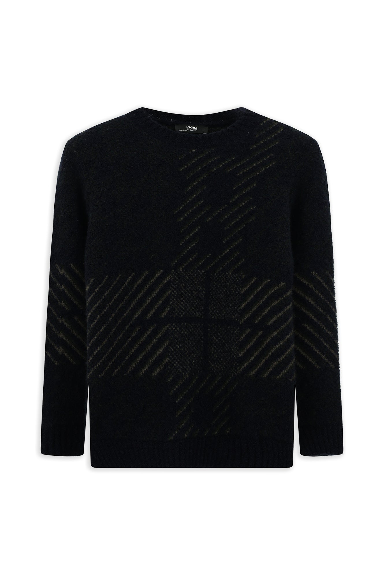 Koyu Lacivert Bisiklet Yaka Regular Fit Desenli Triko Kazak