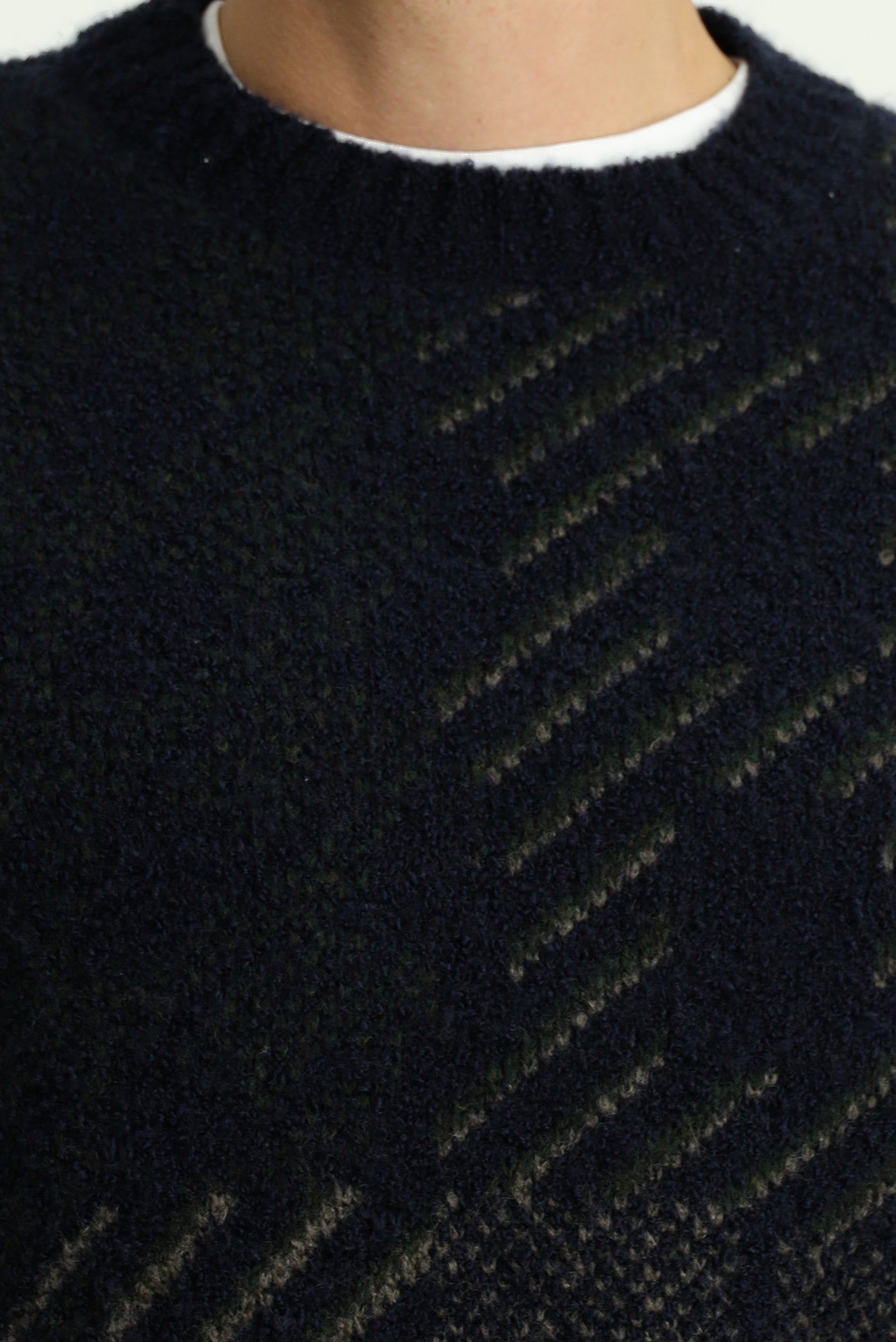 Koyu Lacivert Bisiklet Yaka Regular Fit Desenli Triko Kazak