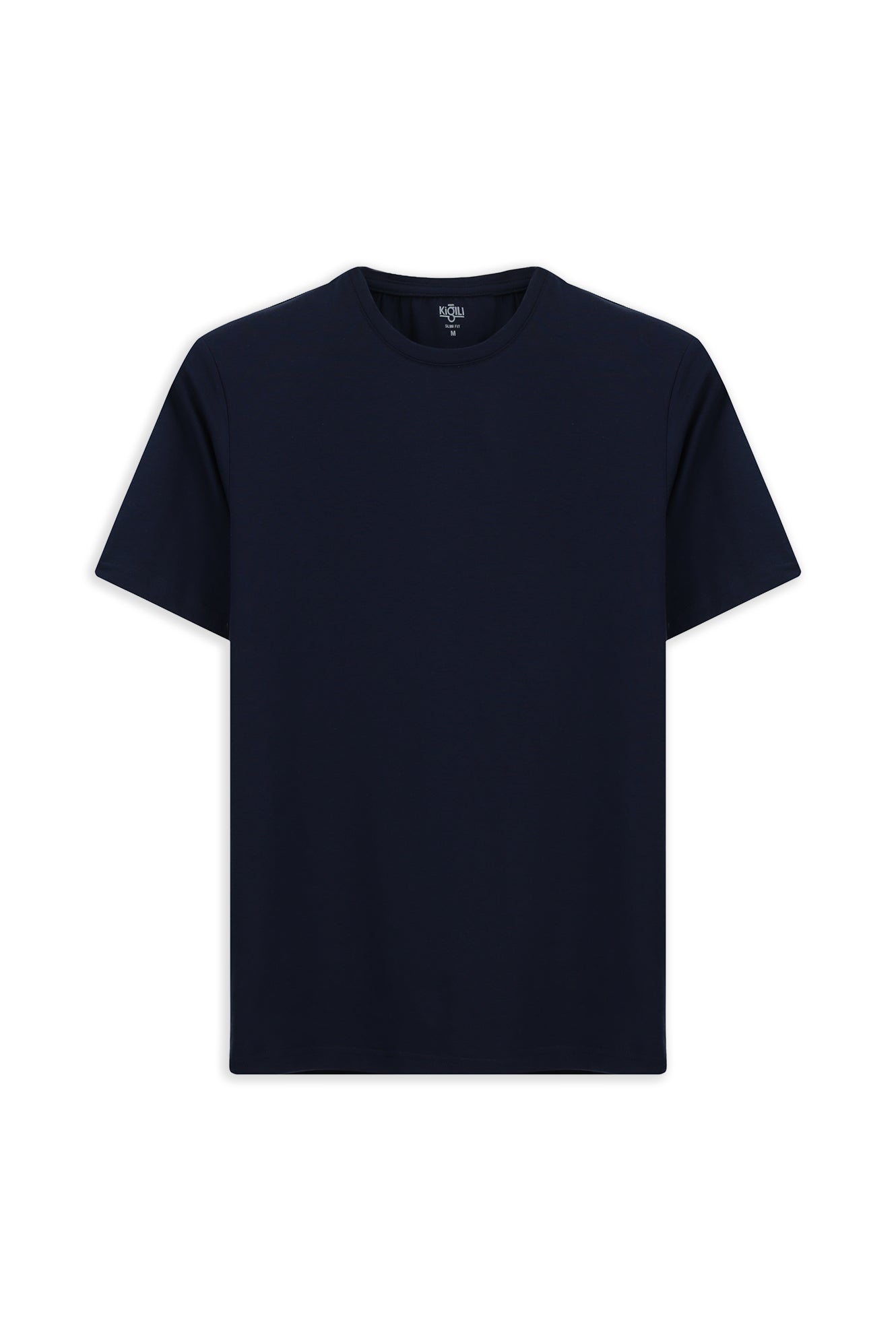 Koyu Lacivert Bisiklet Yaka Slim Fit Dar Kesim Süprem Pamuklu Tişört
