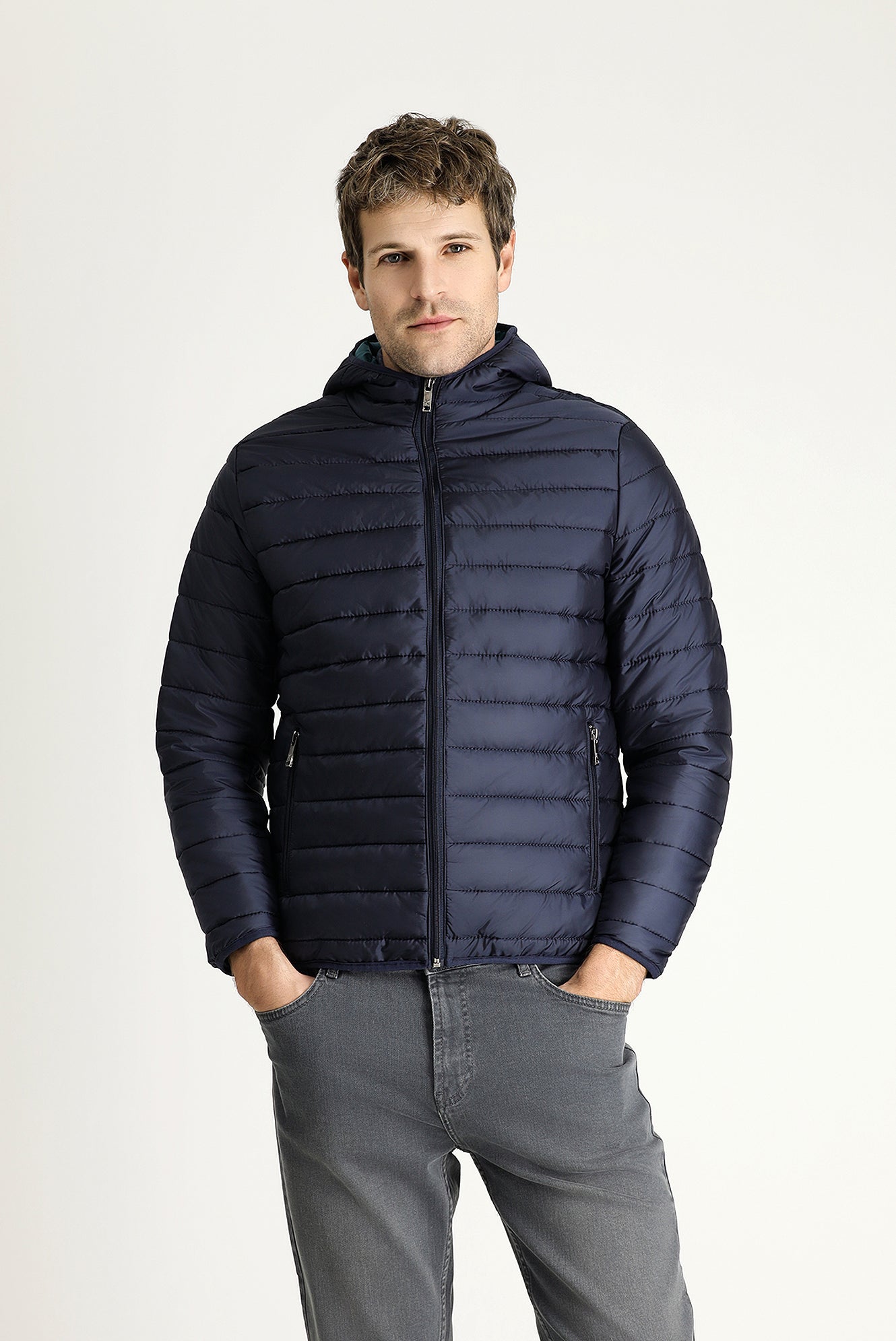 Koyu Lacivert Kapüşonlu Kapitone Spor Mont