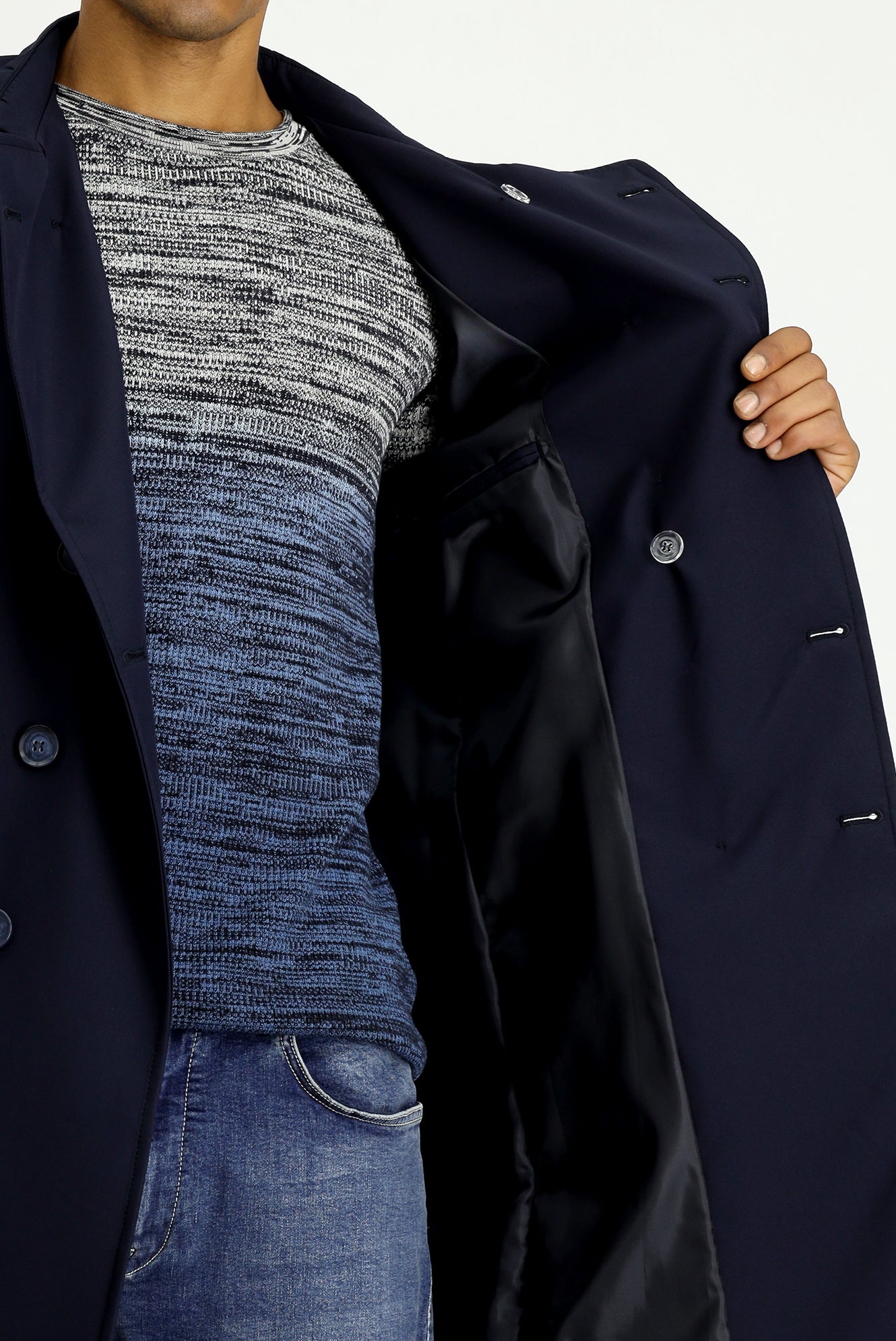 Koyu Lacivert Kruvaze Pardösü & Trençkot