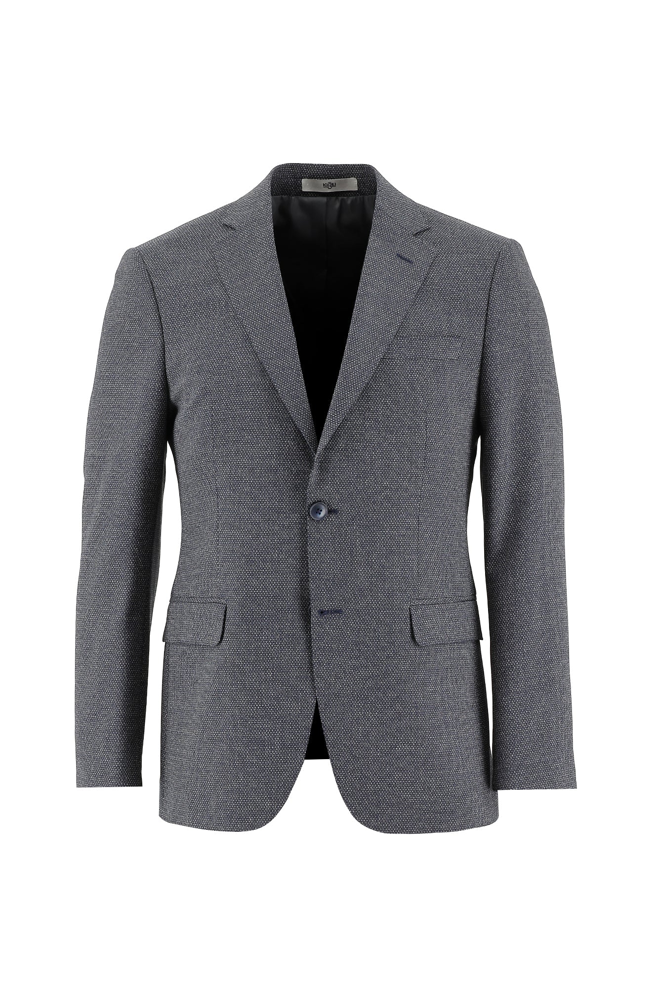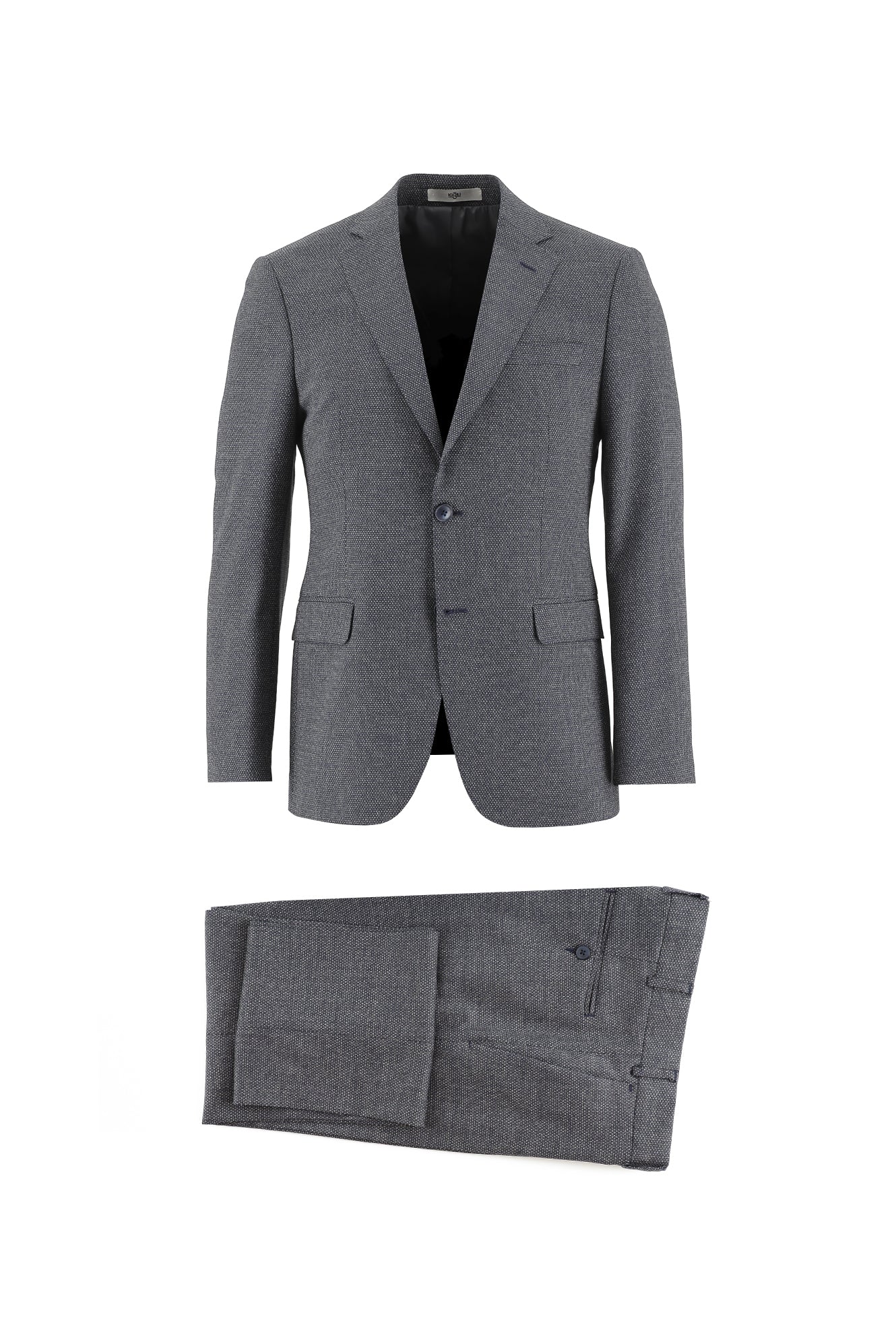 Koyu Lacivert Slim Fit Dar Kesim Yünlü Kuşgözü Takım Elbise