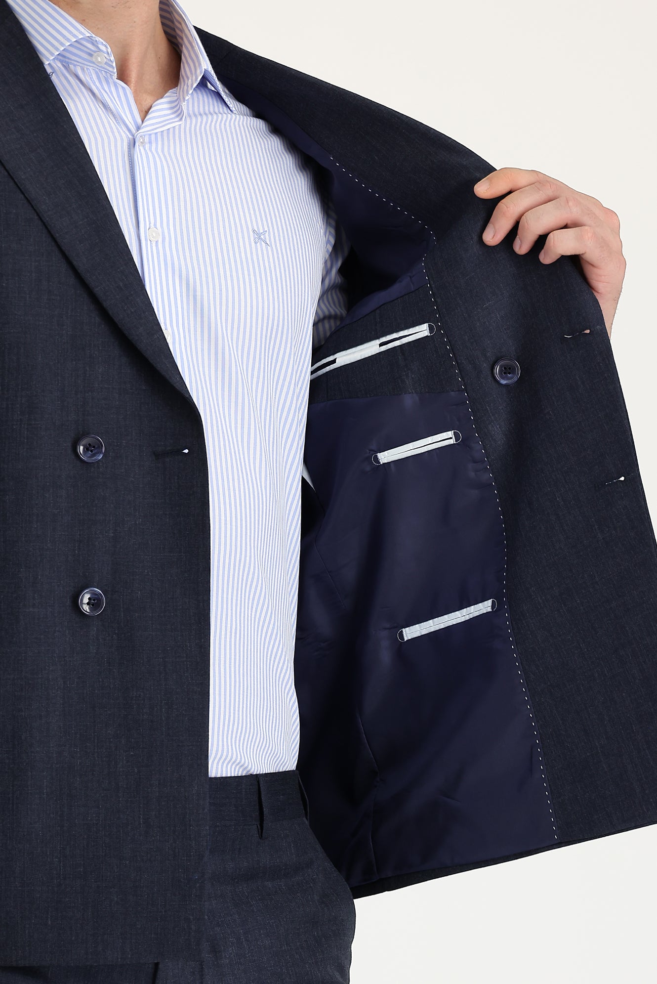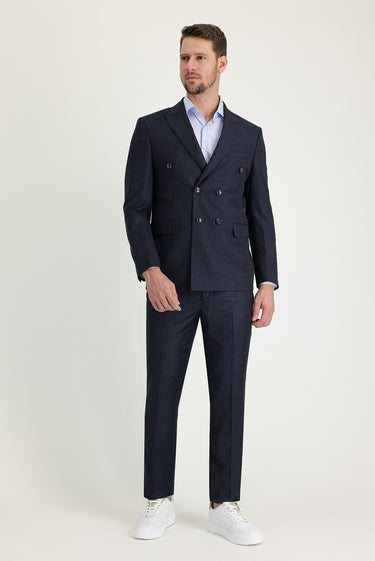 Koyu Lacivert Melanj 7 Drop Slim Fit Dar Kesim Kruvaze Takım Elbise