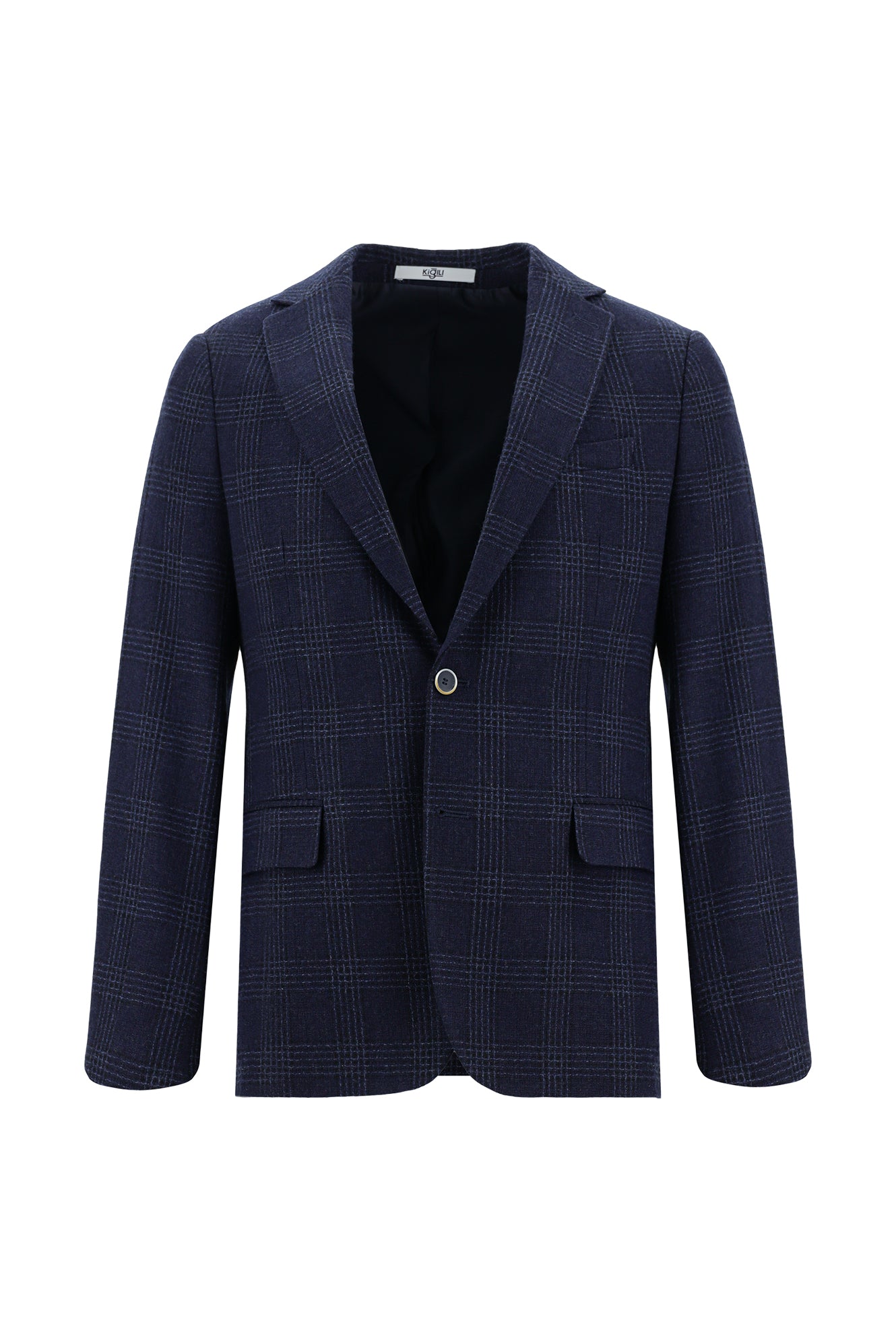 Koyu Lacivert Muscle Fit Yünlü Ekose Ceket