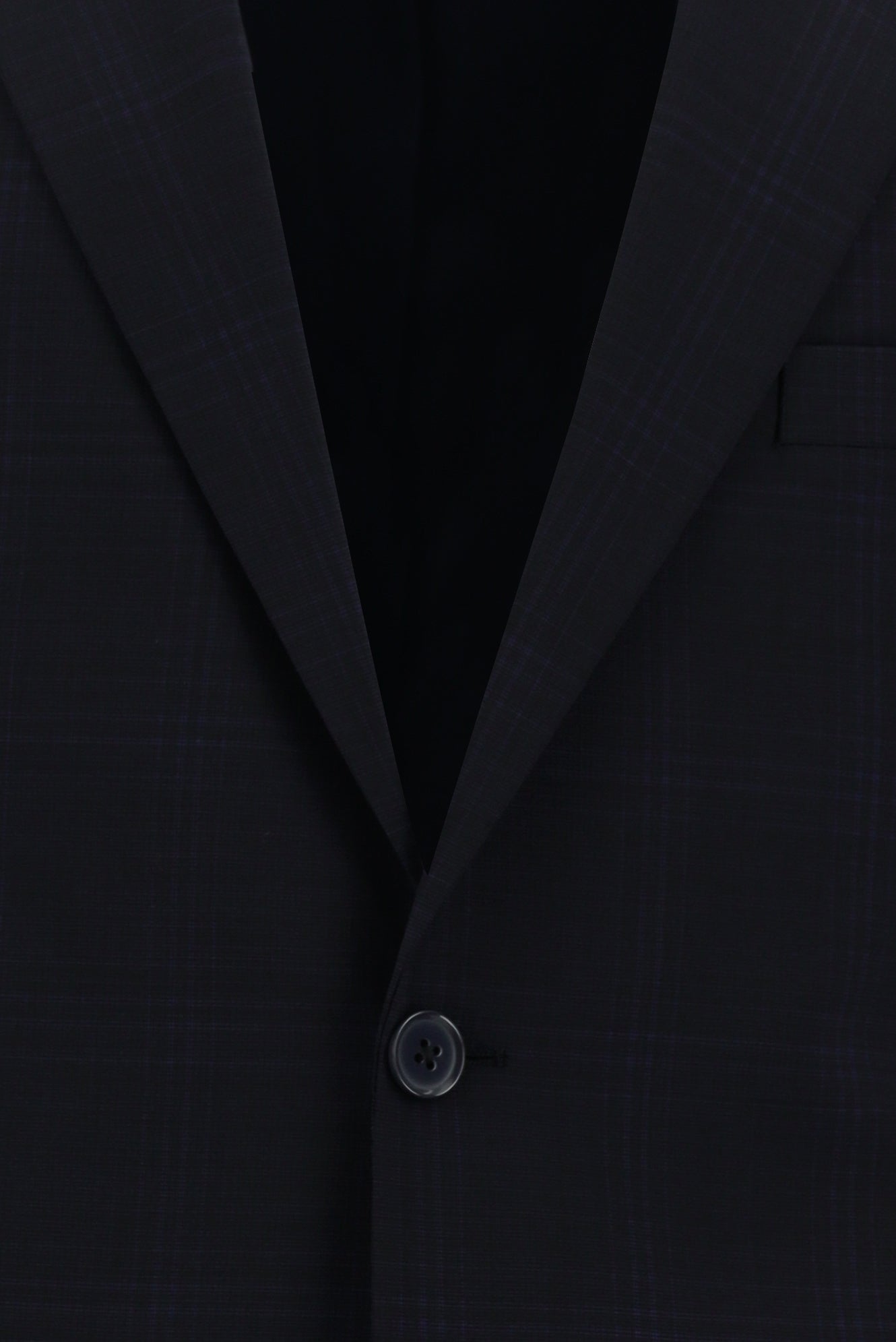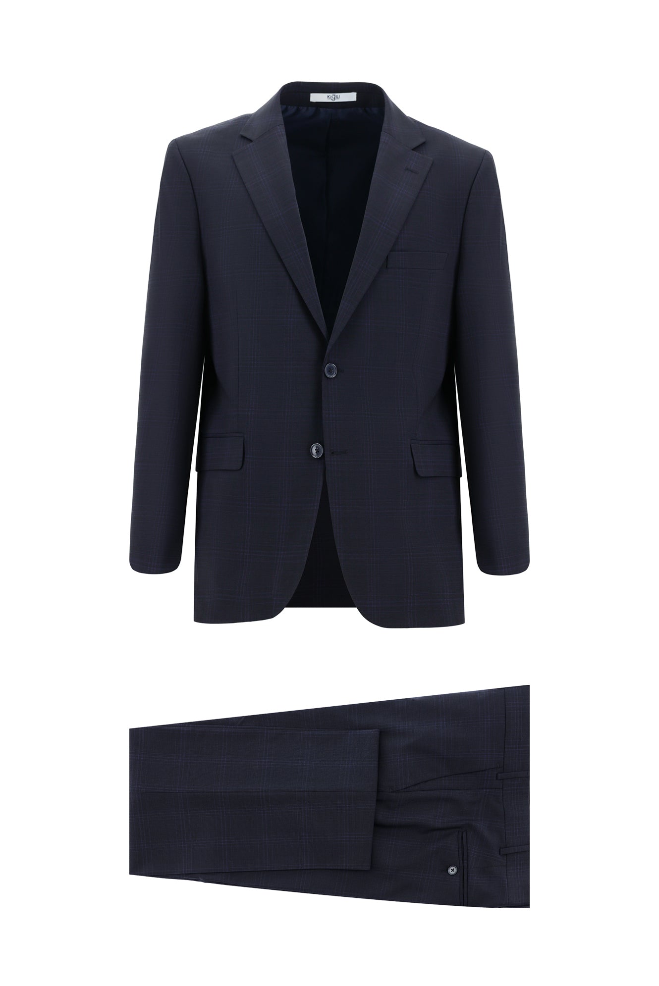 Koyu Lacivert Muscle Fit Yünlü Klasik Ekose Takım Elbise