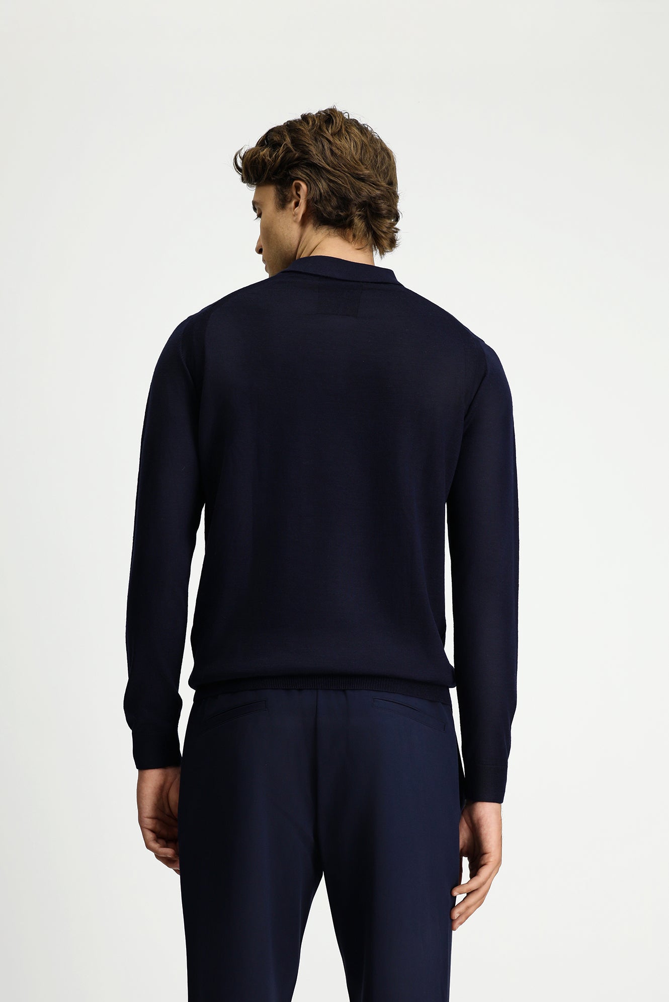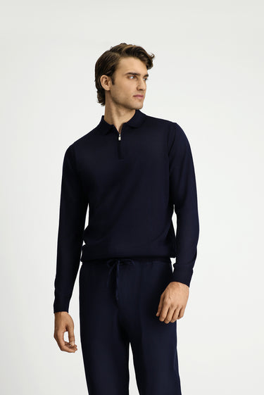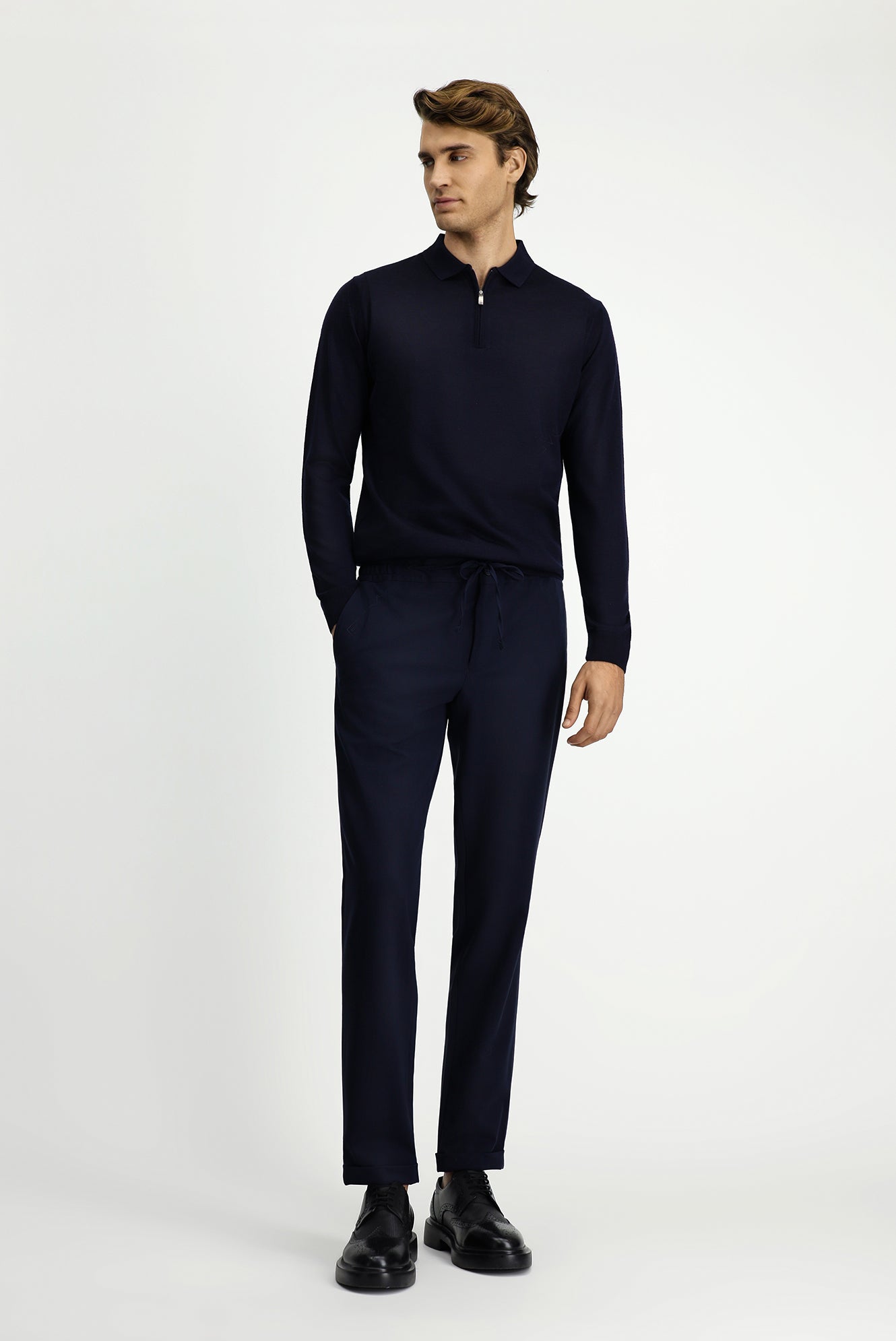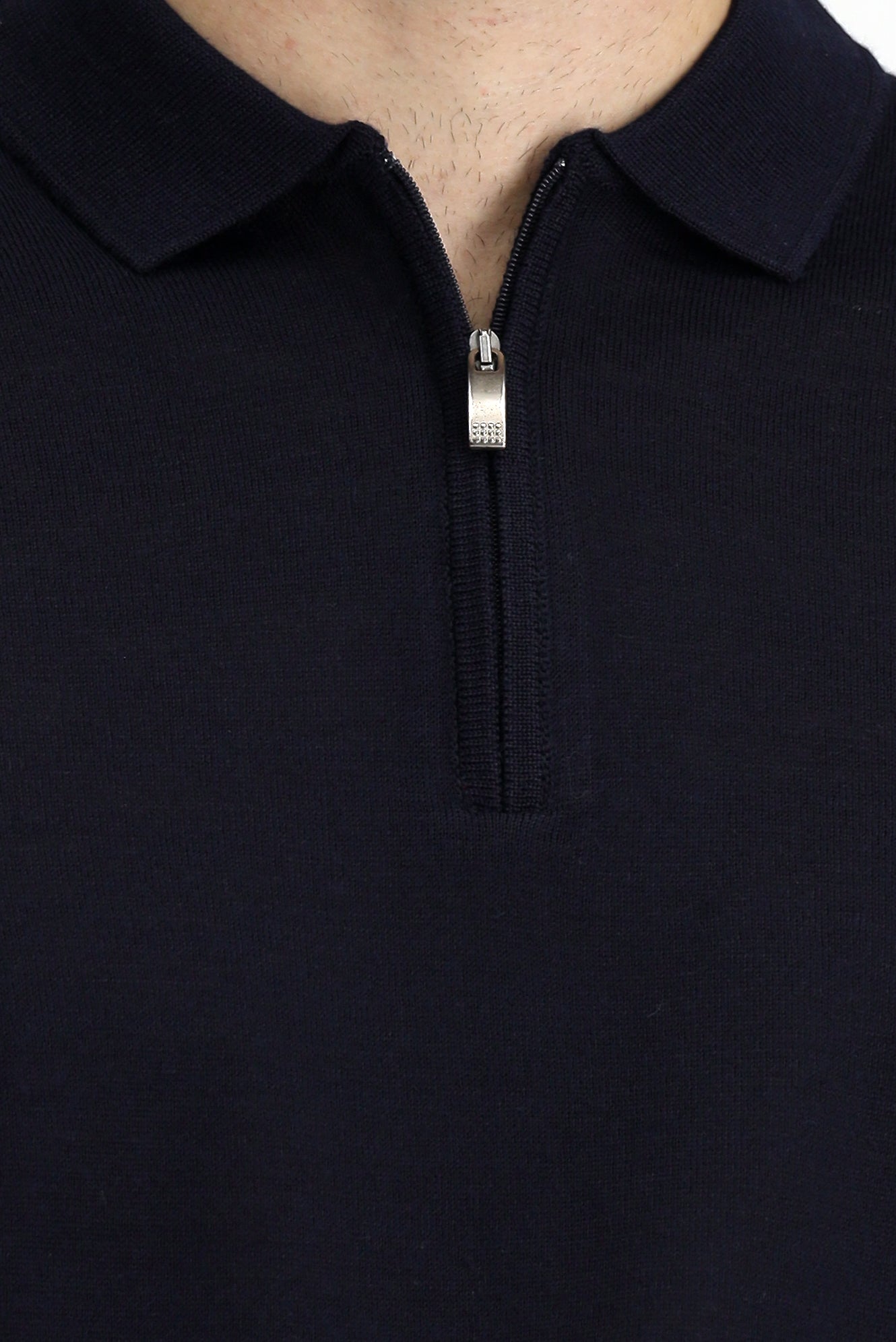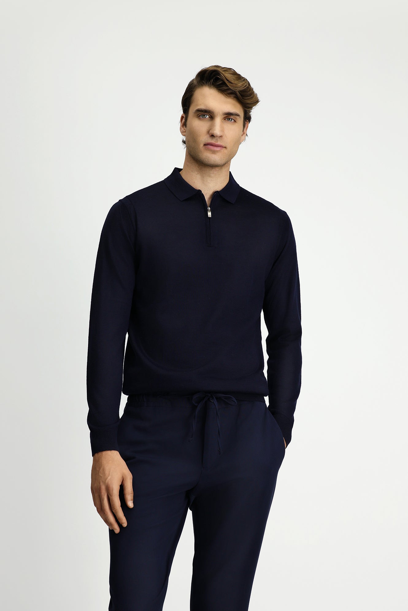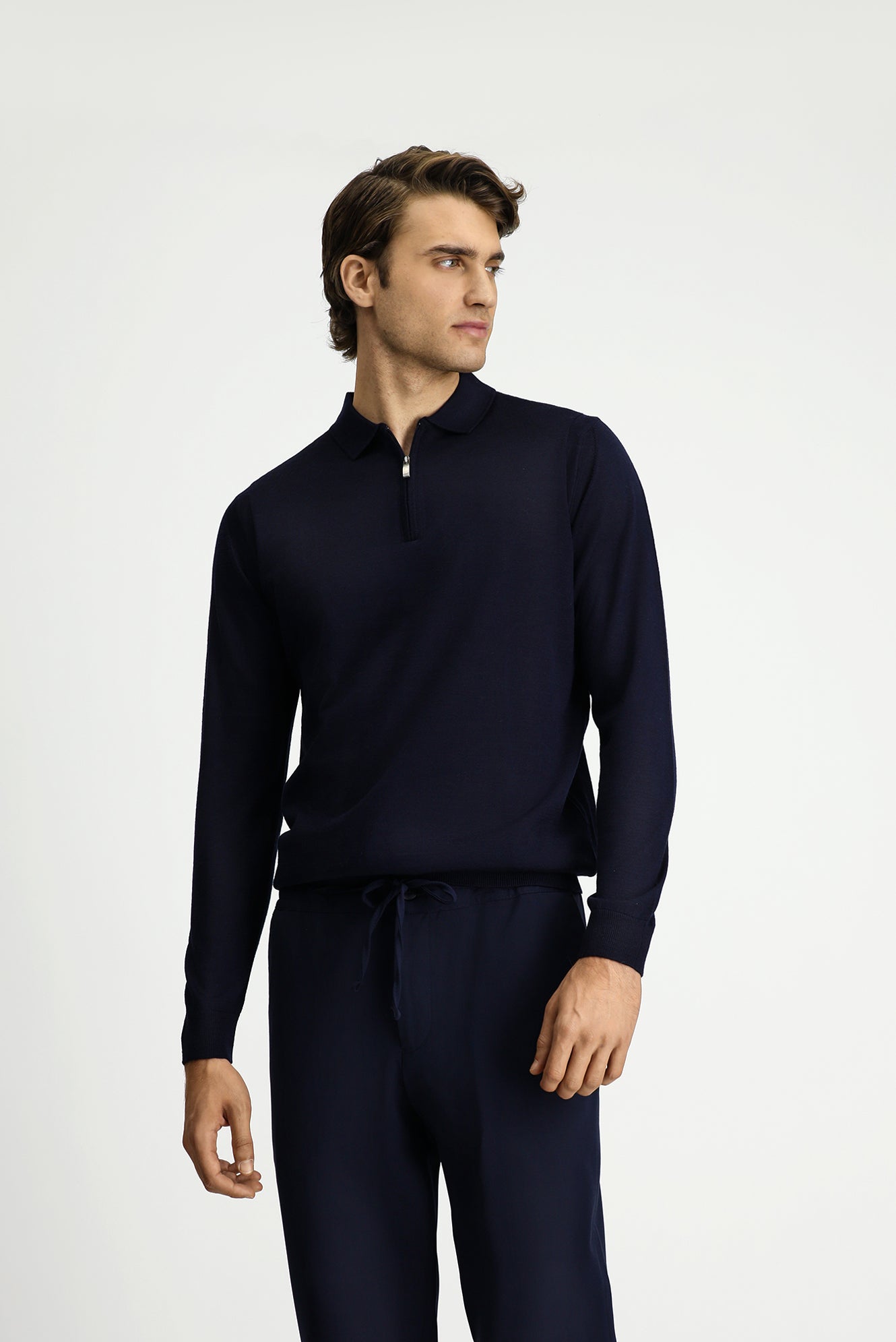 Koyu Lacivert Polo Yaka Regular Fit Fermuarlı Yünlü Triko Kazak