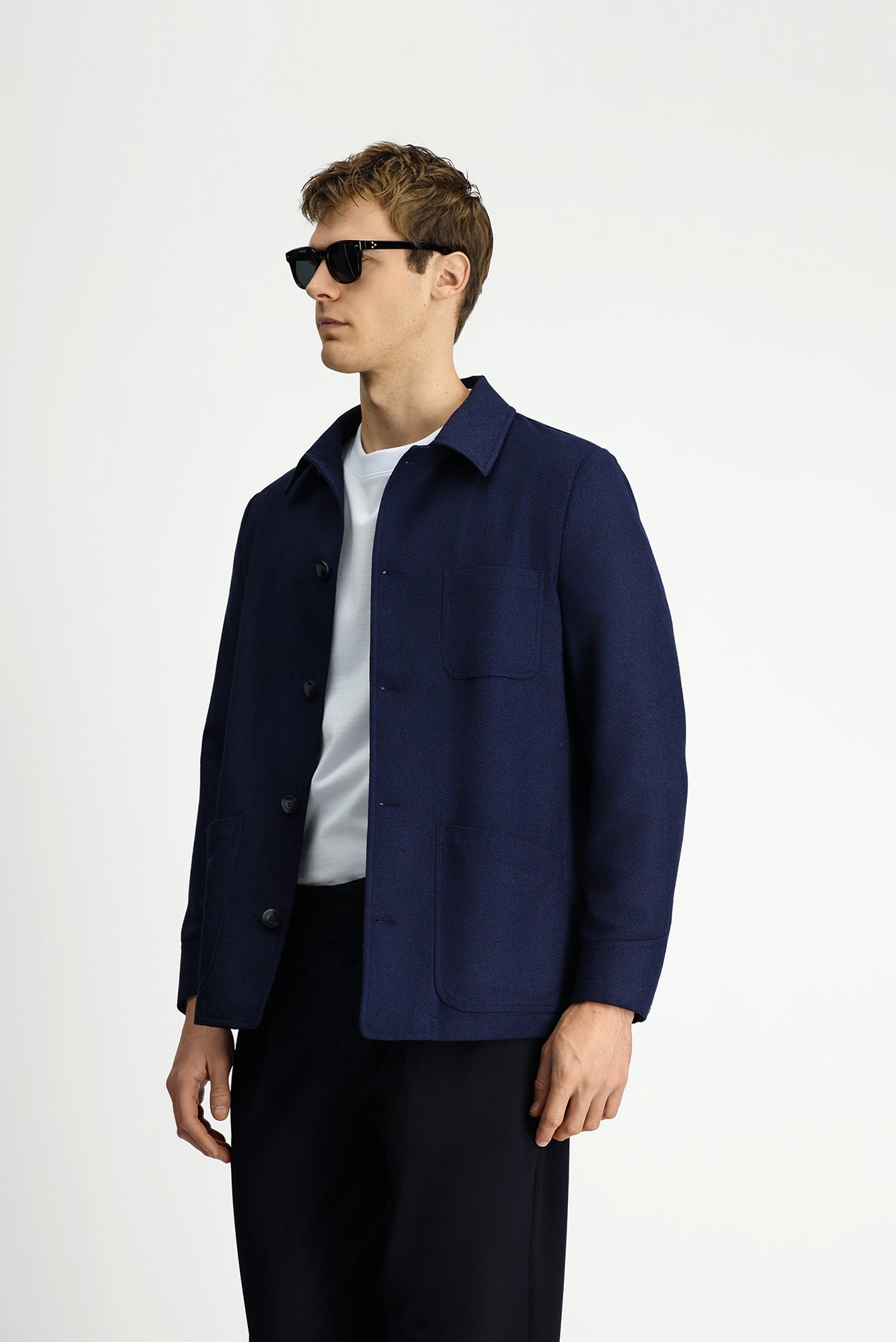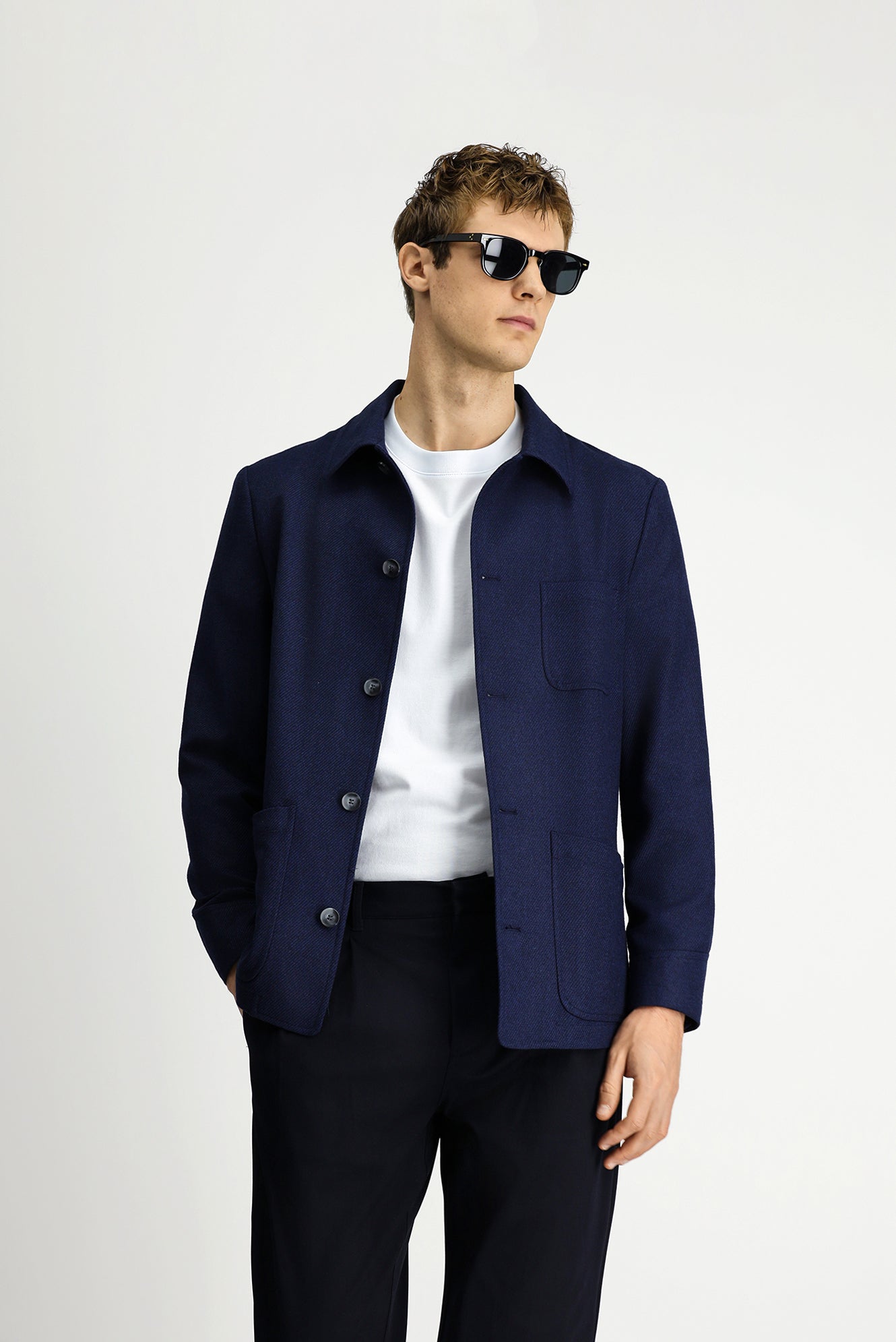 Koyu Lacivert Regular Fit Spor Yünlü Ceket / Mont