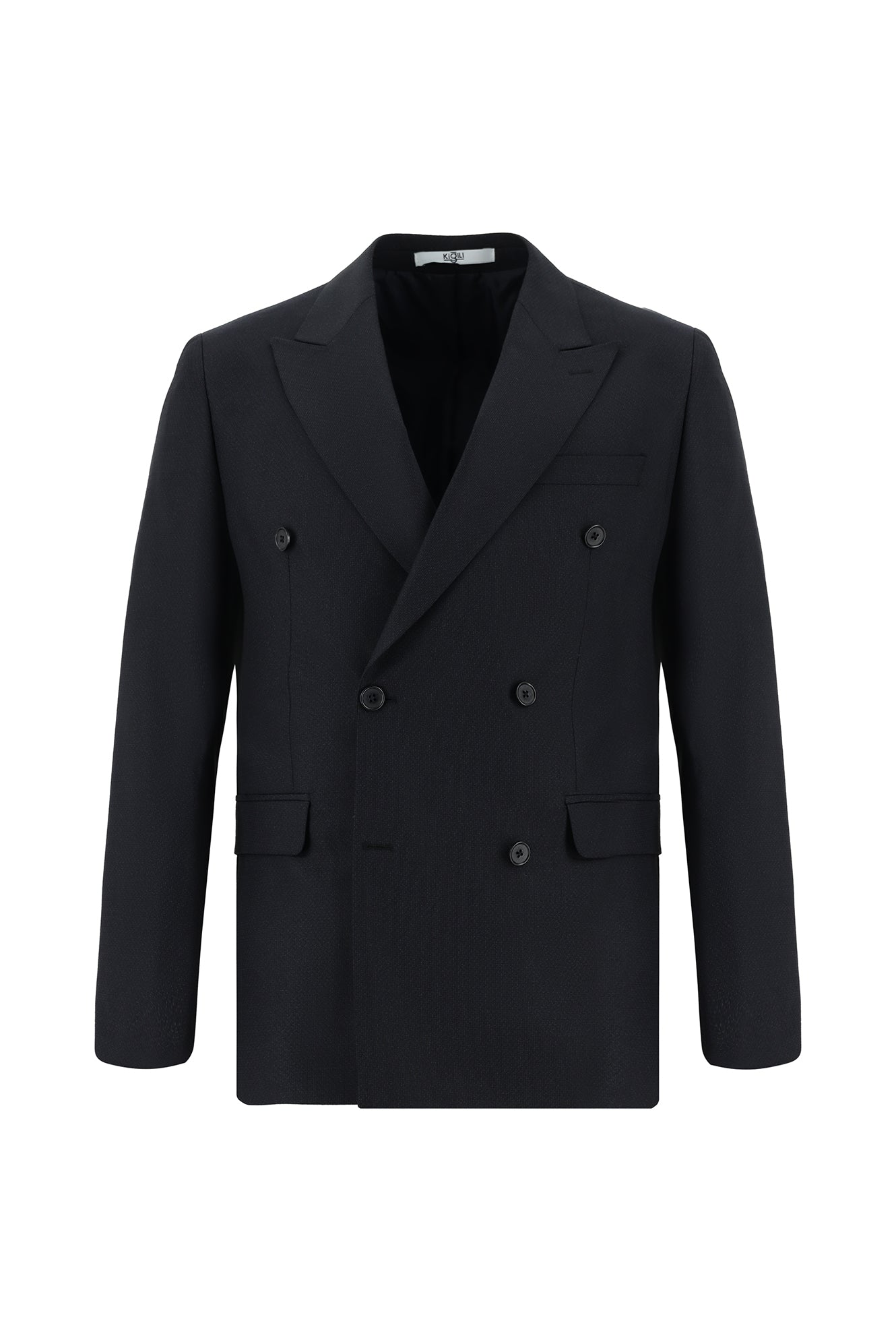 Koyu Lacivert Regular Fit Desenli Kruvaze Takım Elbise